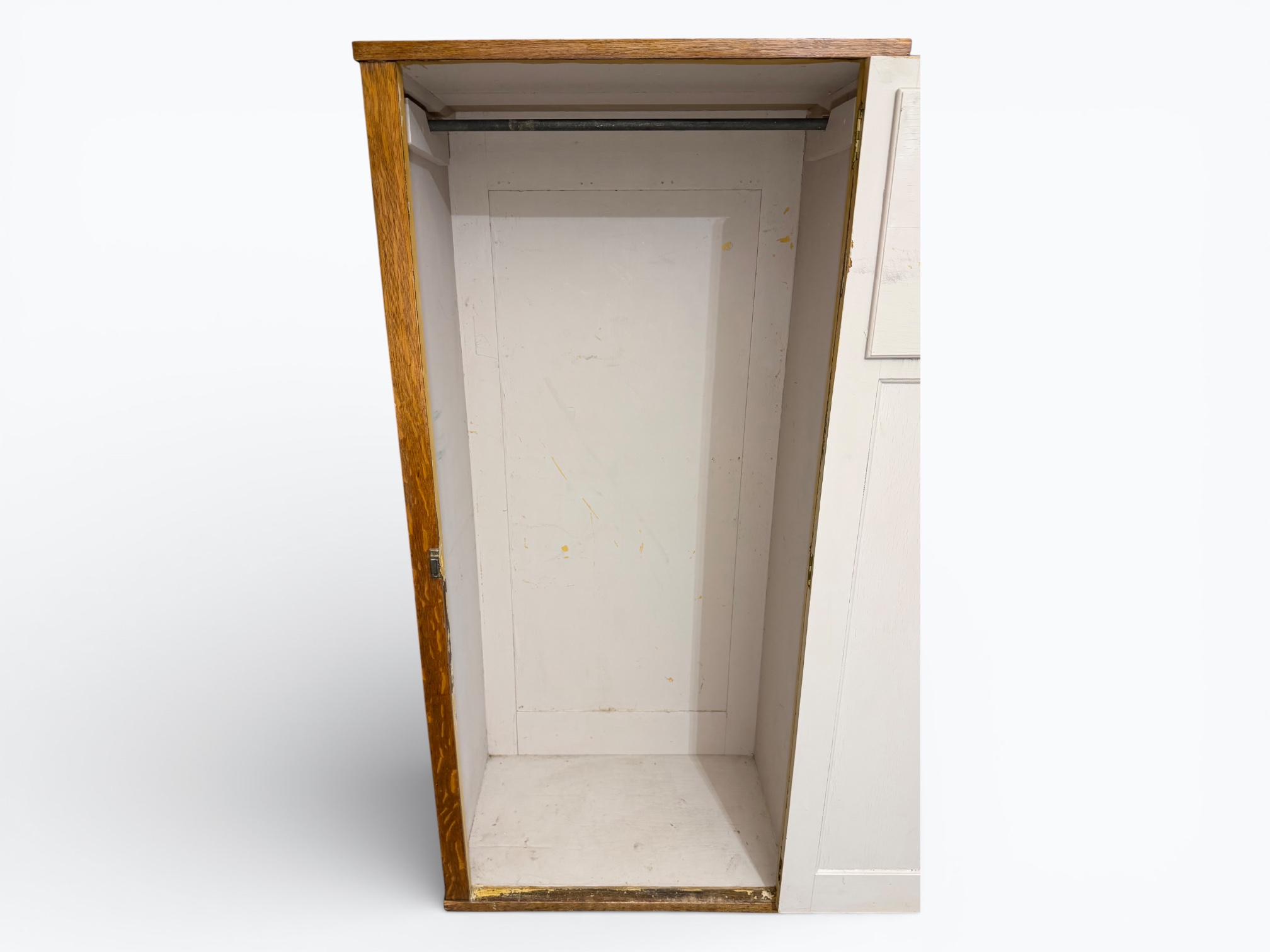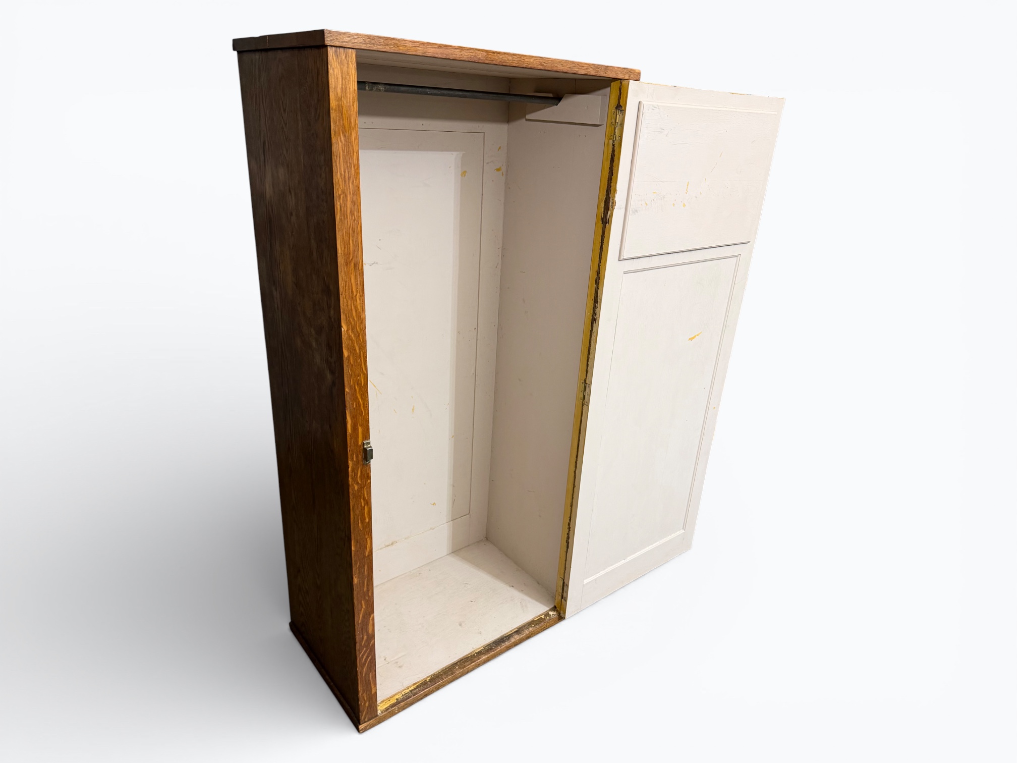• [Features]: Door has cabinet latch door lock; Top of door has a beveled mirror; Inside has a loose hanging rod; Solid and heavy construction