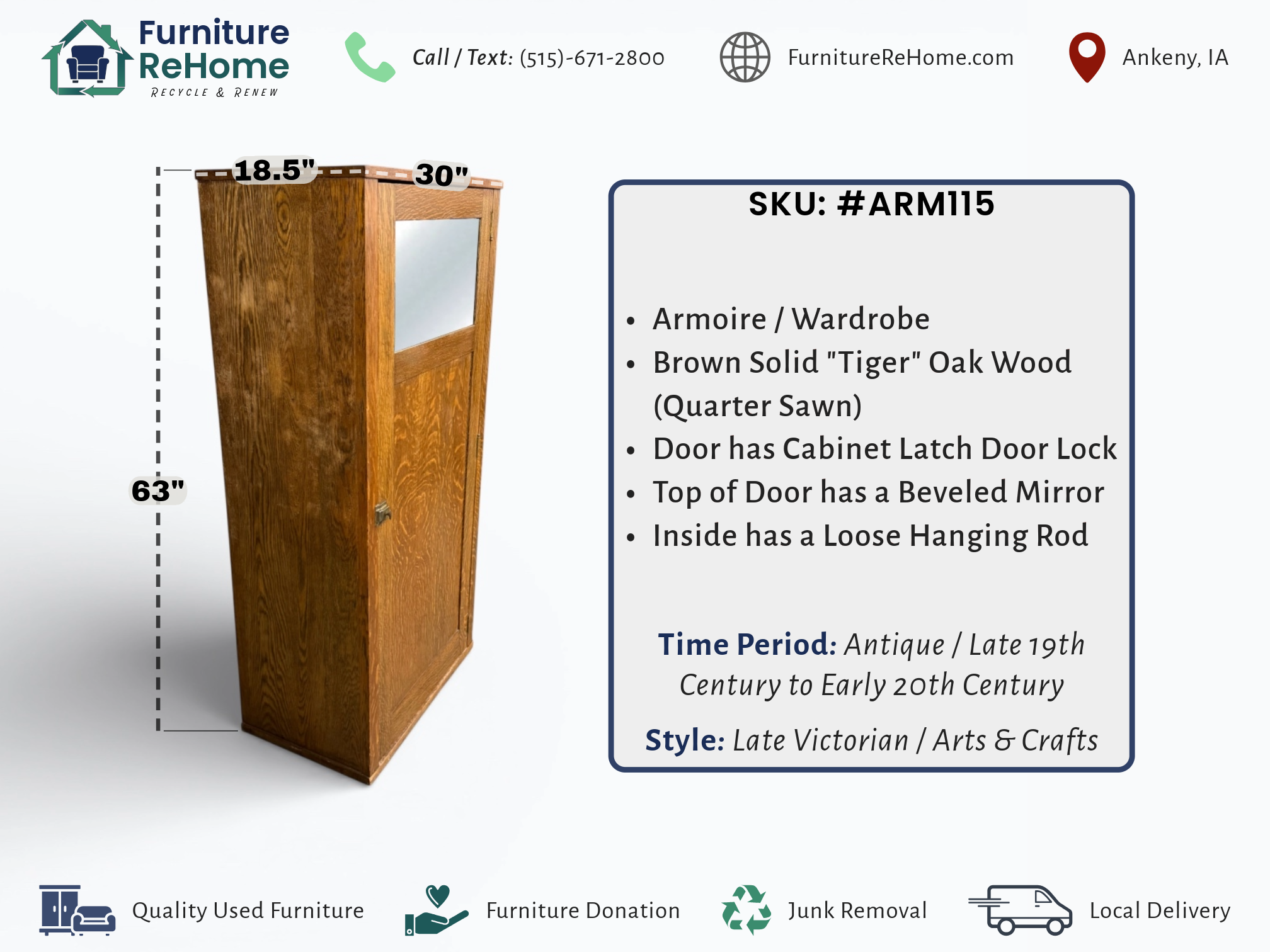 • [Dimensions]: 30” Length X 18.5” Depth X 63” Height