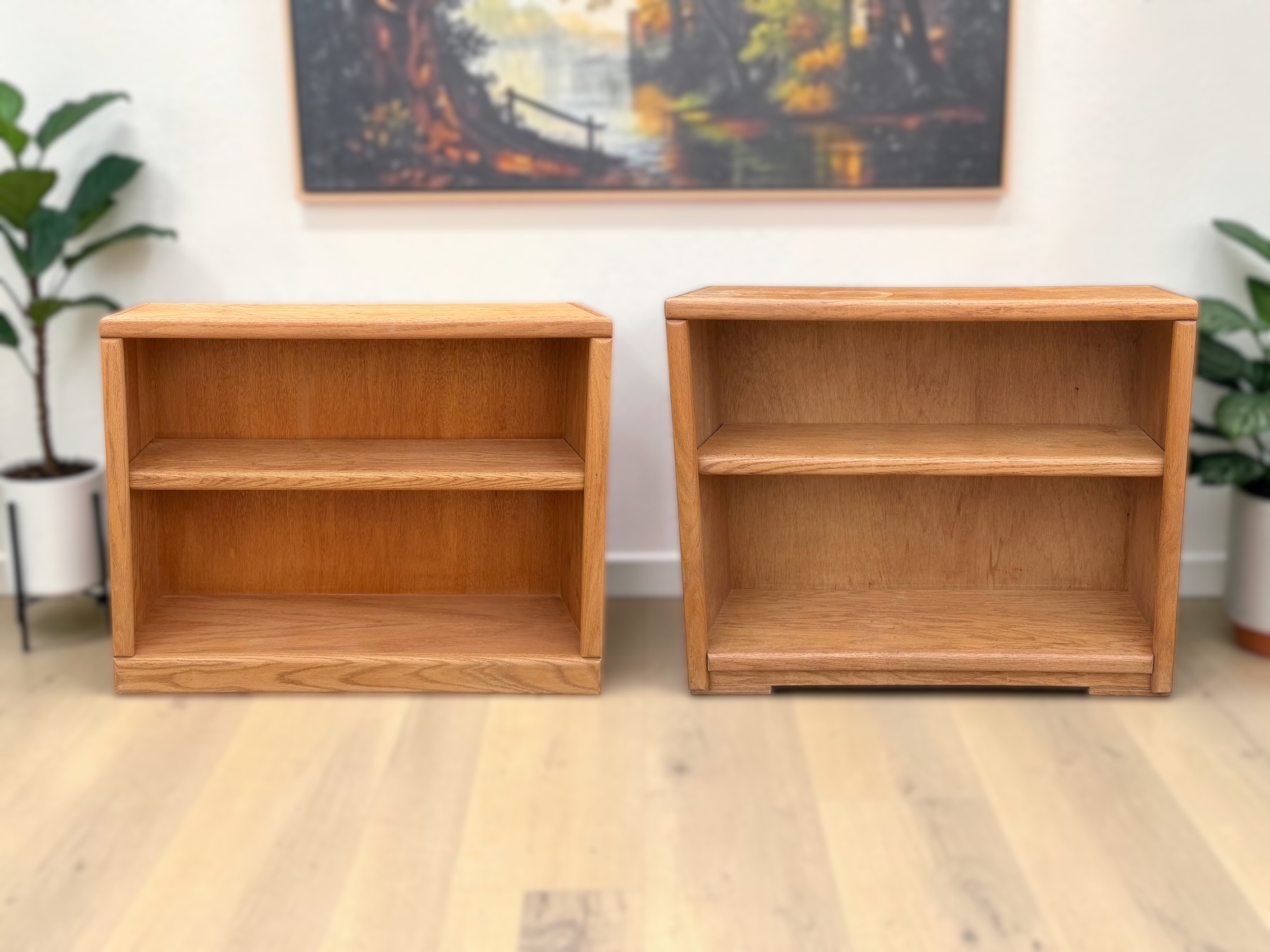 Vintage Thornwood 2 Brown Oak Bookcases Set