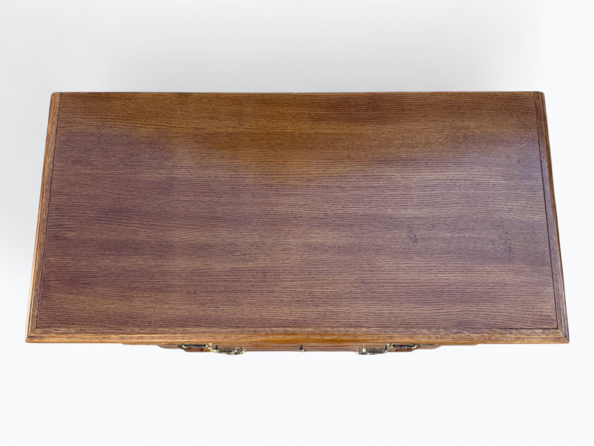 • [Type of Material]: Oak Wood Veneer, Solid Wood, Particle Board and Metal (drawer pulls); Glass Mirror