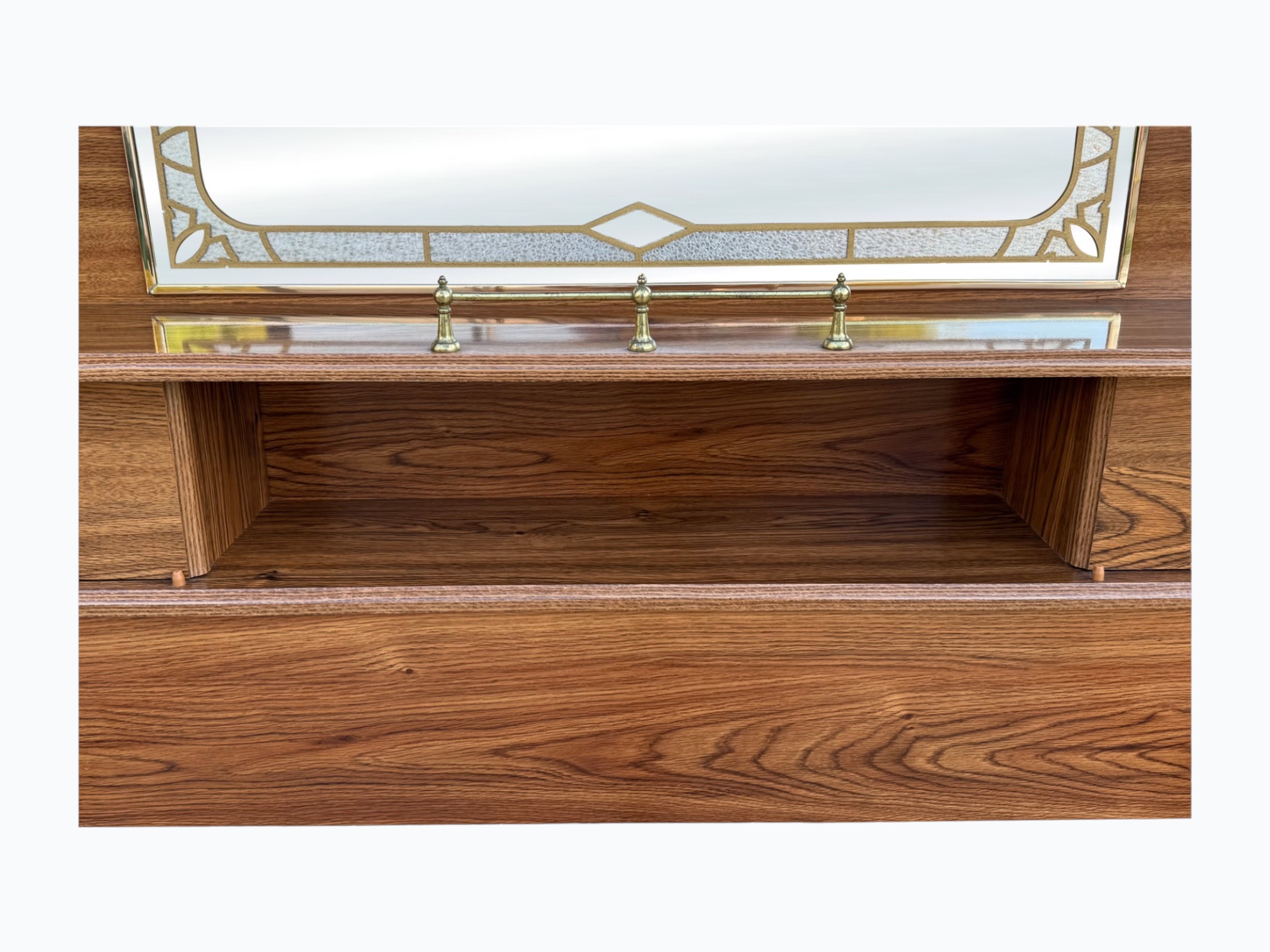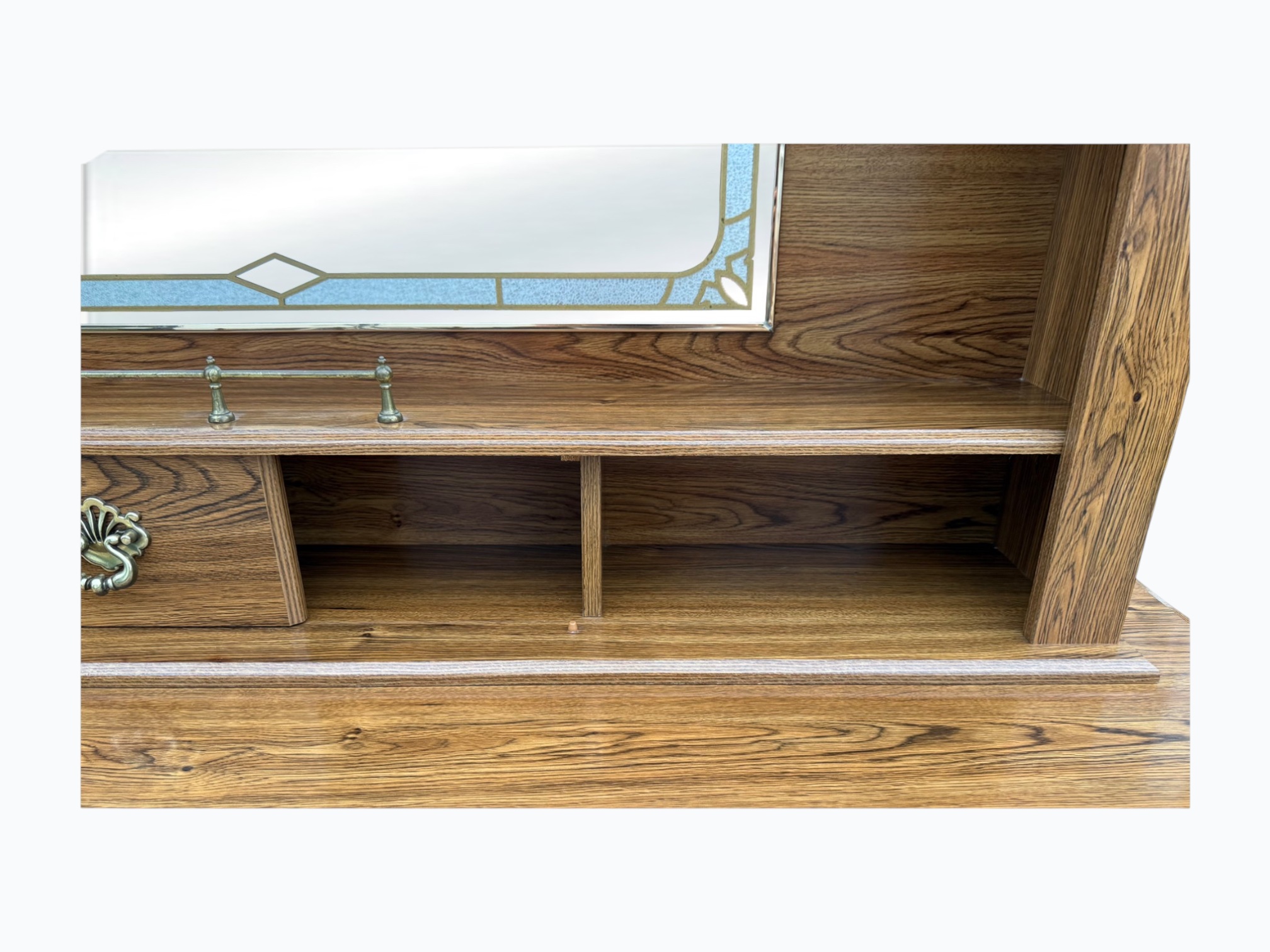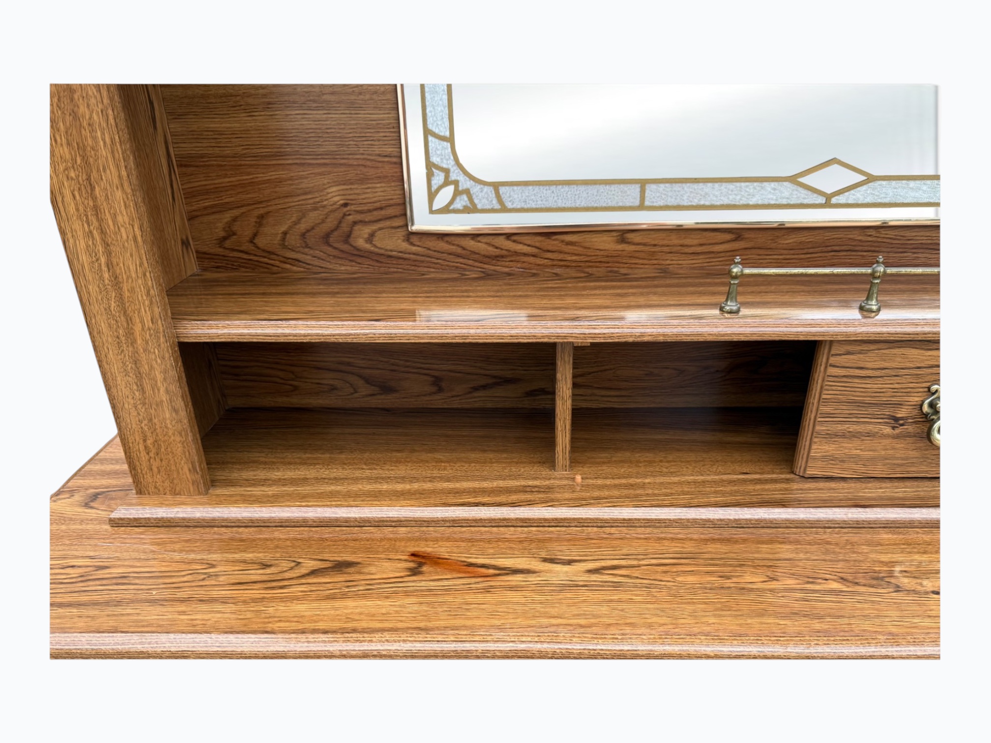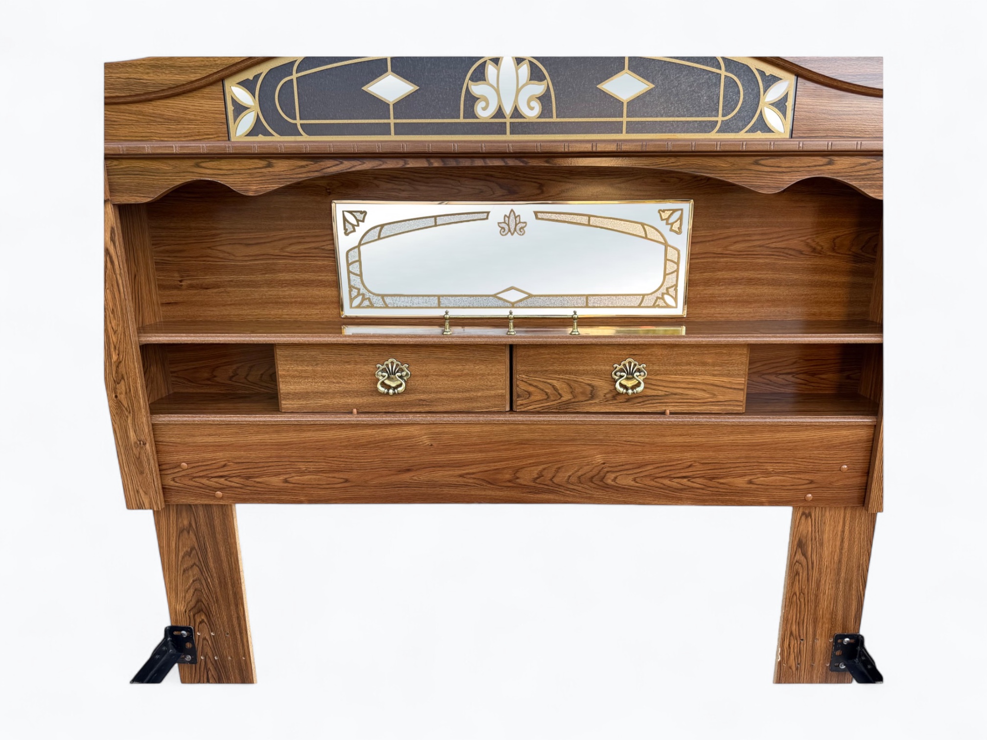• [Color]: Brown / “Country Oak”; Brass (drawer pulls); Gold (decorative mirror inlay)