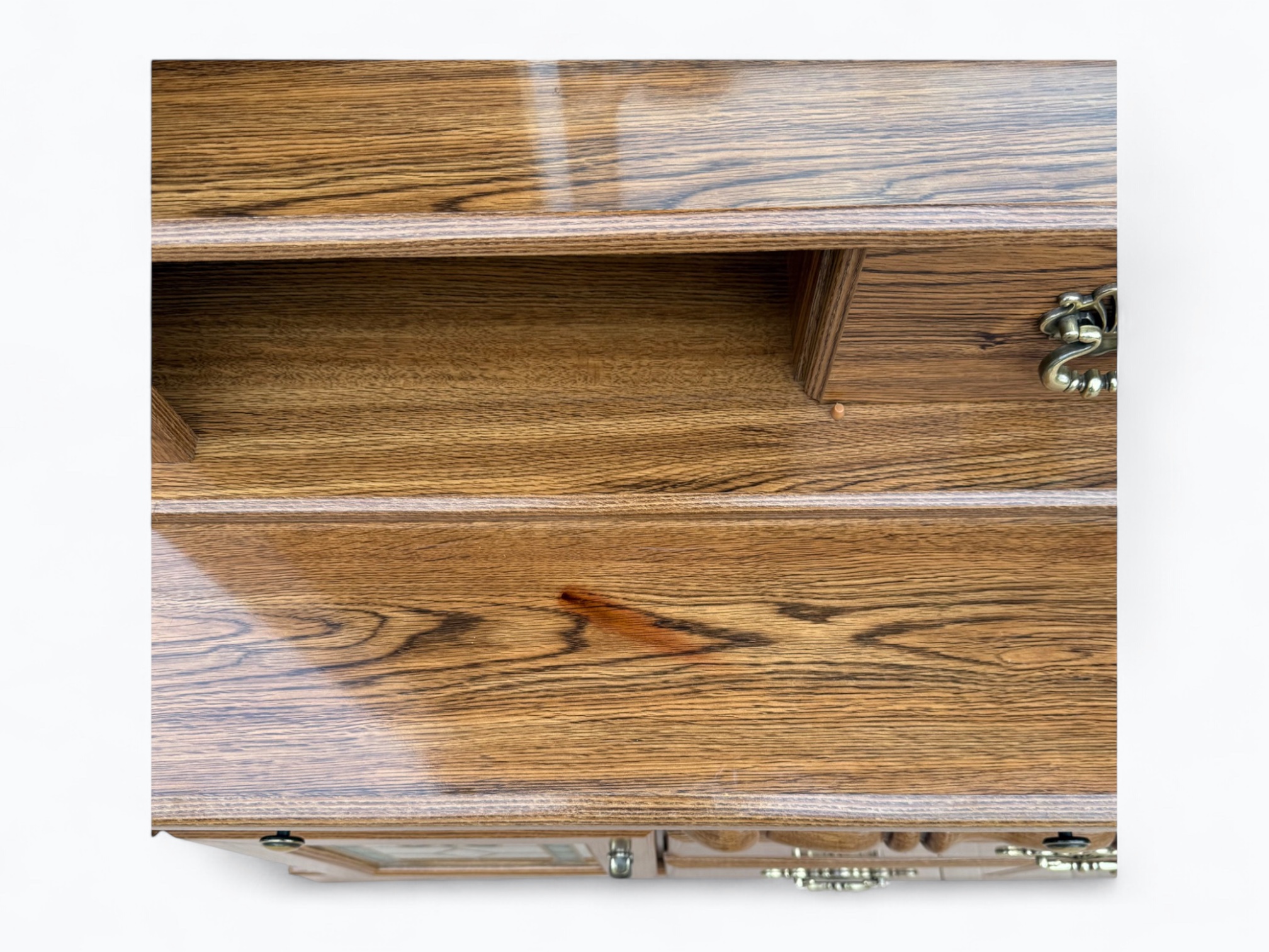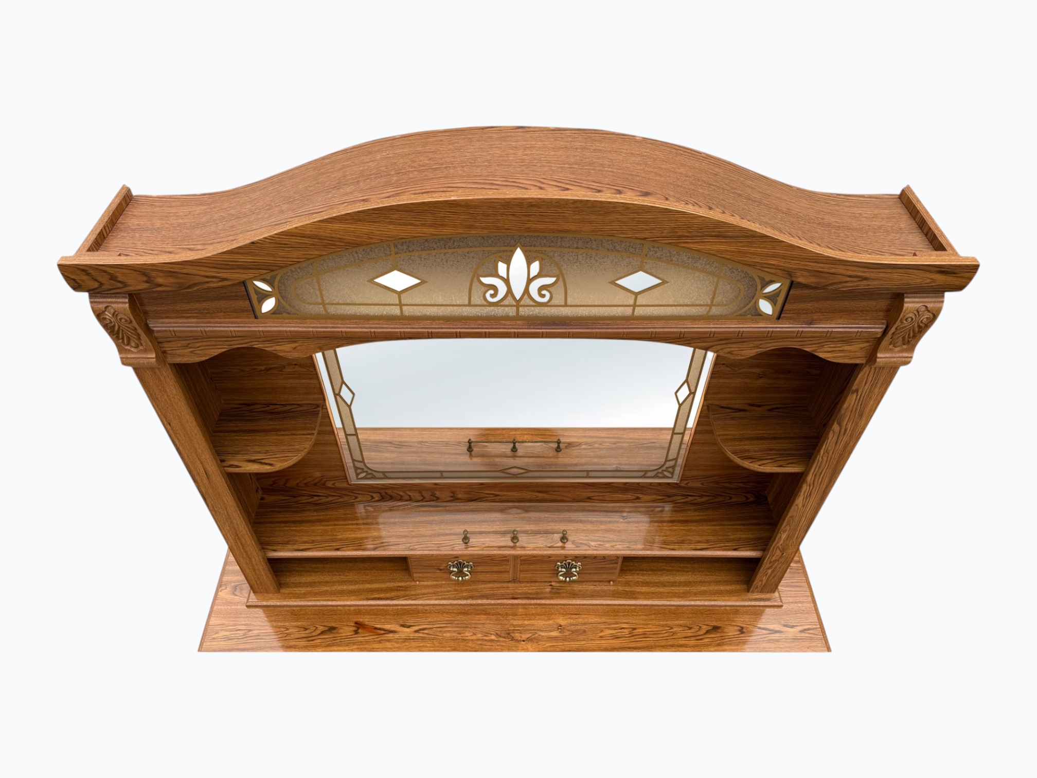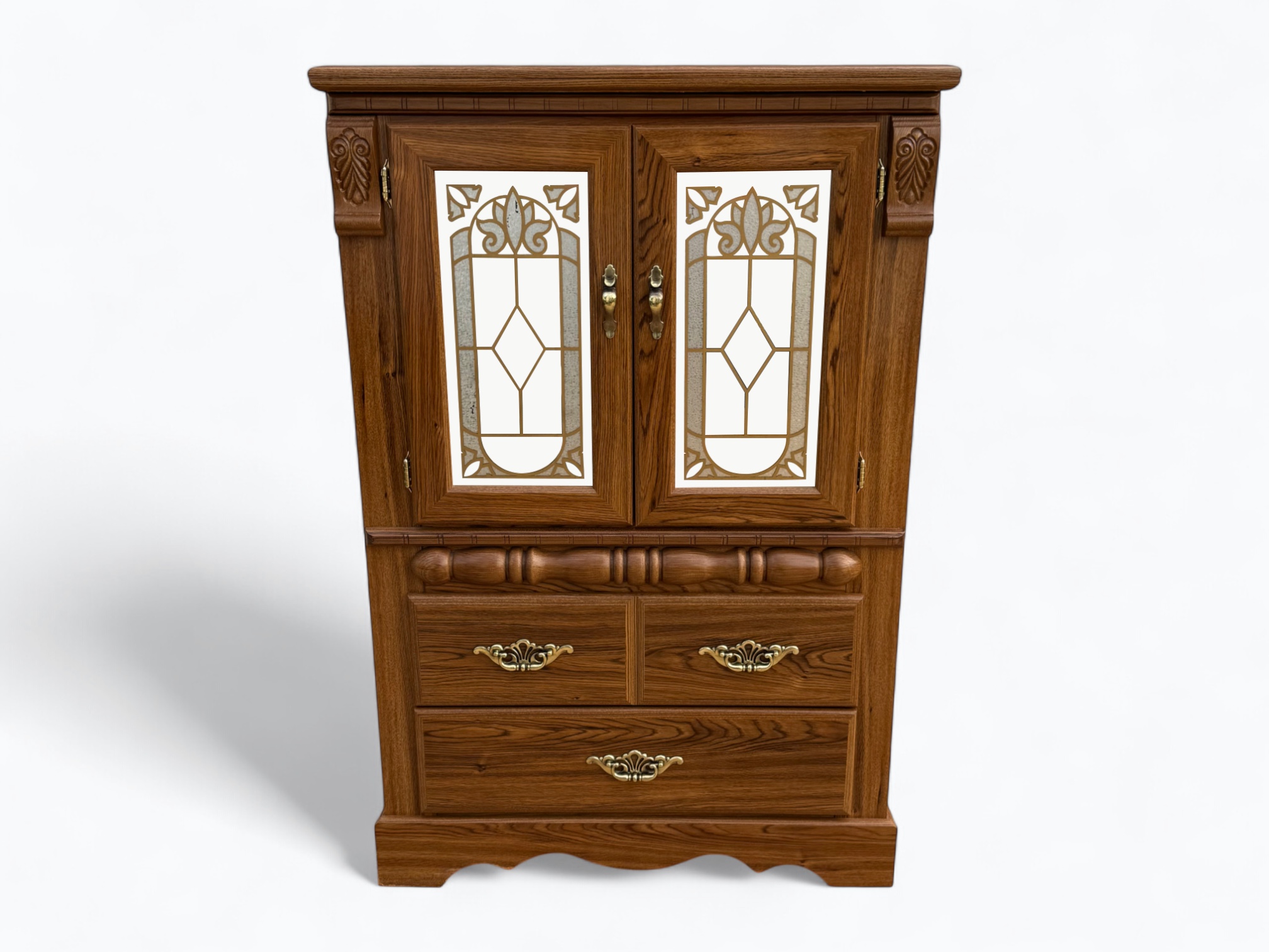 • [Color]: Brown / “Country Oak”; Brass (drawer pulls); Gold (decorative mirror inlay)
