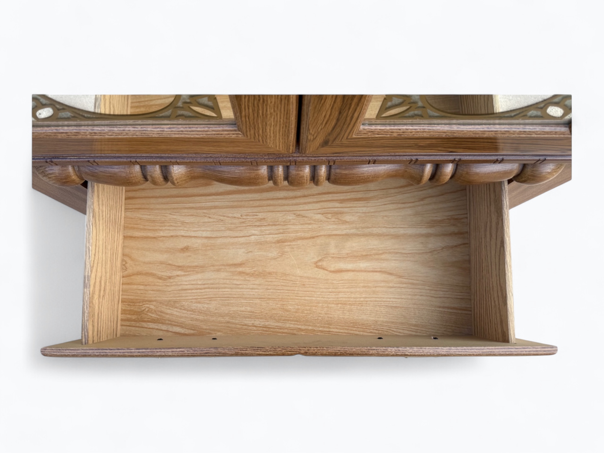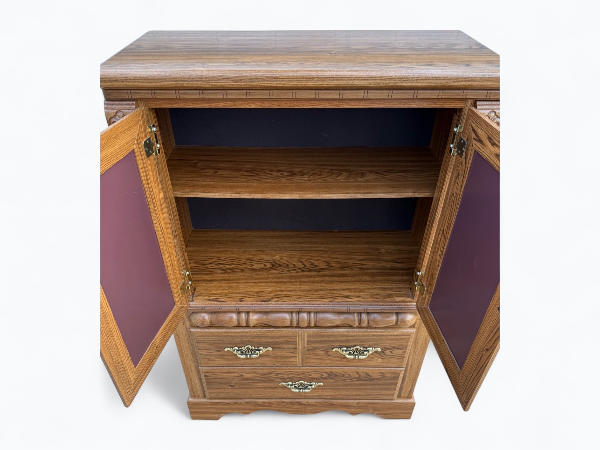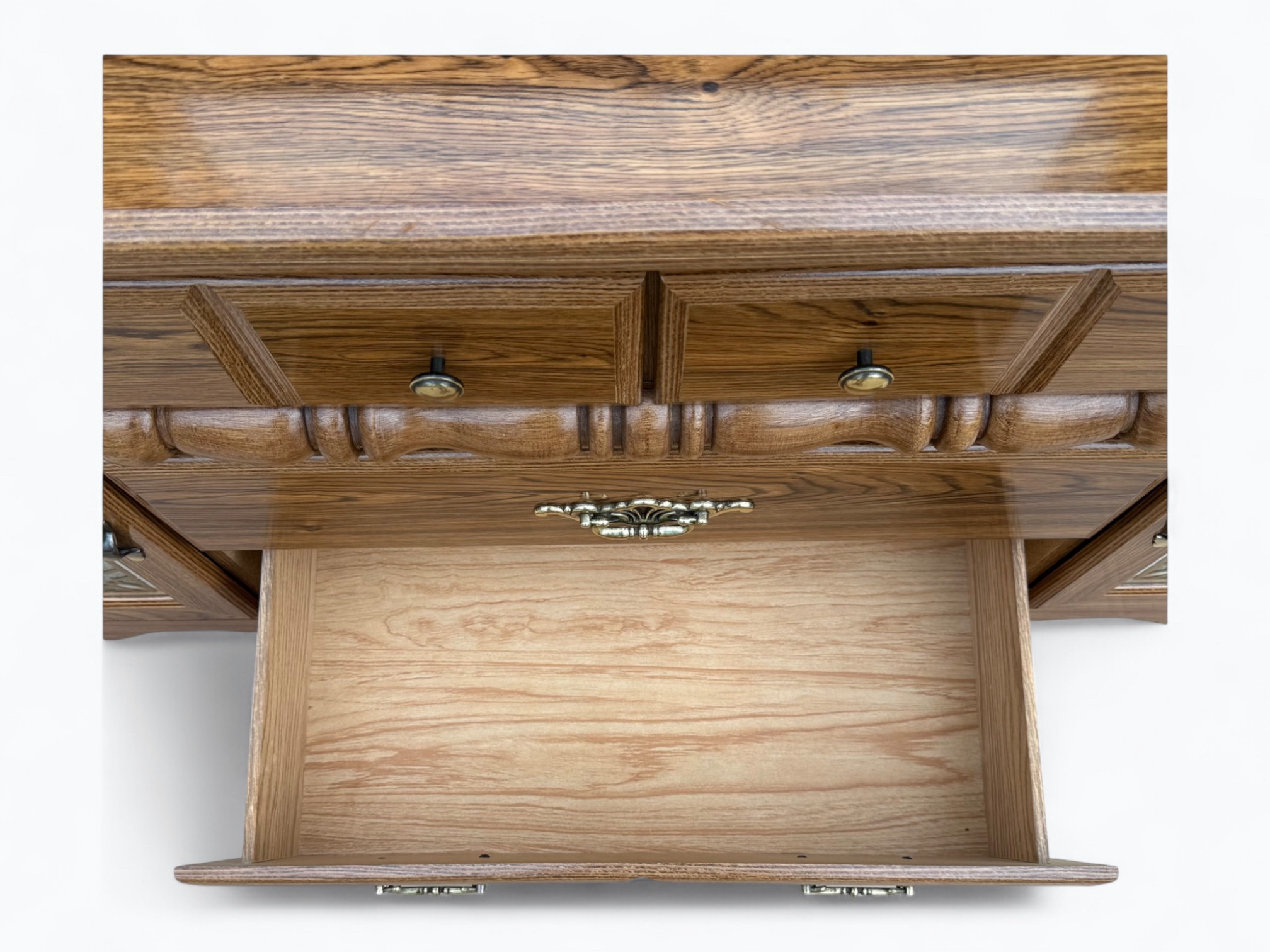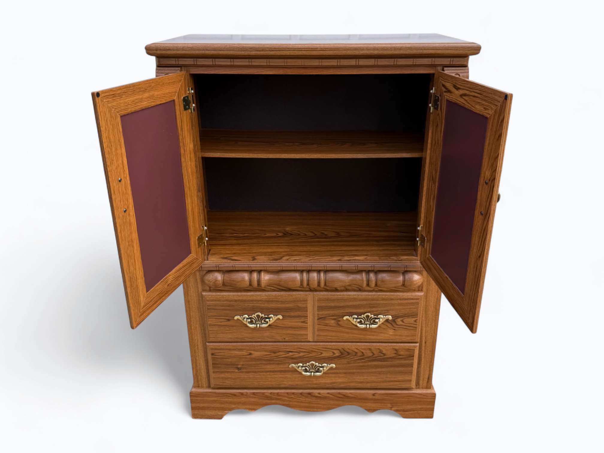 • [Color]: Brown / “Country Oak”; Brass (drawer pulls); Gold (decorative mirror inlay)