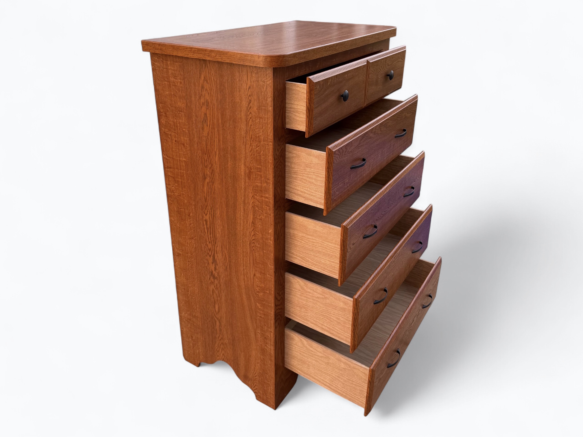– Tall Dresser: 1 medium drawer and 4 large drawers