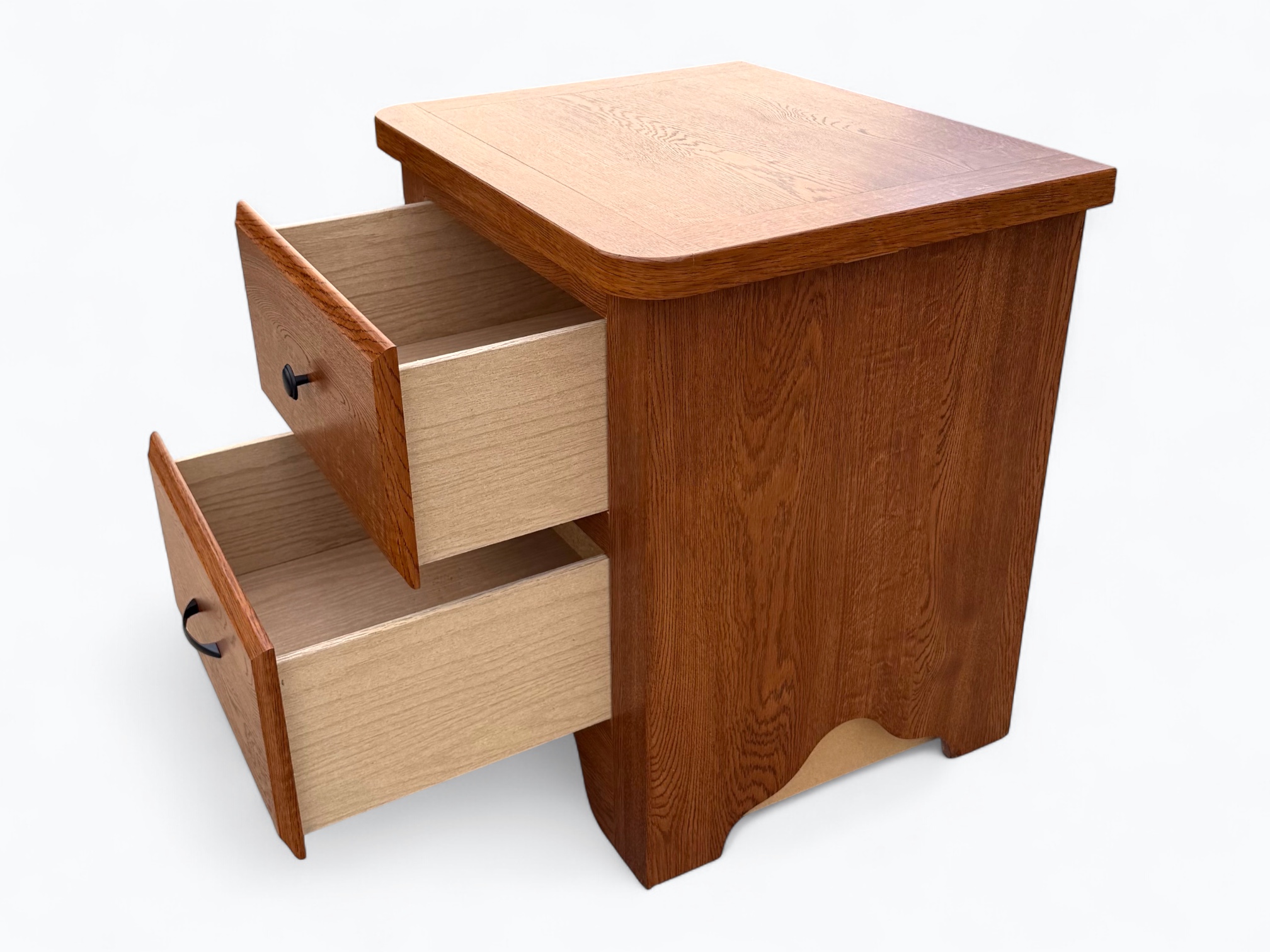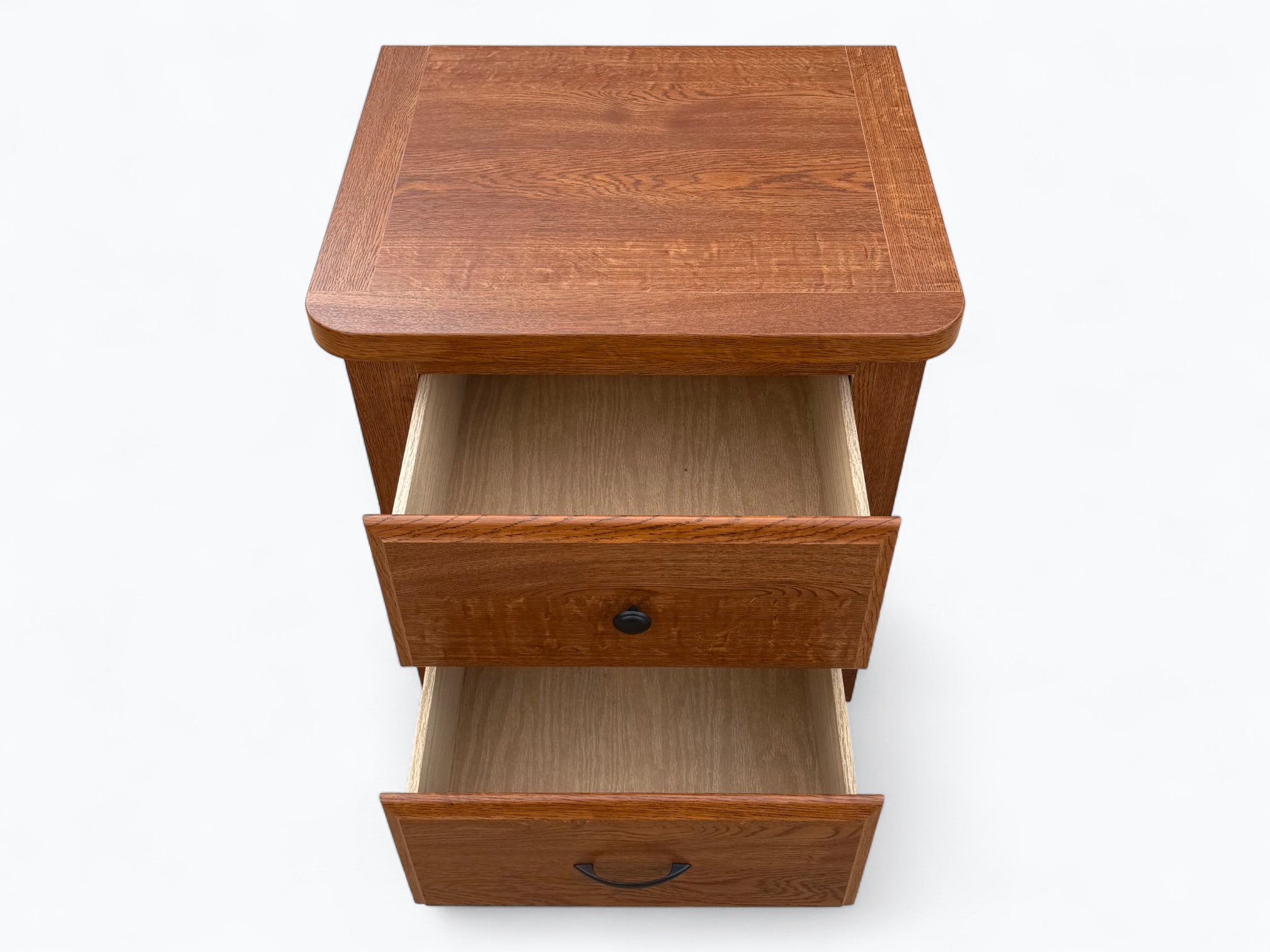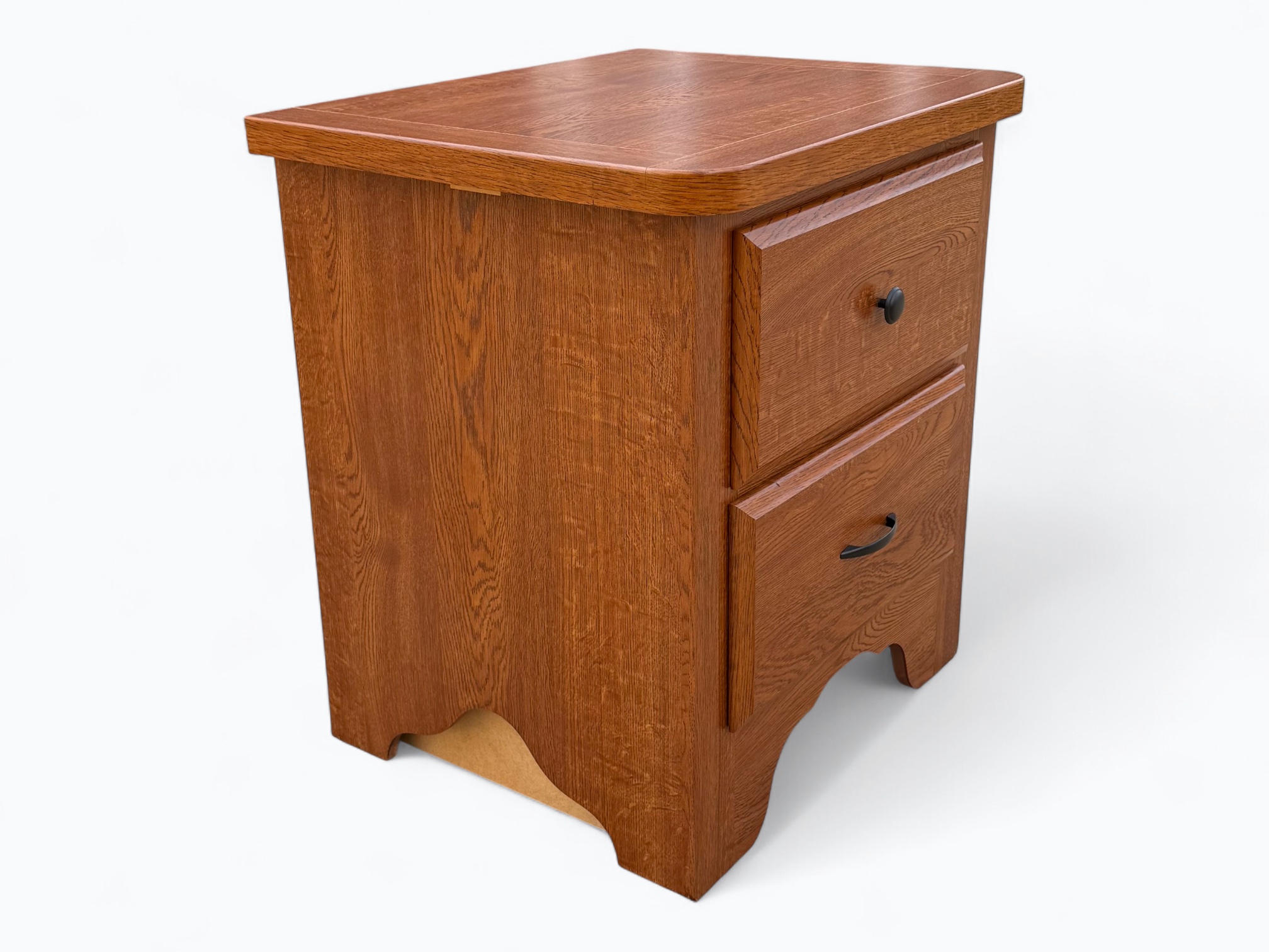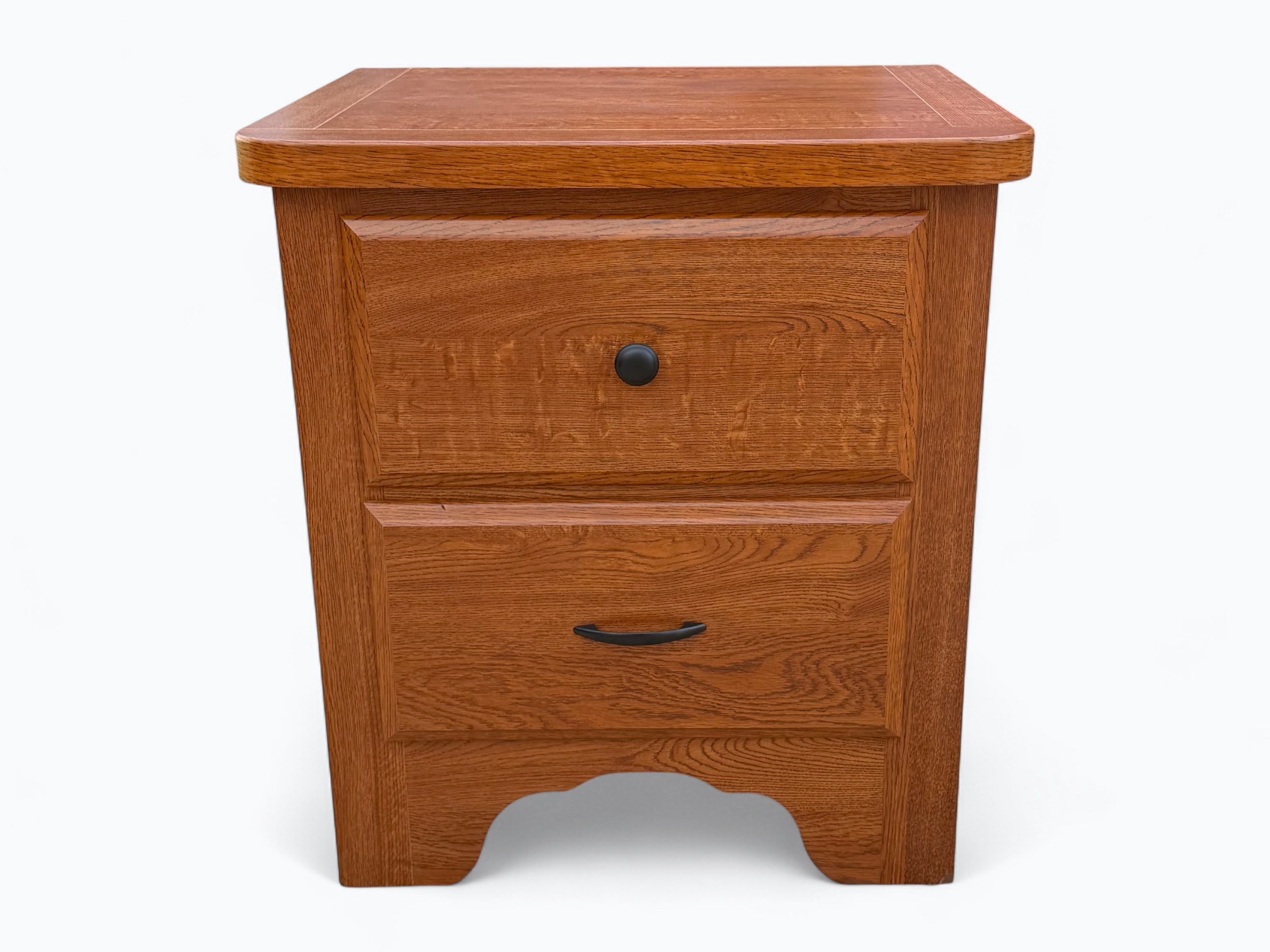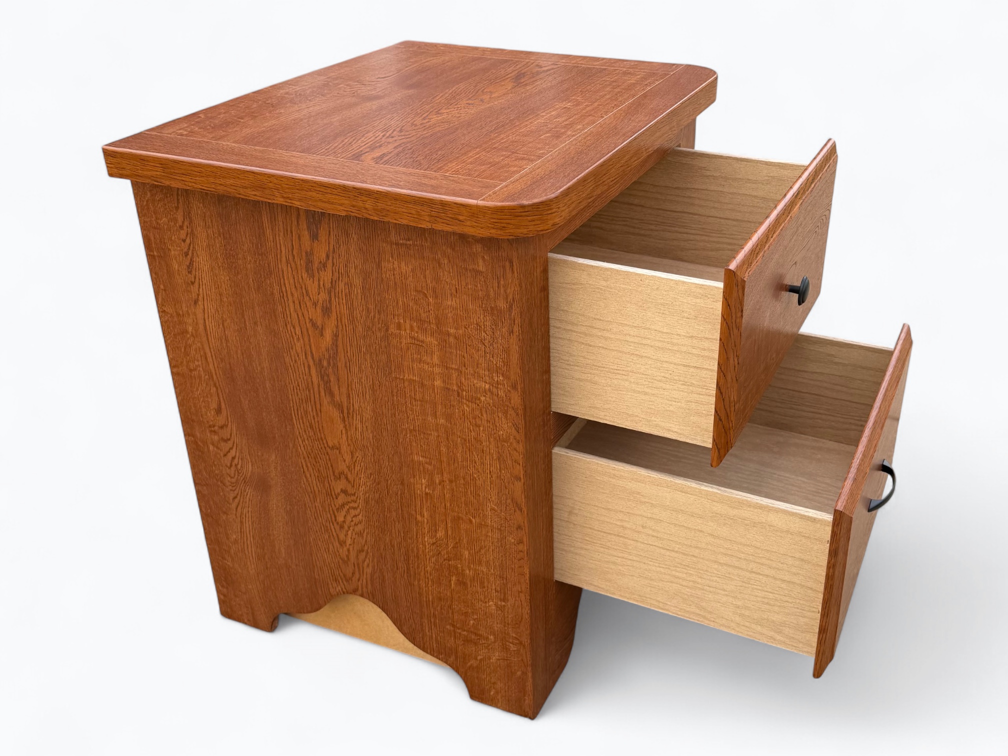 • [Features]: Hardwood center guided drawers with plastic drawer stops; Tops have beveled front edges that overhang; Scalloped bracket feet