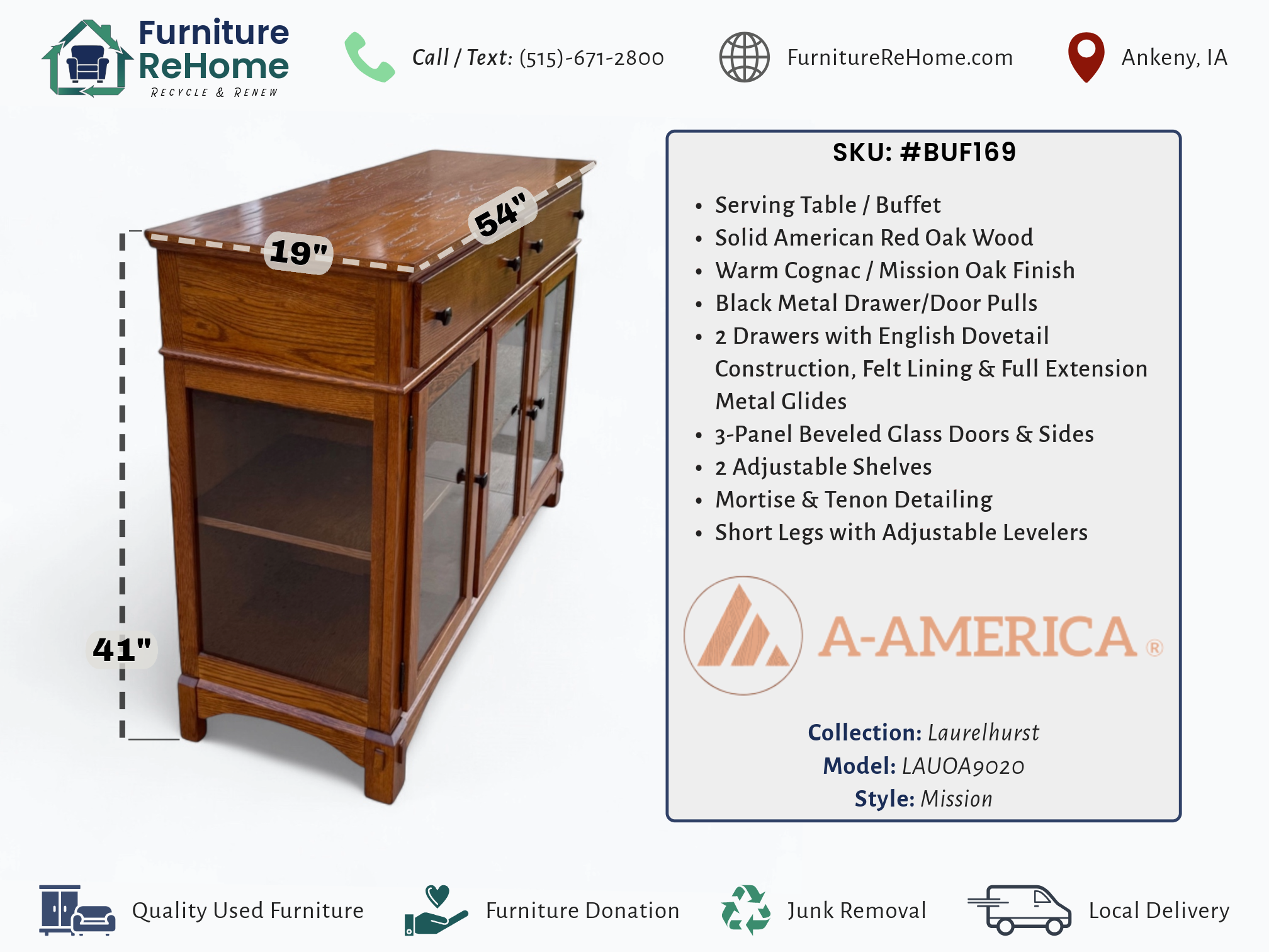 A-America Laurelhurst Brown Mission Oak Serving Table / Buffet
