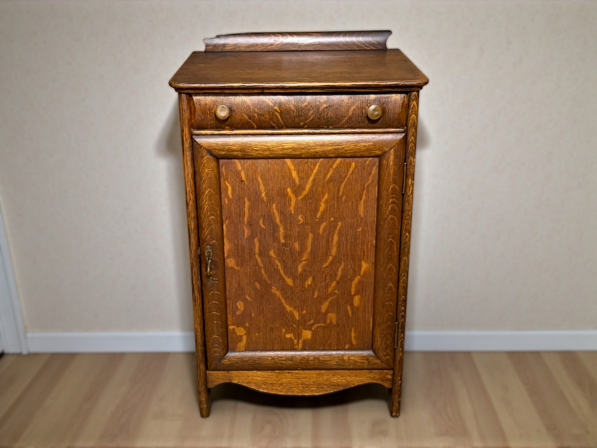 Antique Brown Tiger Oak Sheet Music Cabinet