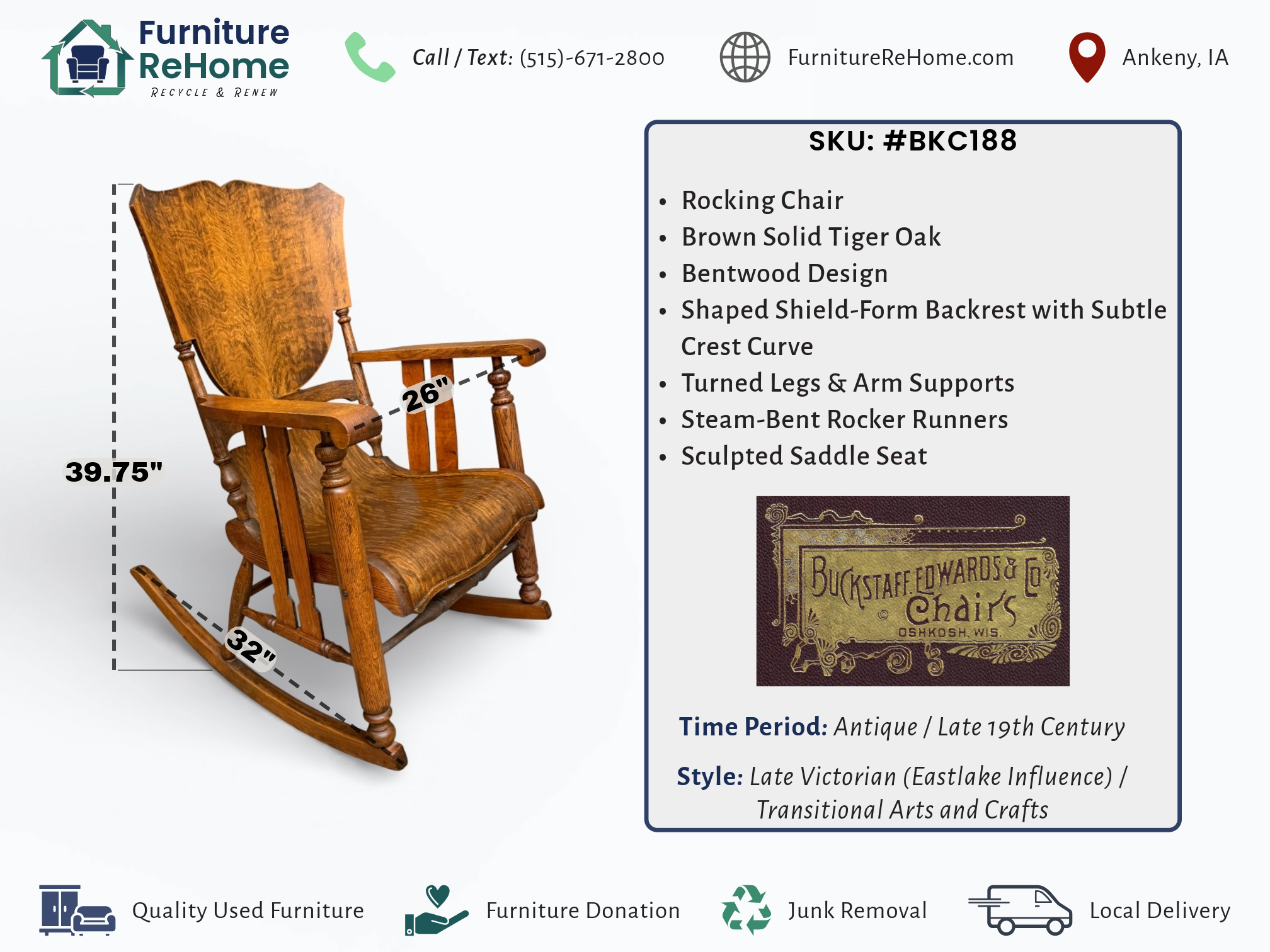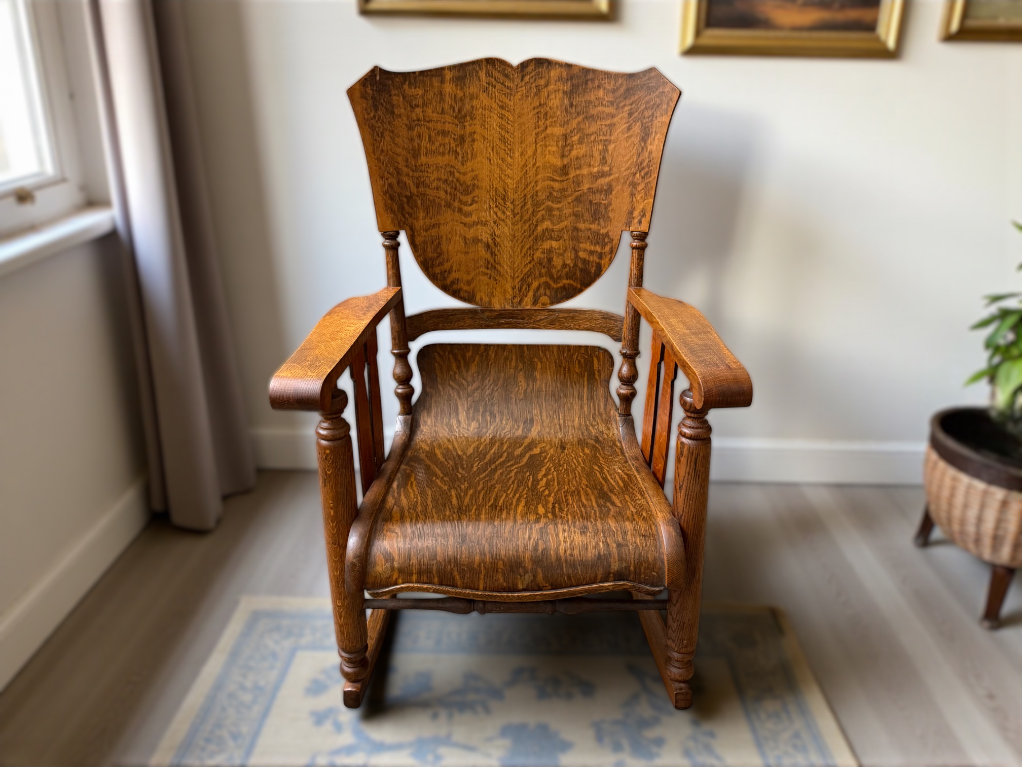Antique Buckstaff Edwards Late 19th Century Tiger Oak Rocking Chair