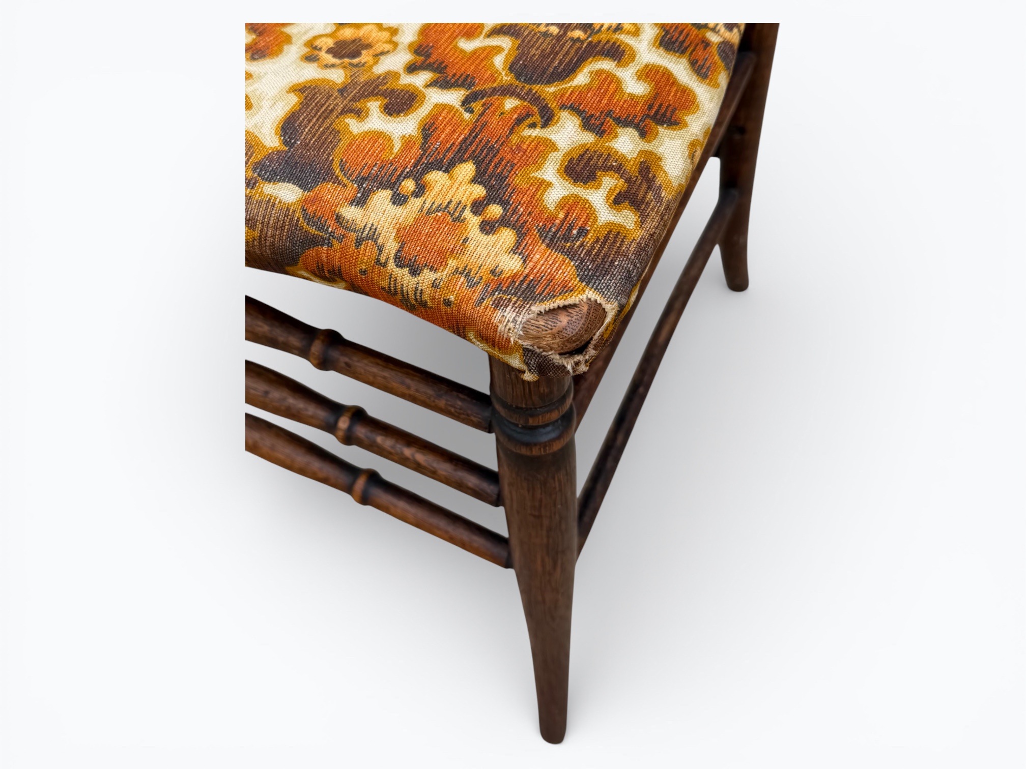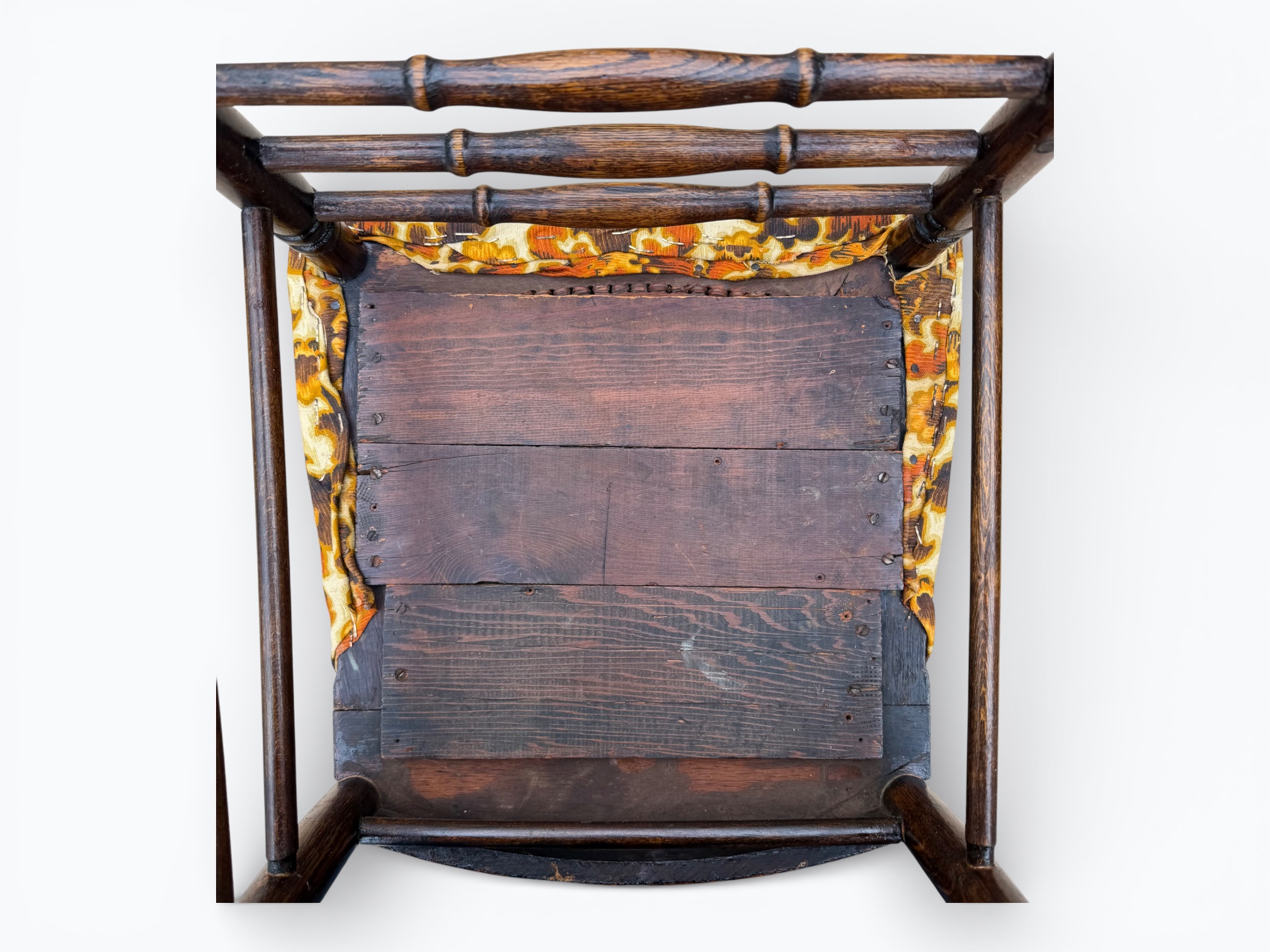 • [Condition]: 7.5-8/10; Good condition; Stable and sturdy; Several marks and scratches; Seat upholstered likely around the 1960s-1970s; Worn upholstery spot on one front corner; Thoroughly cleaned