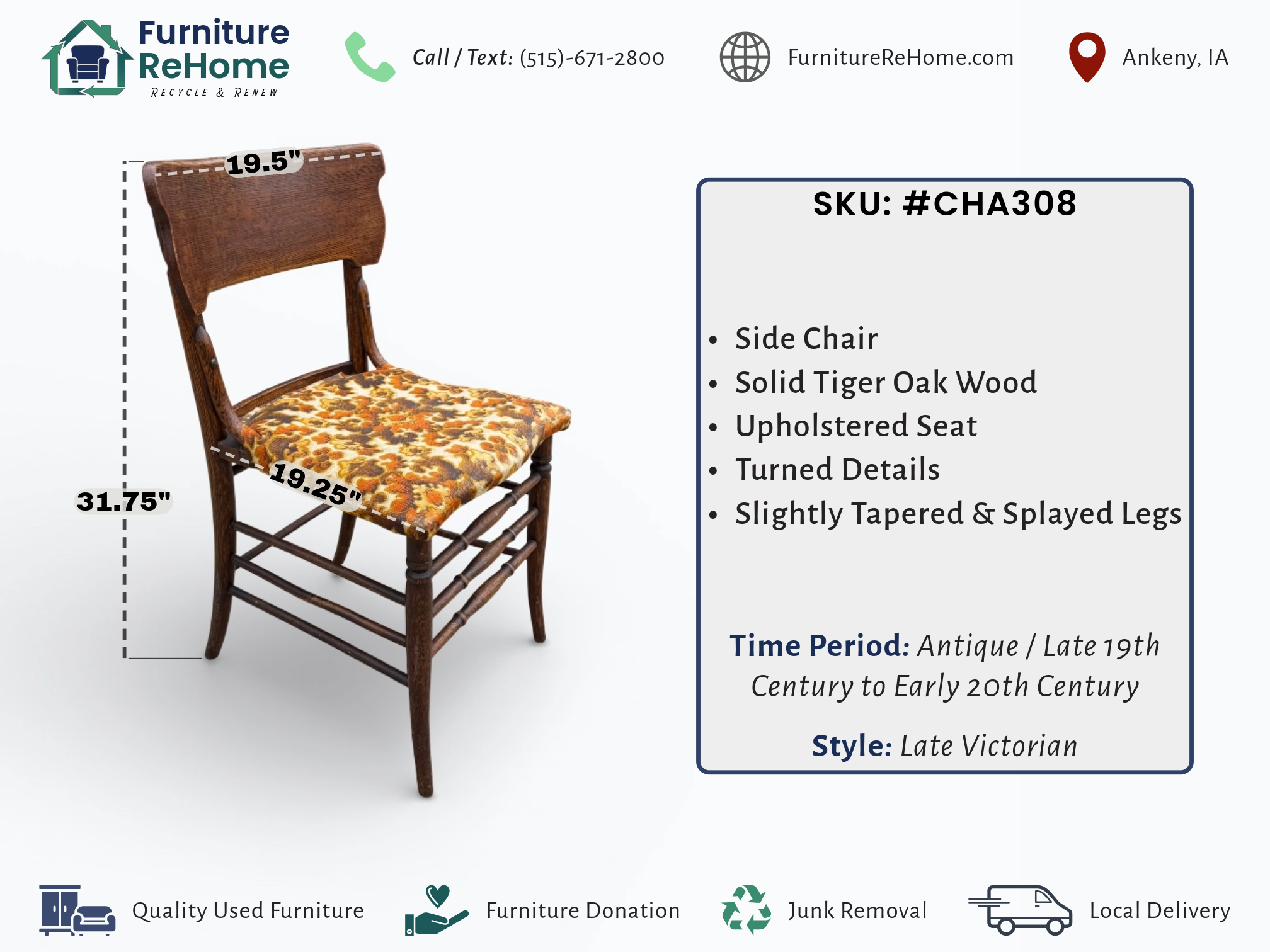 Antique Late Victorian Tiger Oak Compact Side Chair