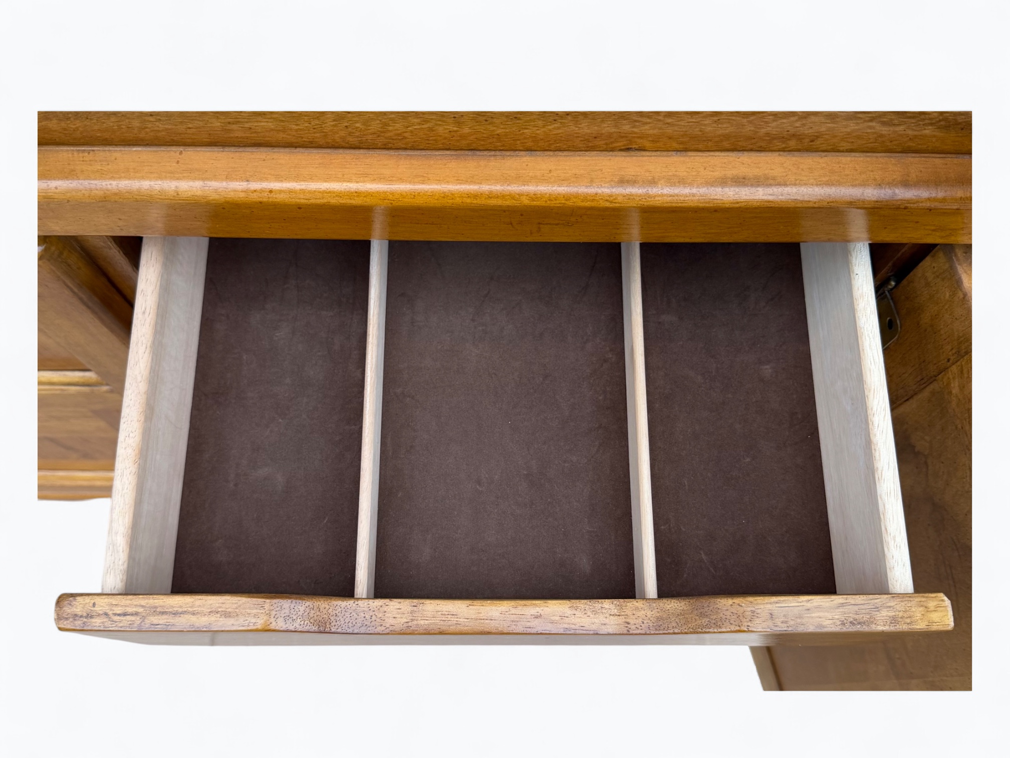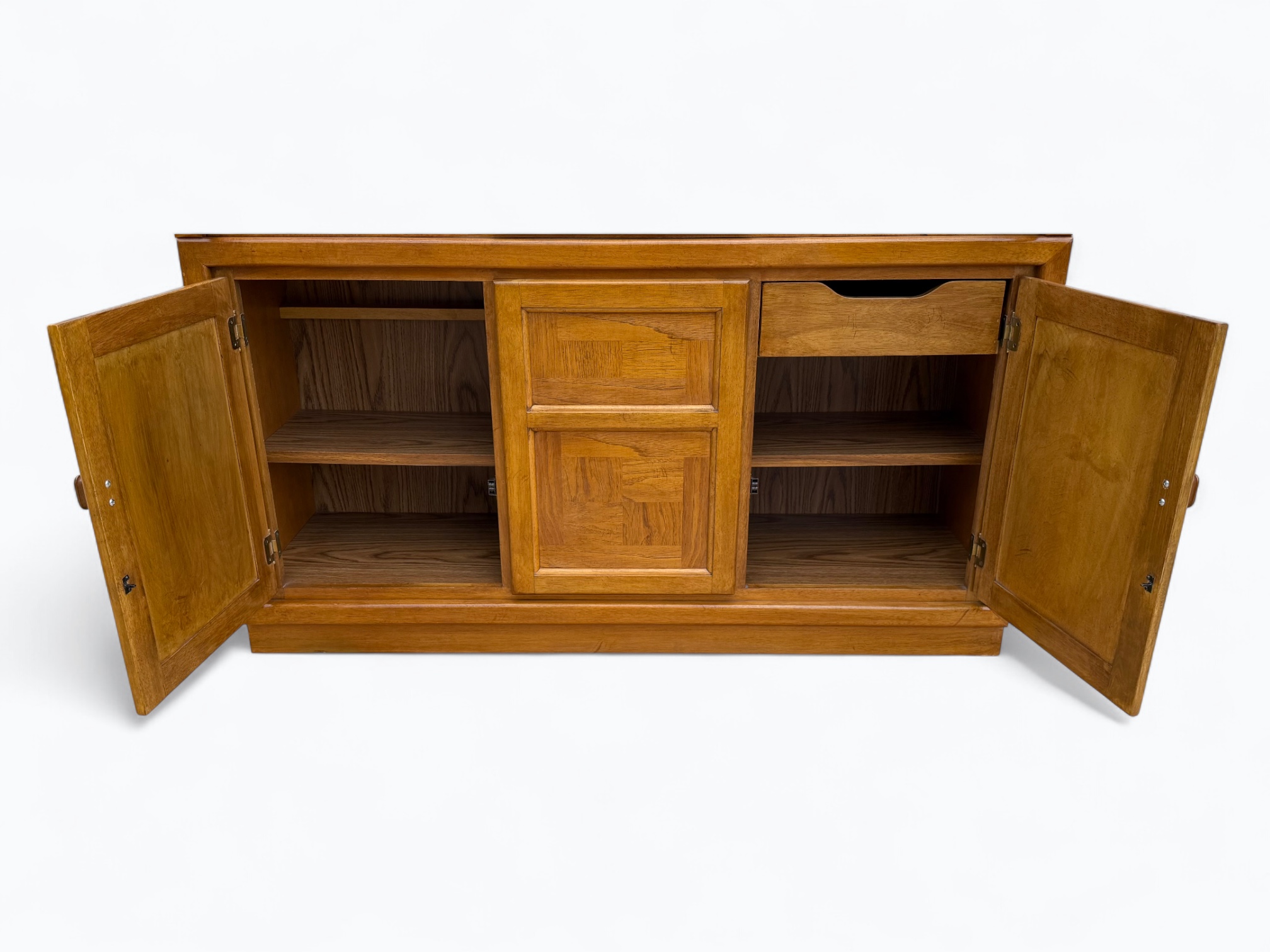 – Base: 2 cabinet doors; Center door does not open; Fixed half-shelf in the middle; 1 drawer with utensil dividers