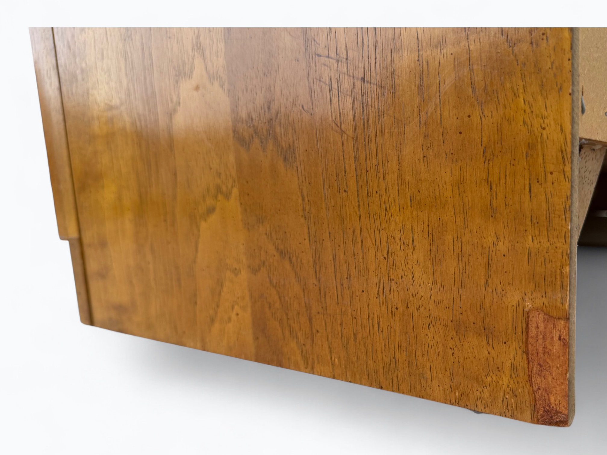 • [Condition]: 8.5/10; Very Good condition; Some small marks and scratches that have been touched up; Veneer chip on the bottom back corner of the base; Thoroughly cleaned and polished