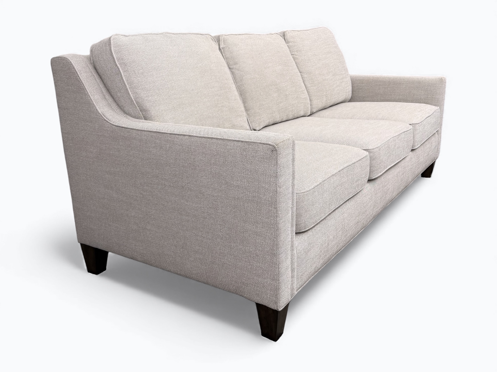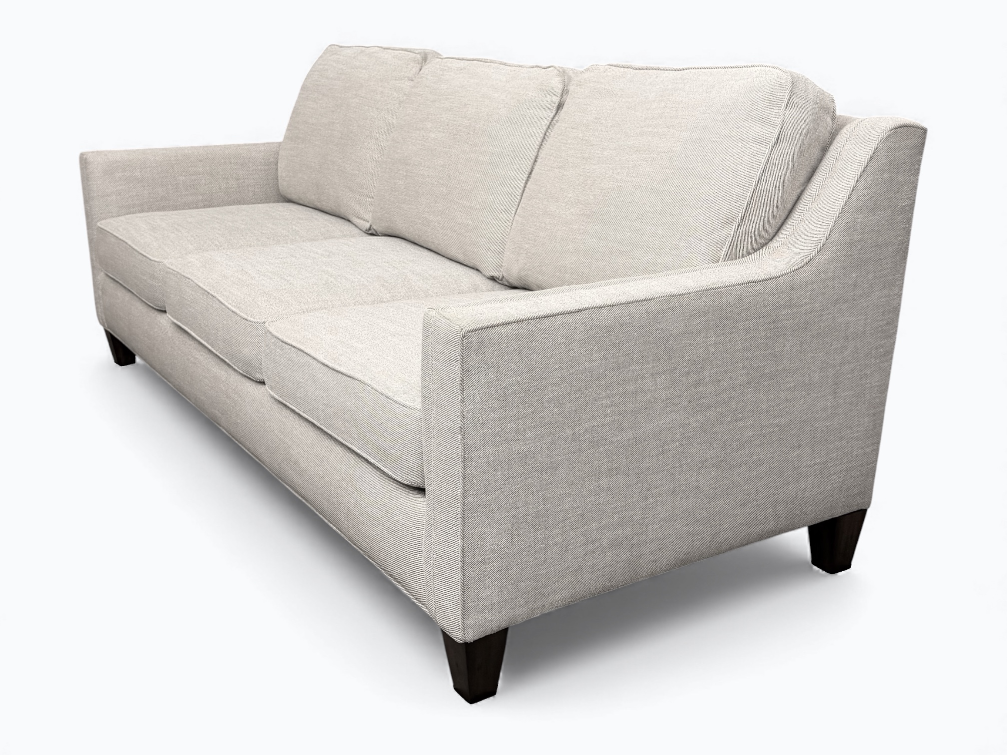 • [Features]: Corner block frame; Blue ribbon steel spring system; Back cushions are stitched on, not removable and have a zipper at the bottom; Seat cushions are removable, reversible for double fabric life, unzip of easy wash and have an outer layer of memory foam; Sloped track armrests that are padded on the inner sides; Square tapered legs; Solid and heavy construction