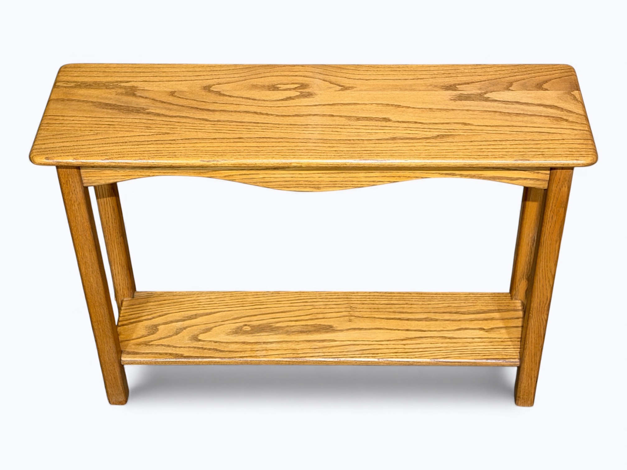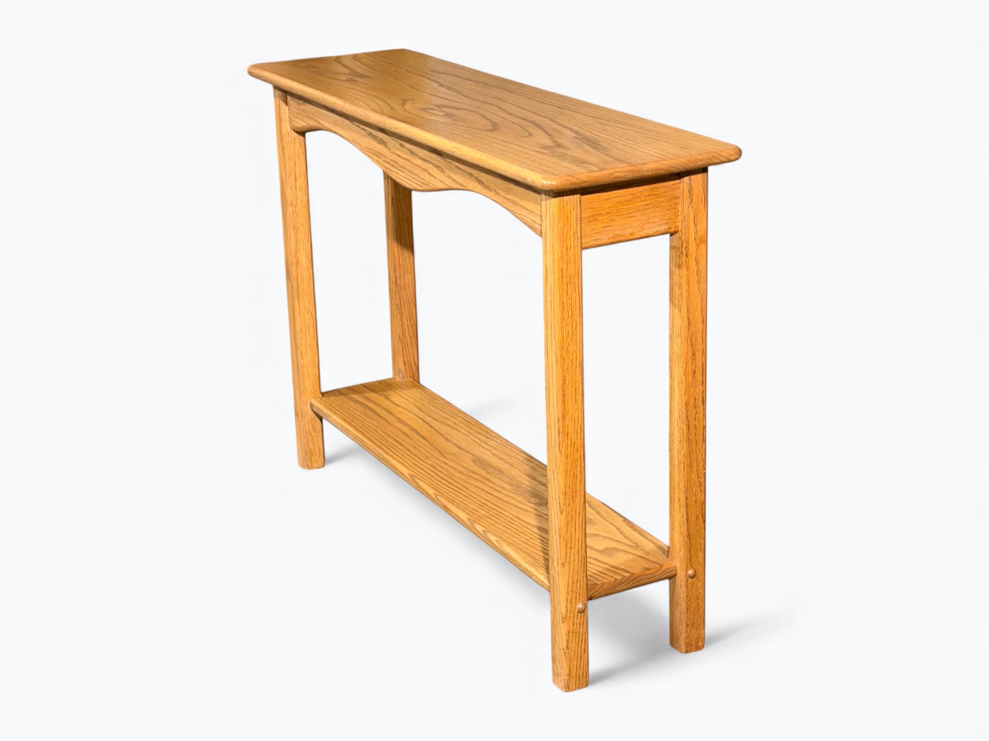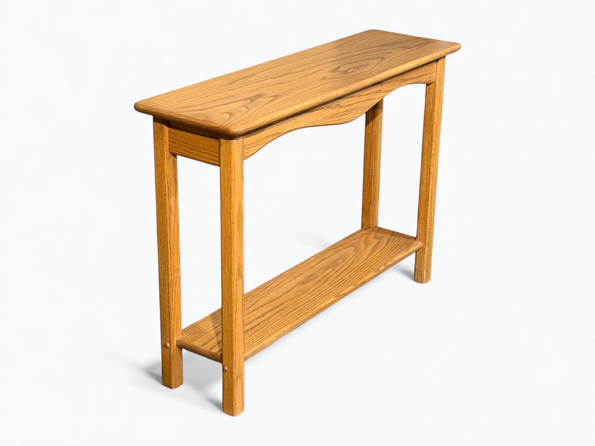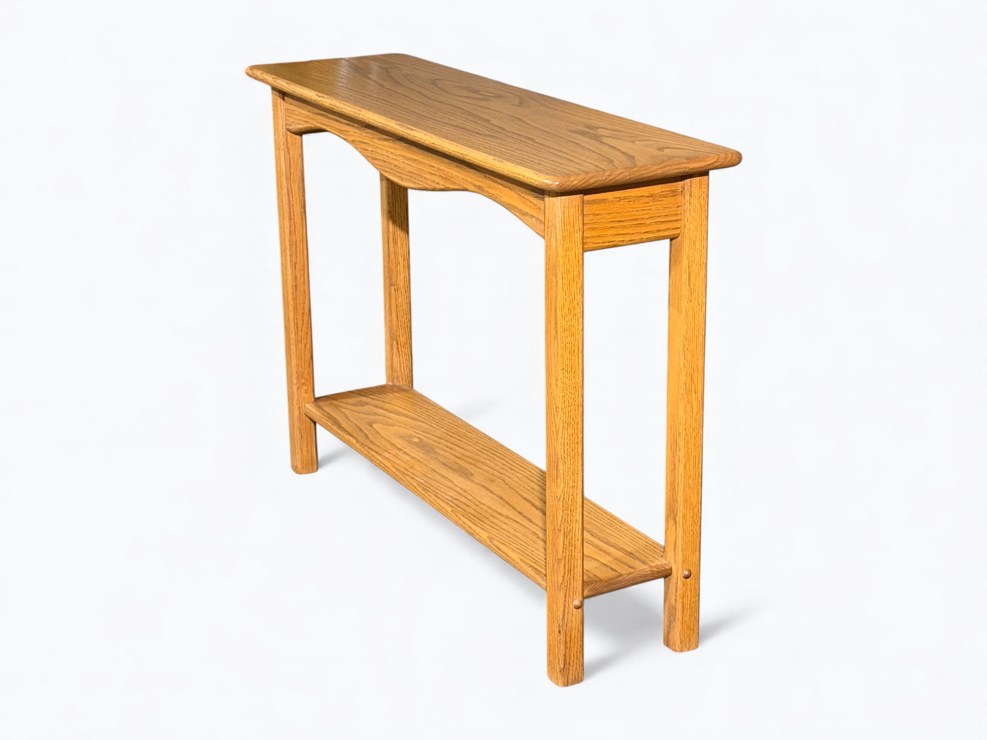 Light Brown Golden Solid Oak Narrow Console Table w/ Lower Shelf