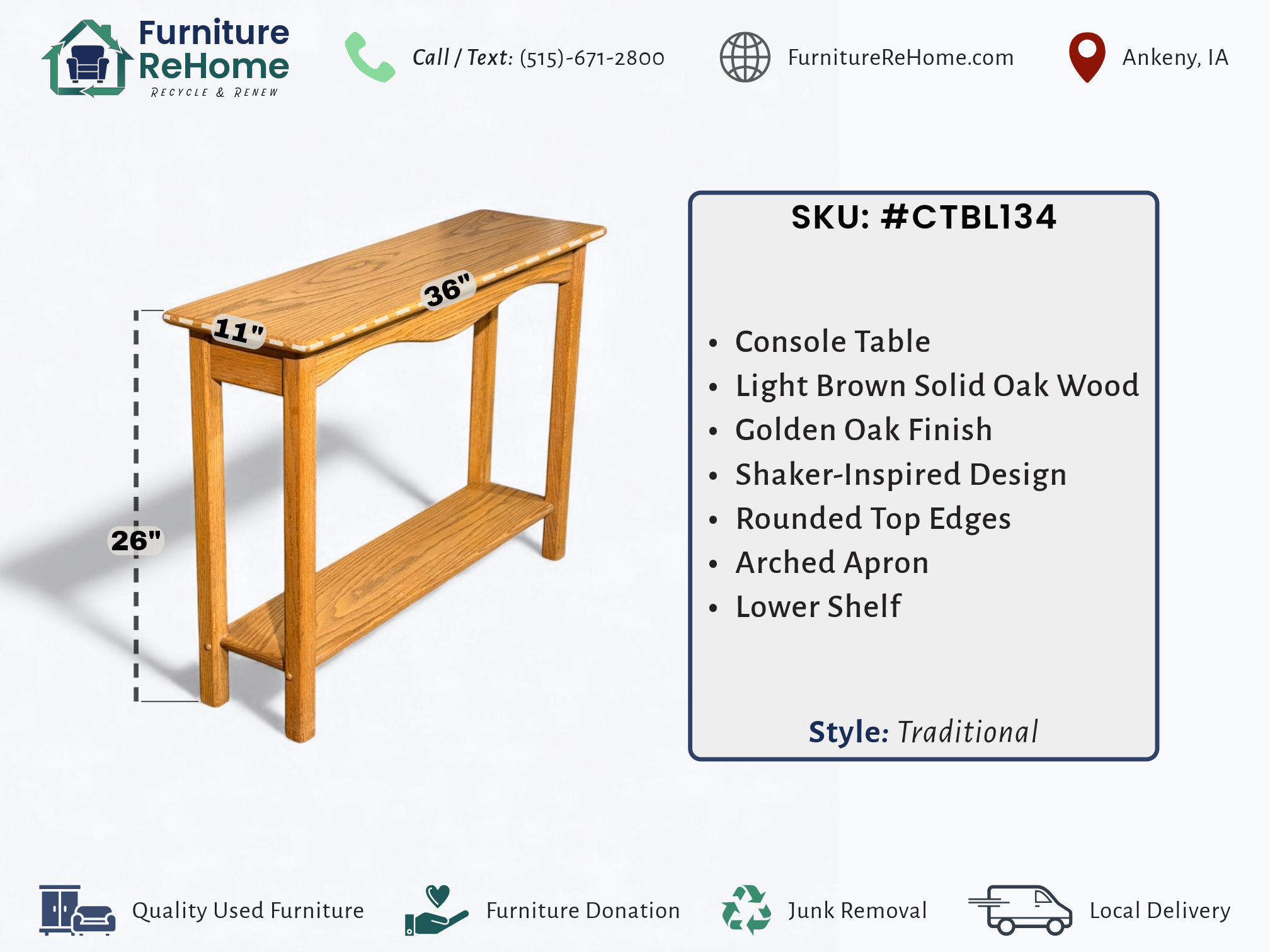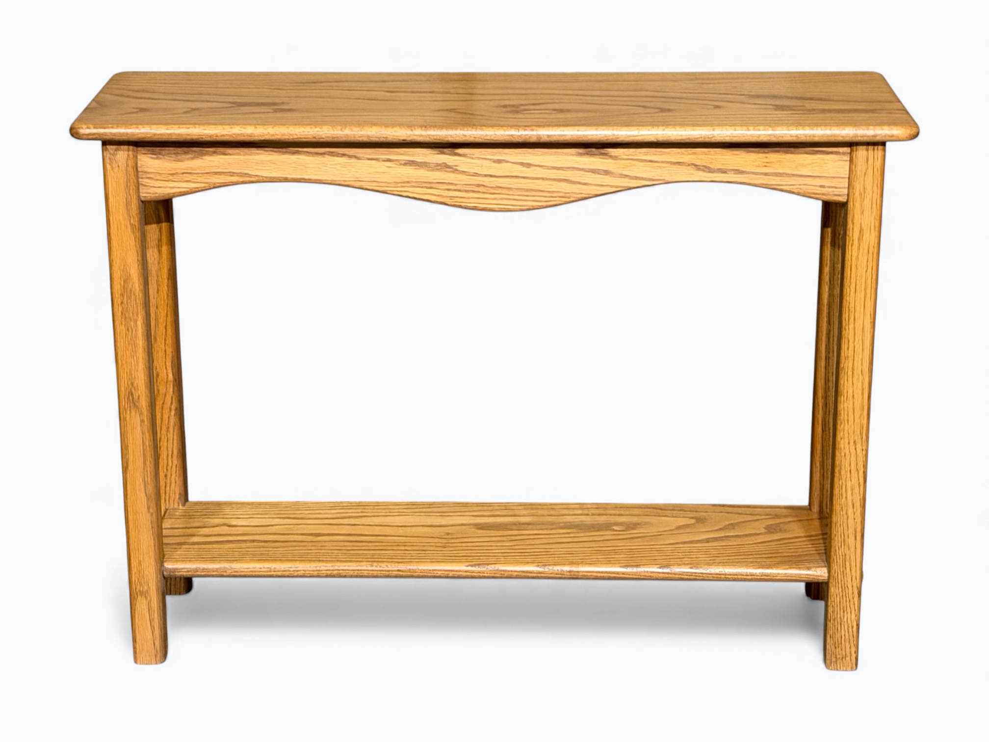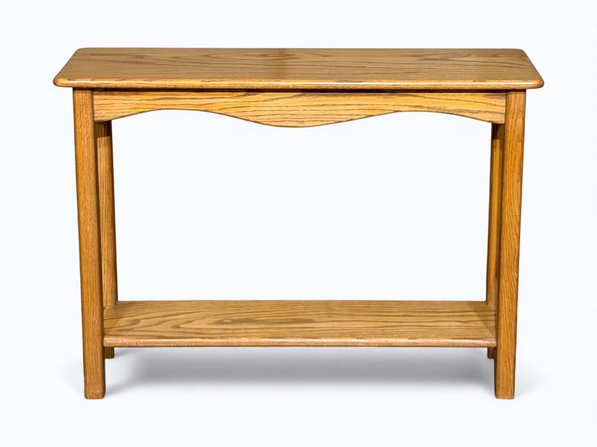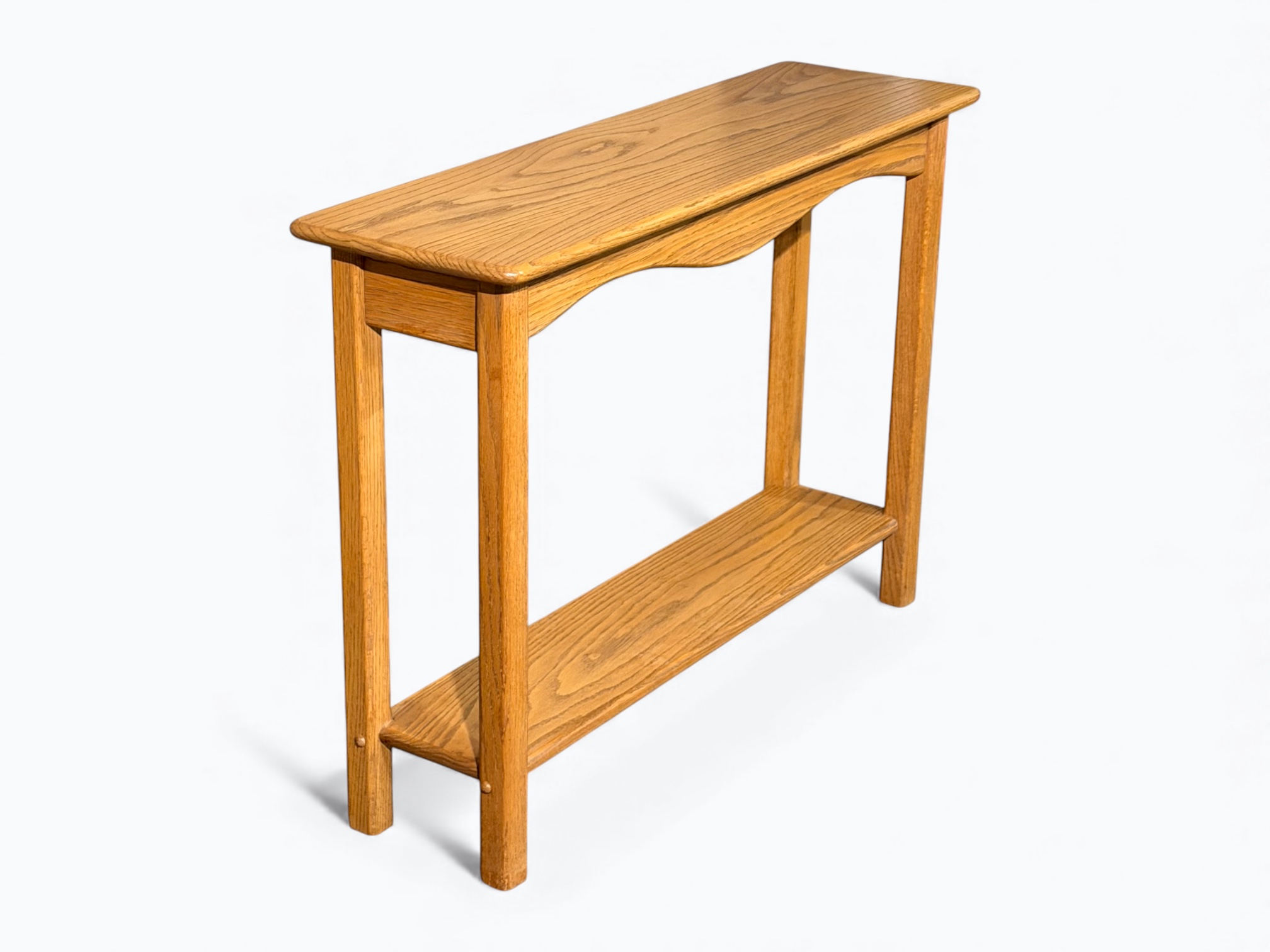 Light Brown Golden Solid Oak Narrow Console Table w/ Lower Shelf