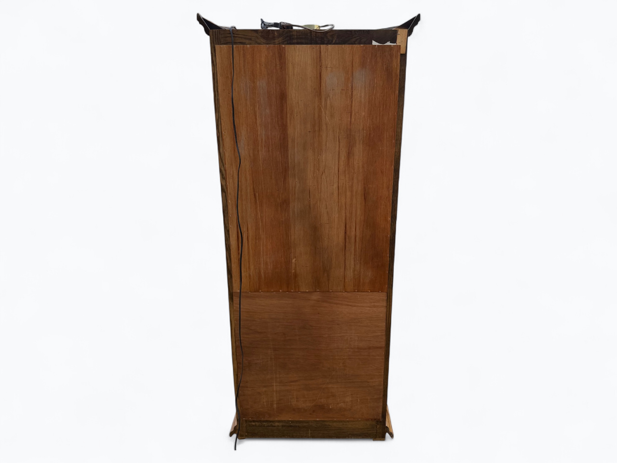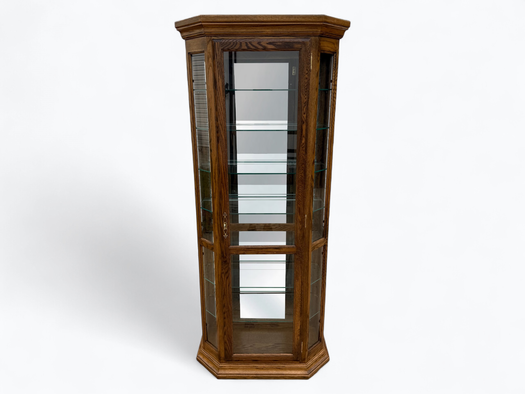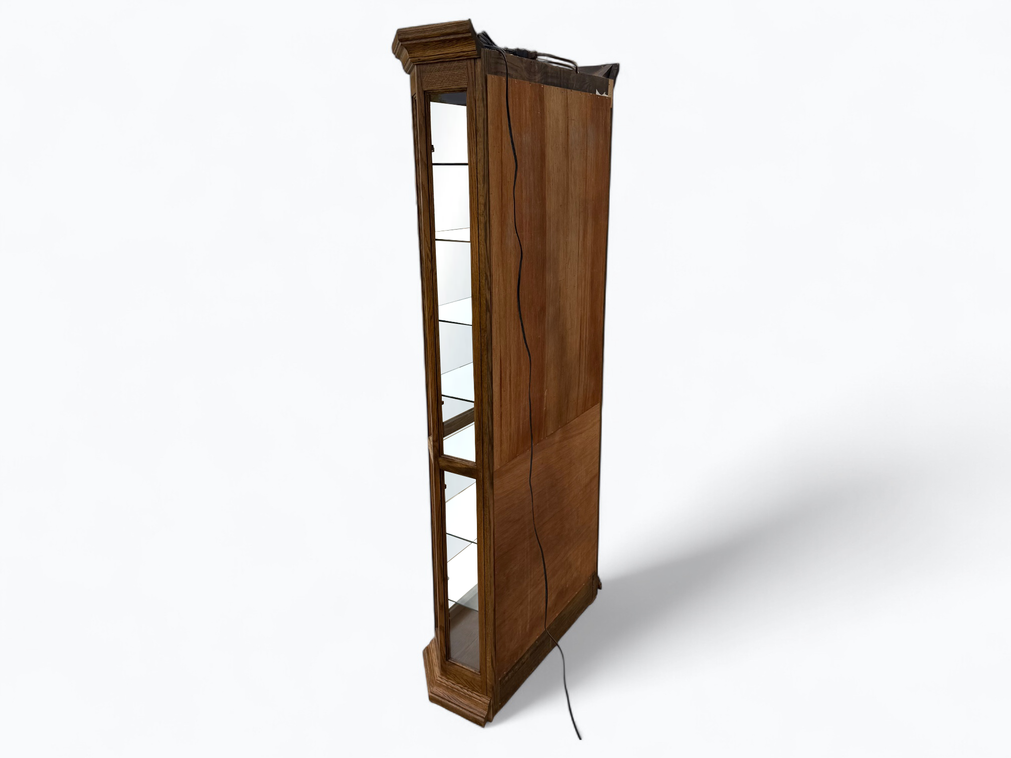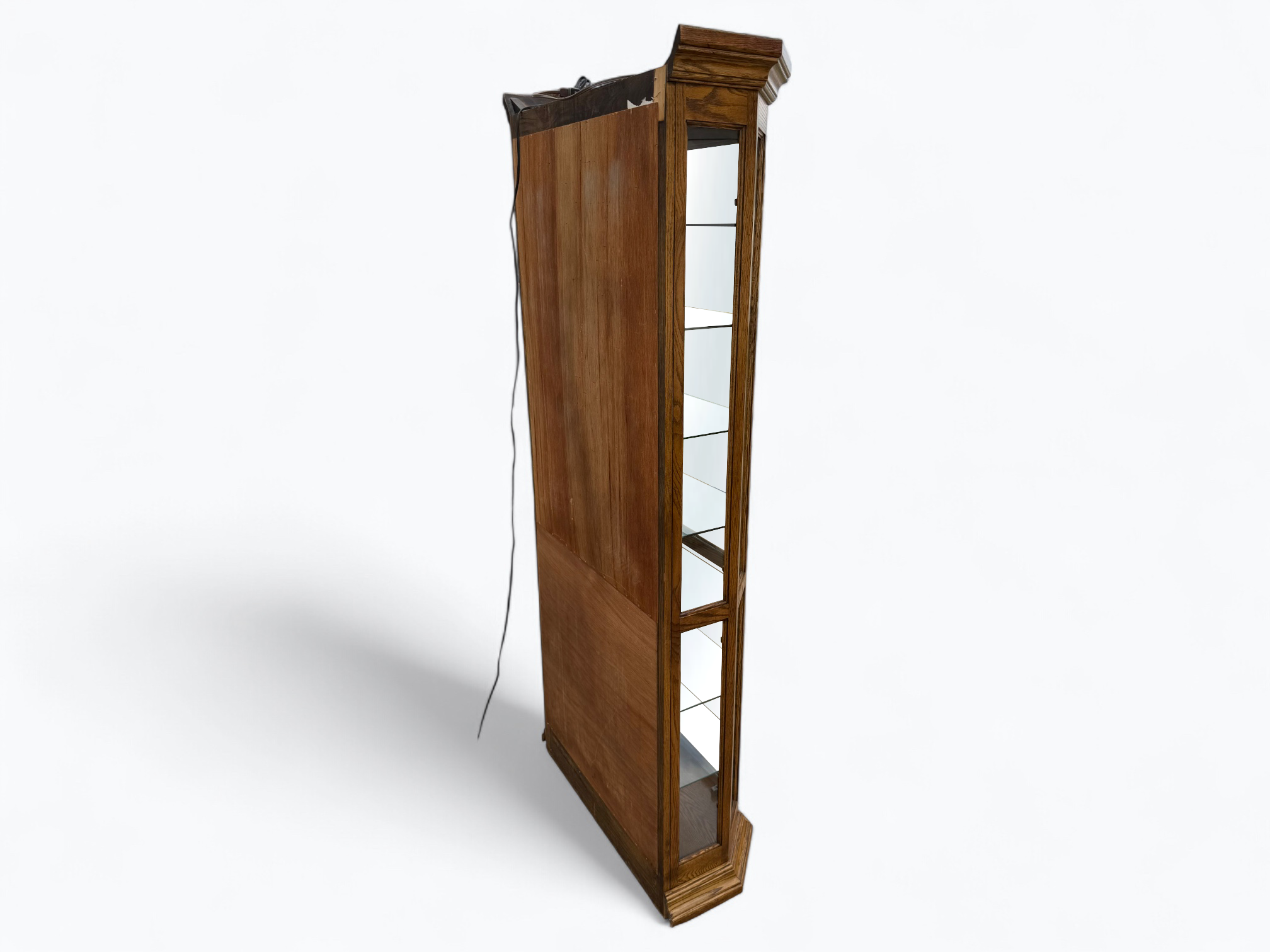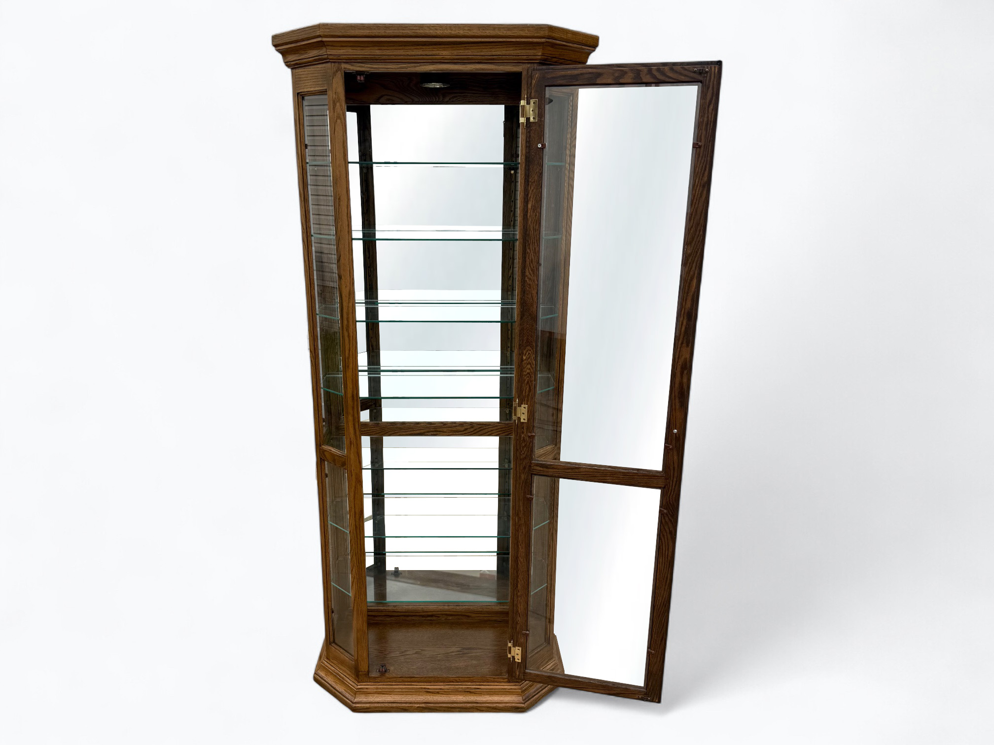 • [Features]: Touch-activated light with 3 settings; Single glass cabinet door; 7 glass shelves; Mirrored inner backing; Paned glass sides