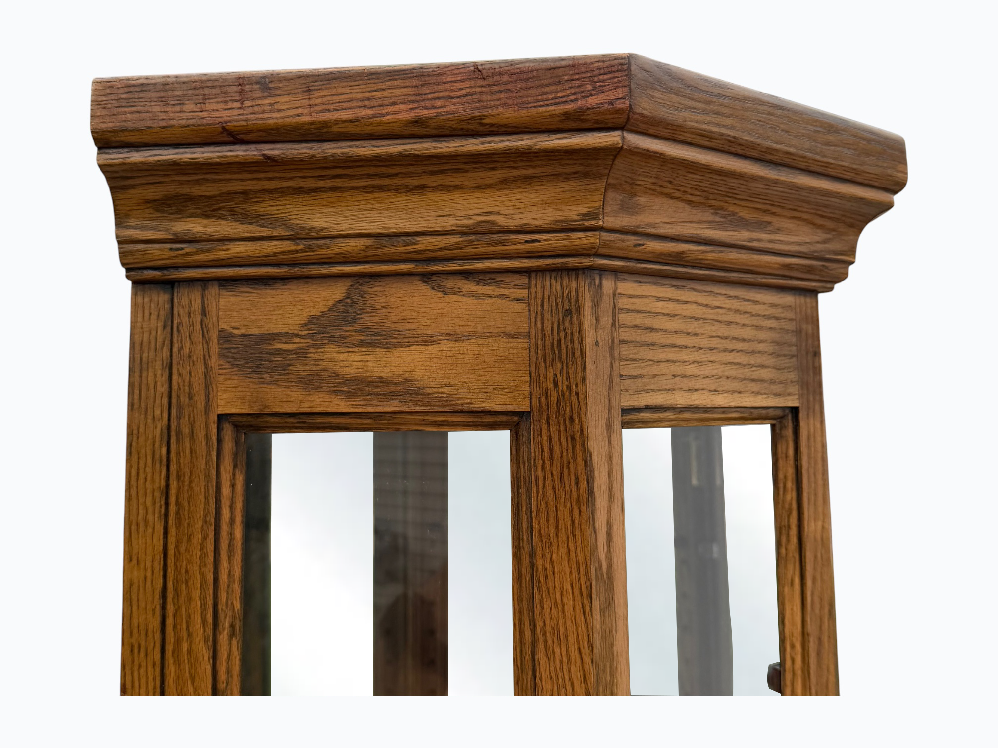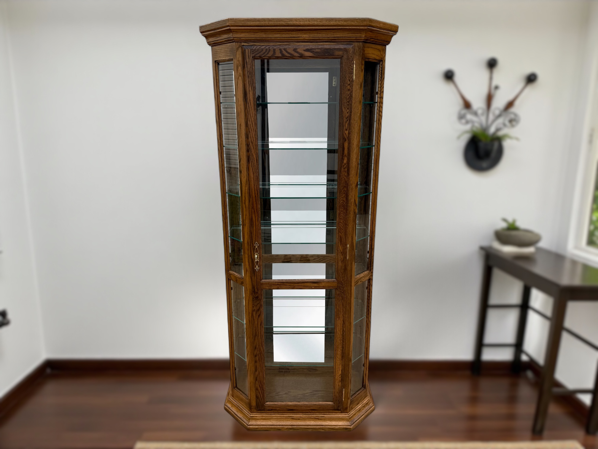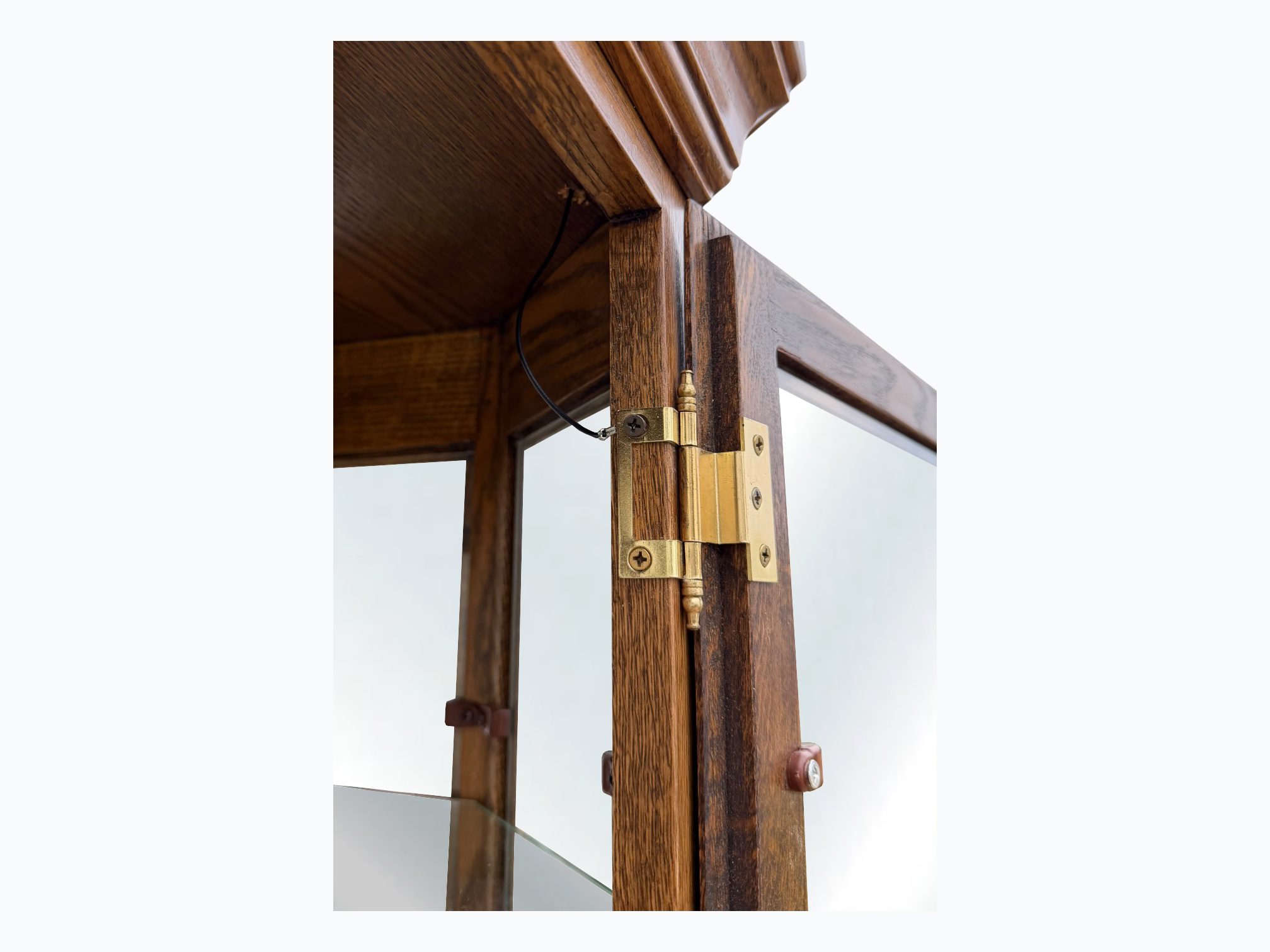 • [Type of Material]: Solid Oak Wood; Glass; Tempered Glass (shelves)