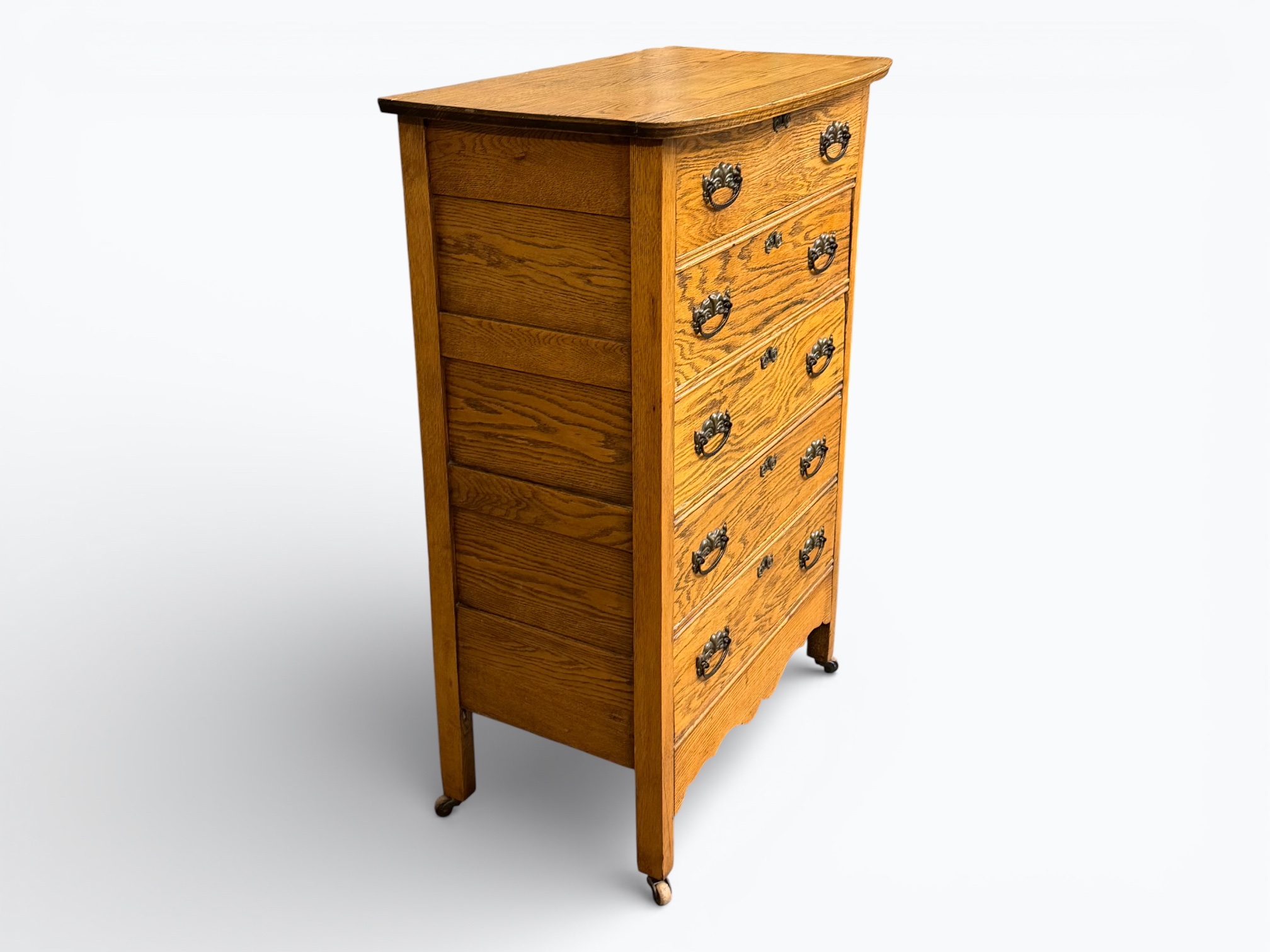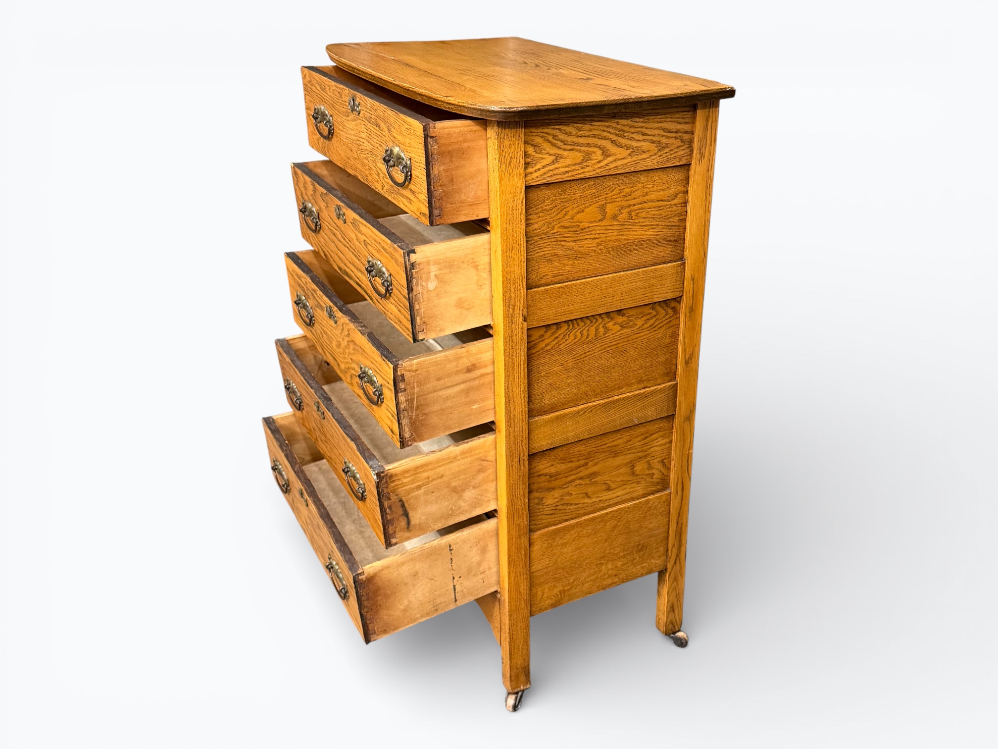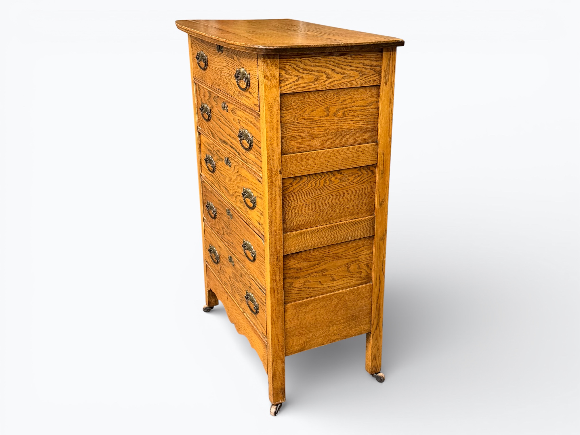 Antique Late Victorian Golden Tiger Oak 5-Drawer Tallboy Dresser