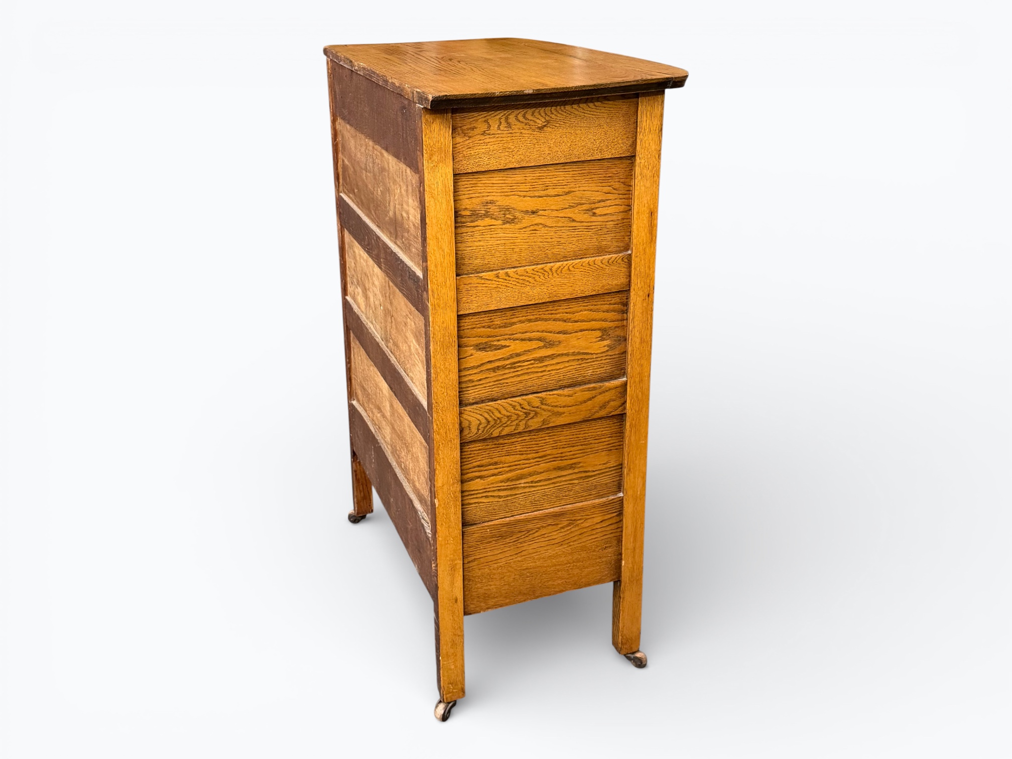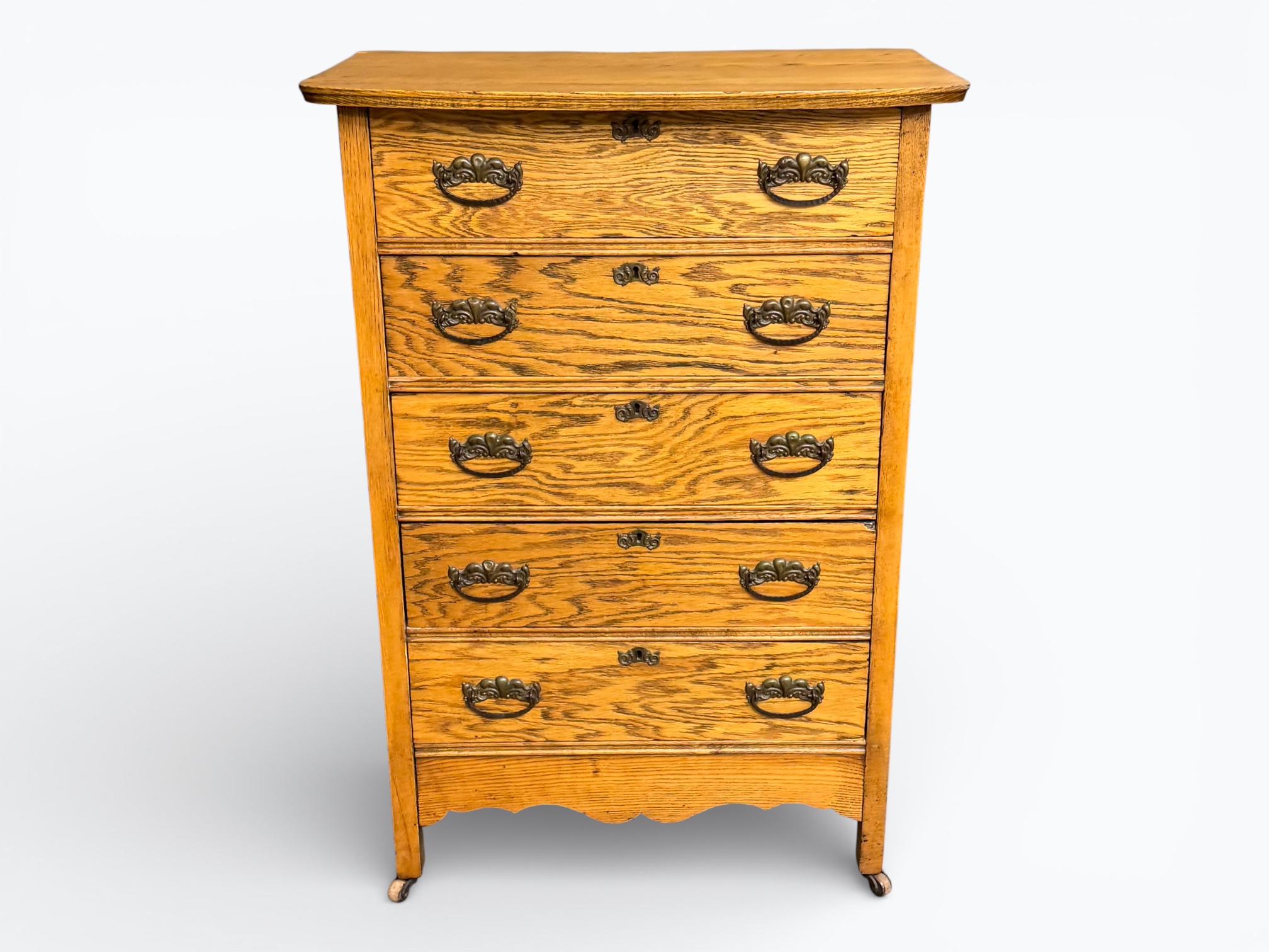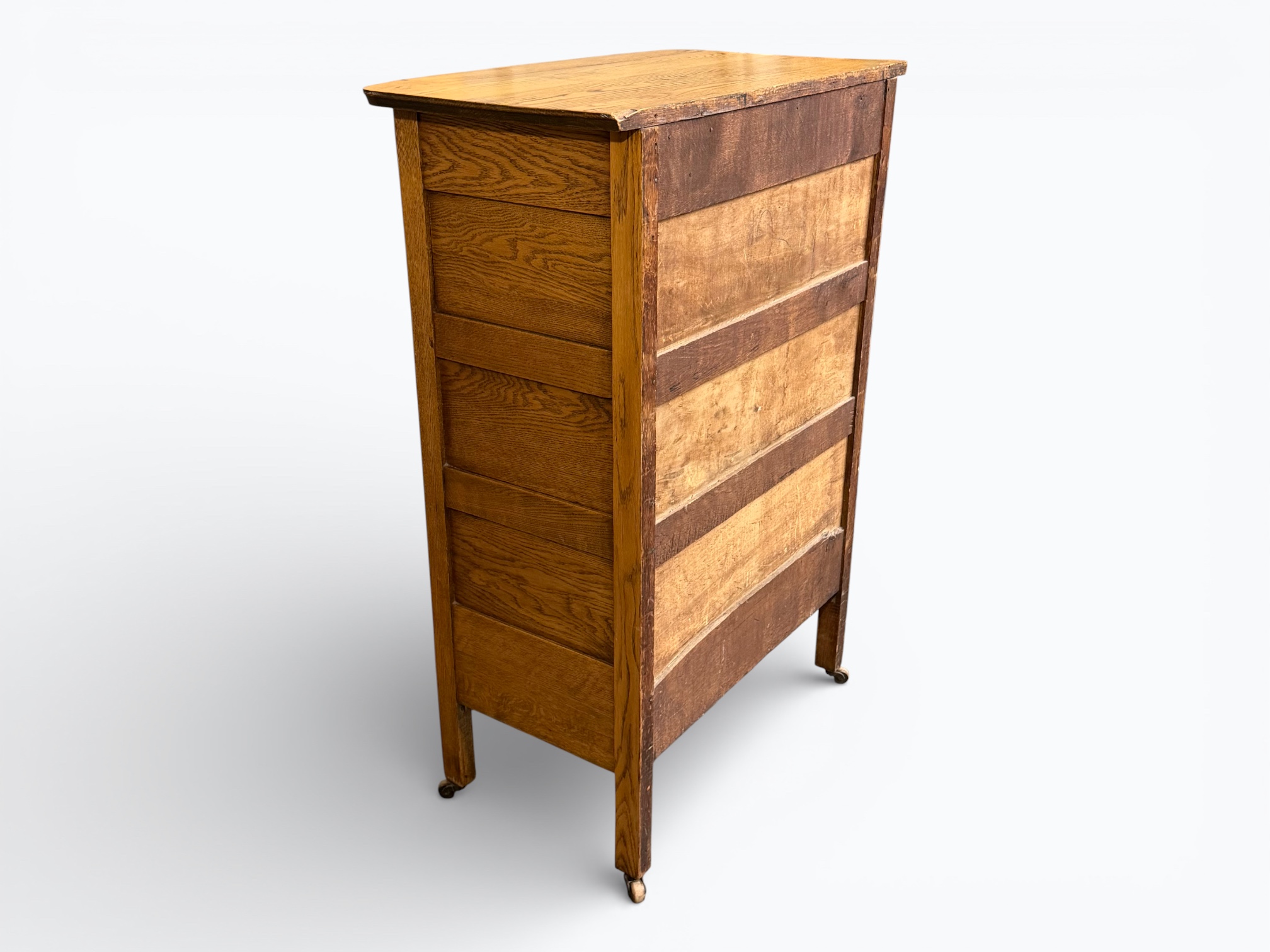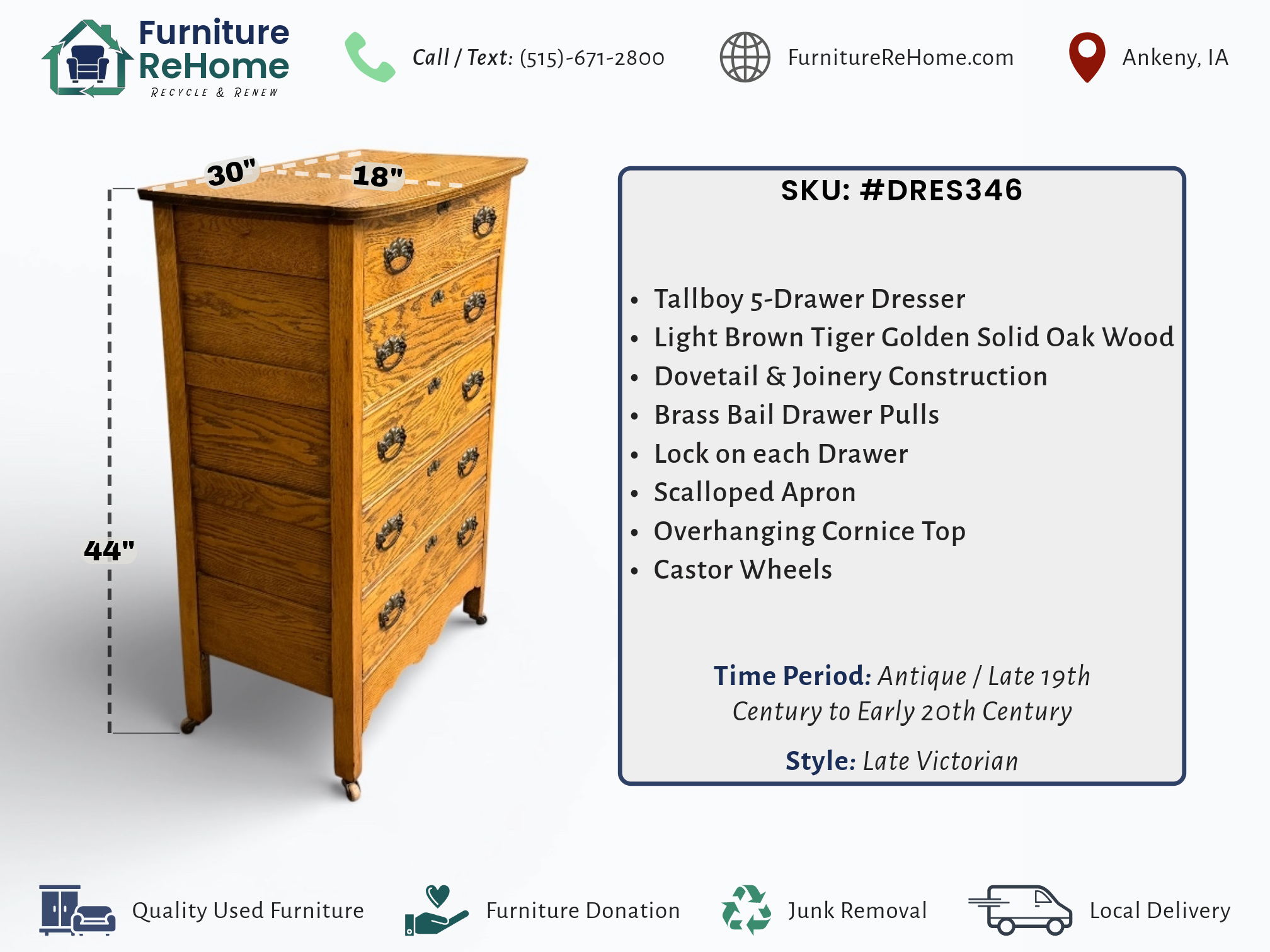 Antique Late Victorian Golden Tiger Oak 5-Drawer Tallboy Dresser
