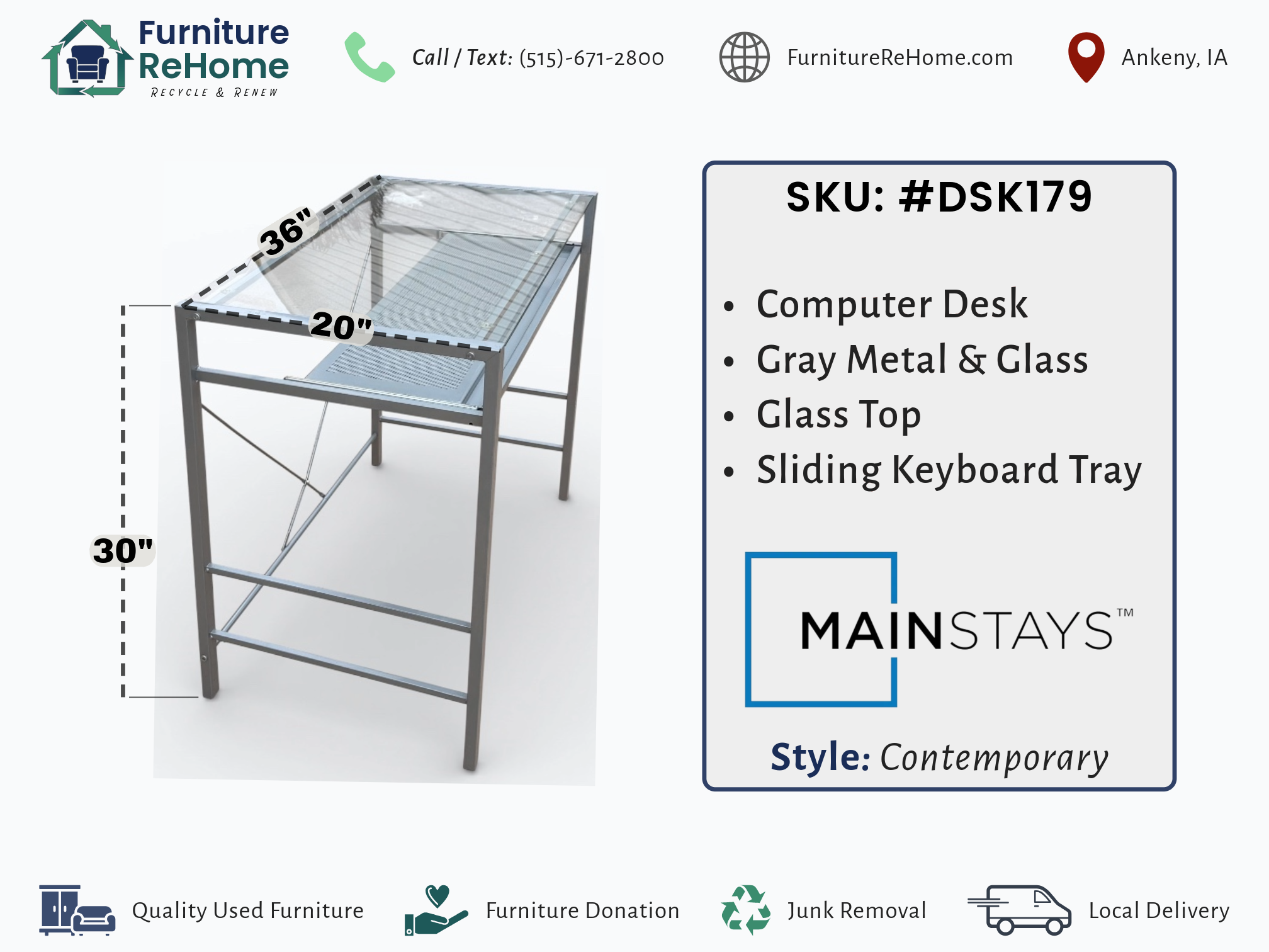 [Features]: Glass top; Sliding keyboard tray