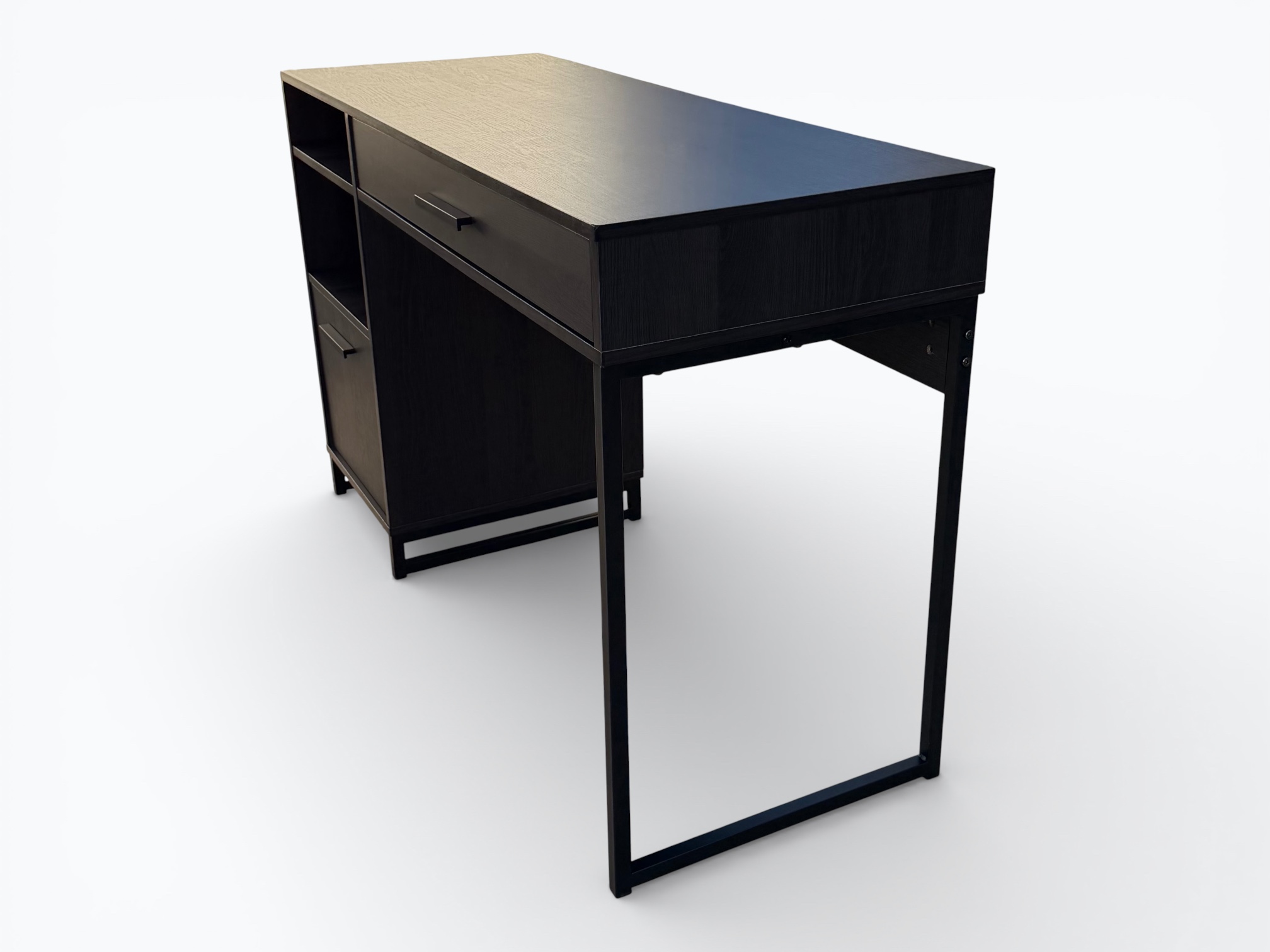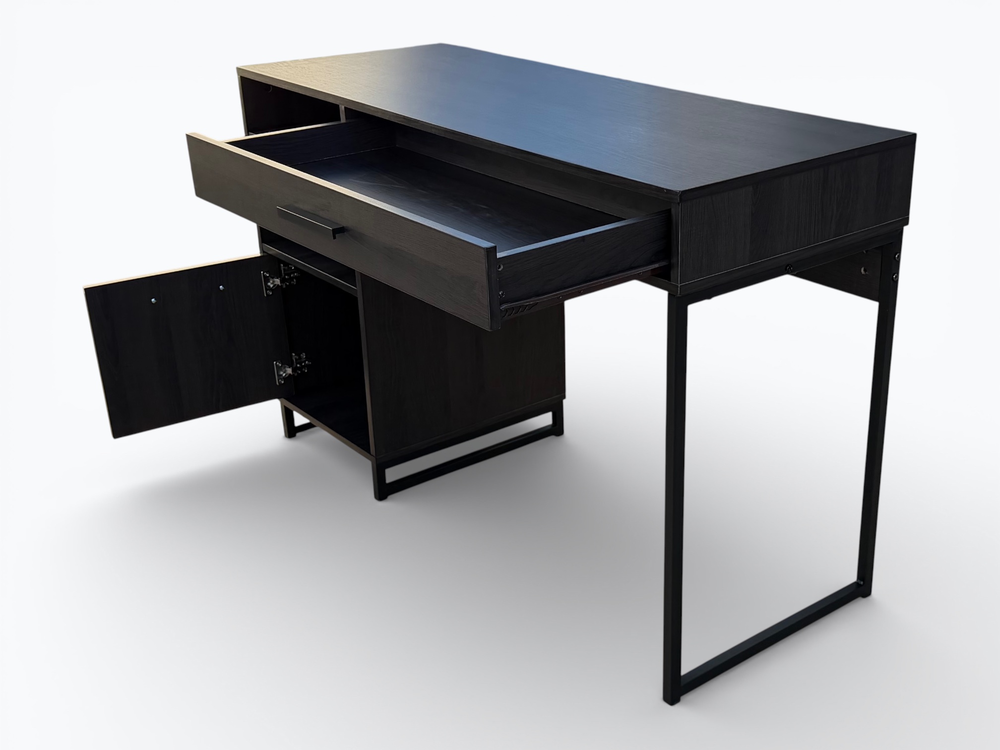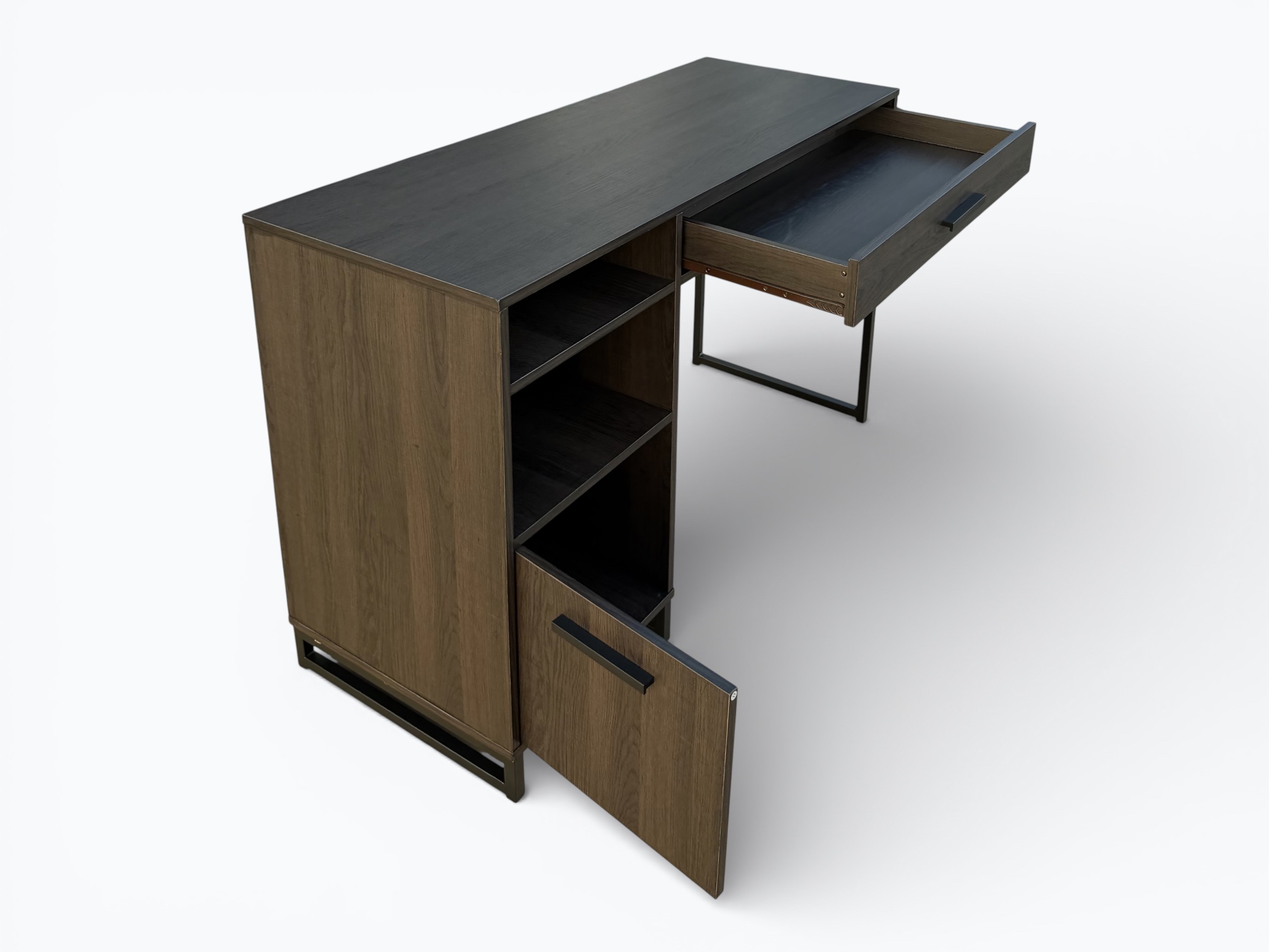 • [Features]: Pencil drawer with side-mounted roller slides; 2 open cubbies; 1 cabinet door with storage space inside