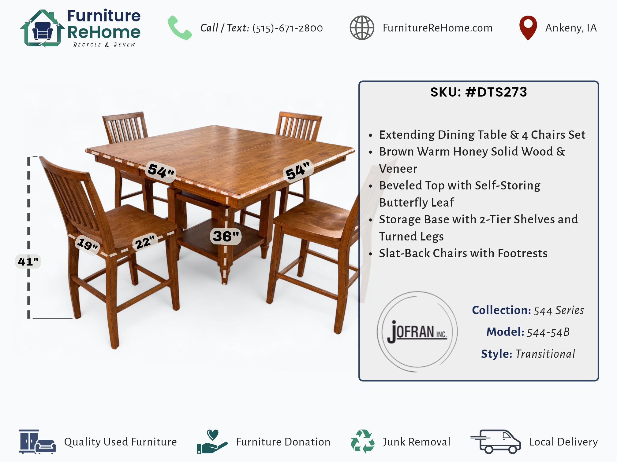 Jofran Furniture 544 Series Extending Dining Table & 4 Chairs Set