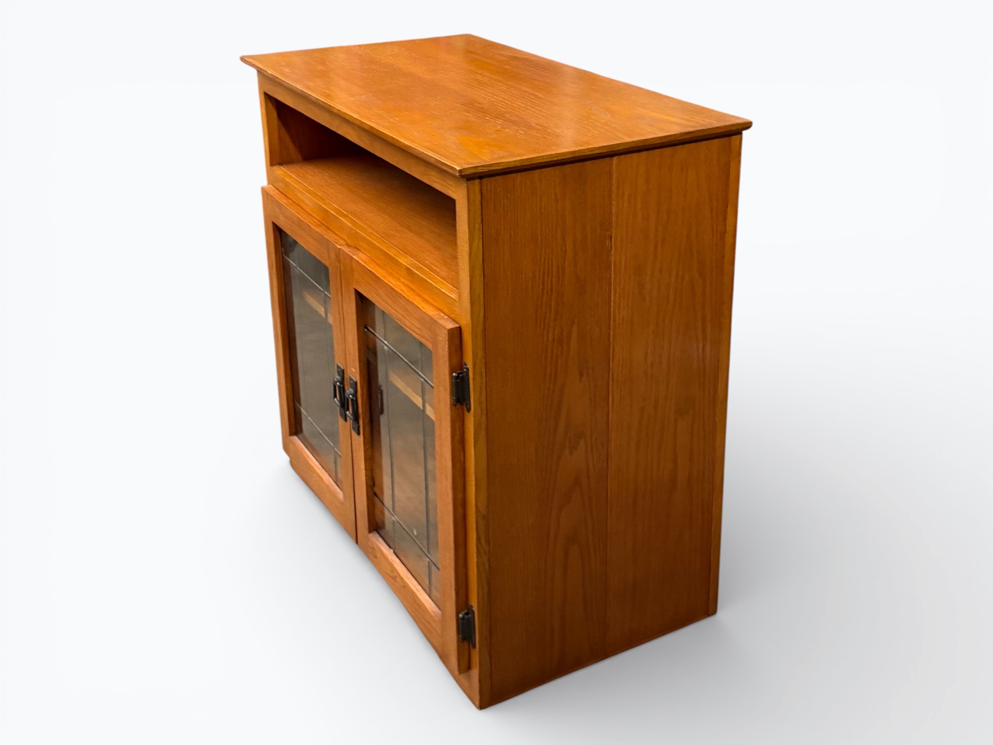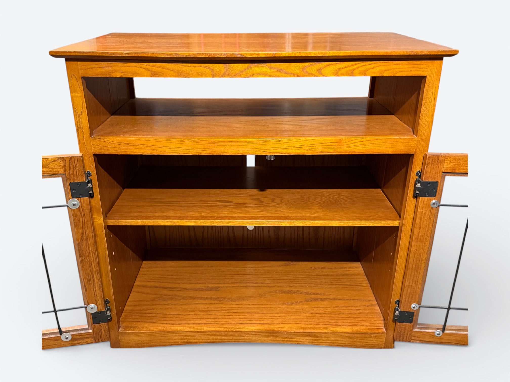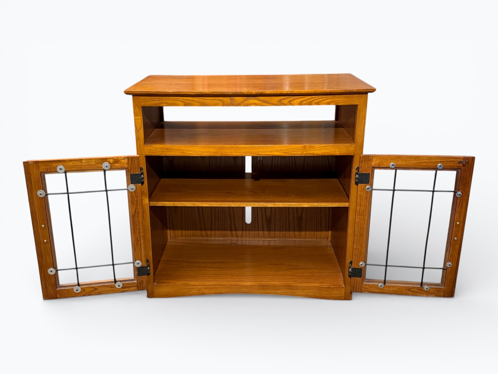 • [Features]: Cabinet doors with glass and roller catch hardware; 1 adjustable shelf; Shelf space at the top; Cord cutouts in the back; Holds up to a 36” TV