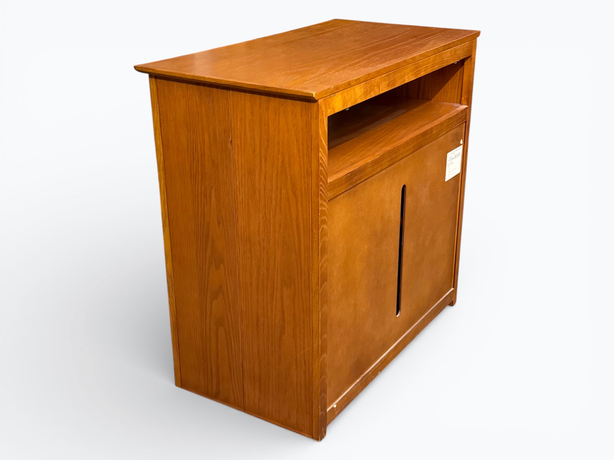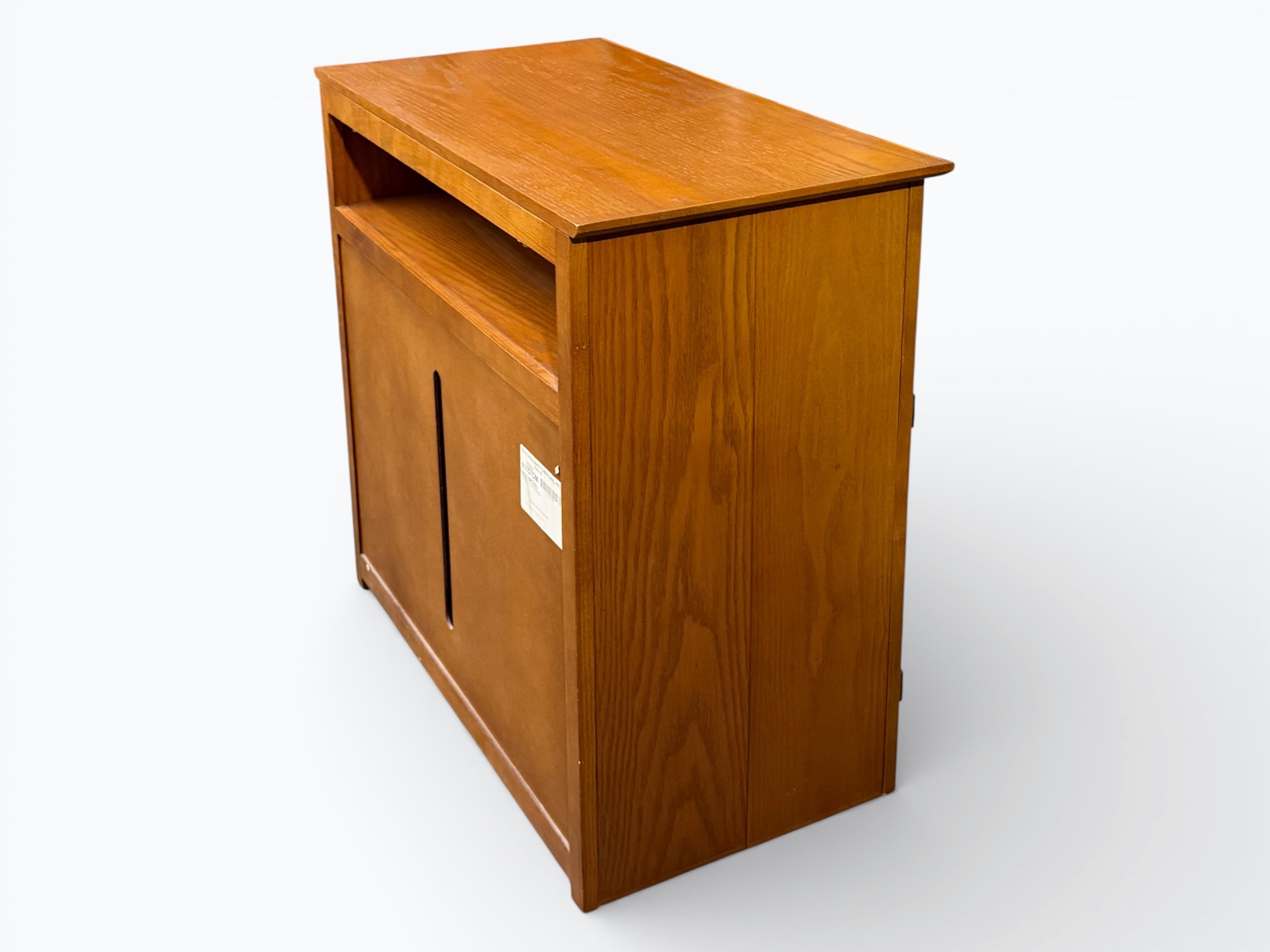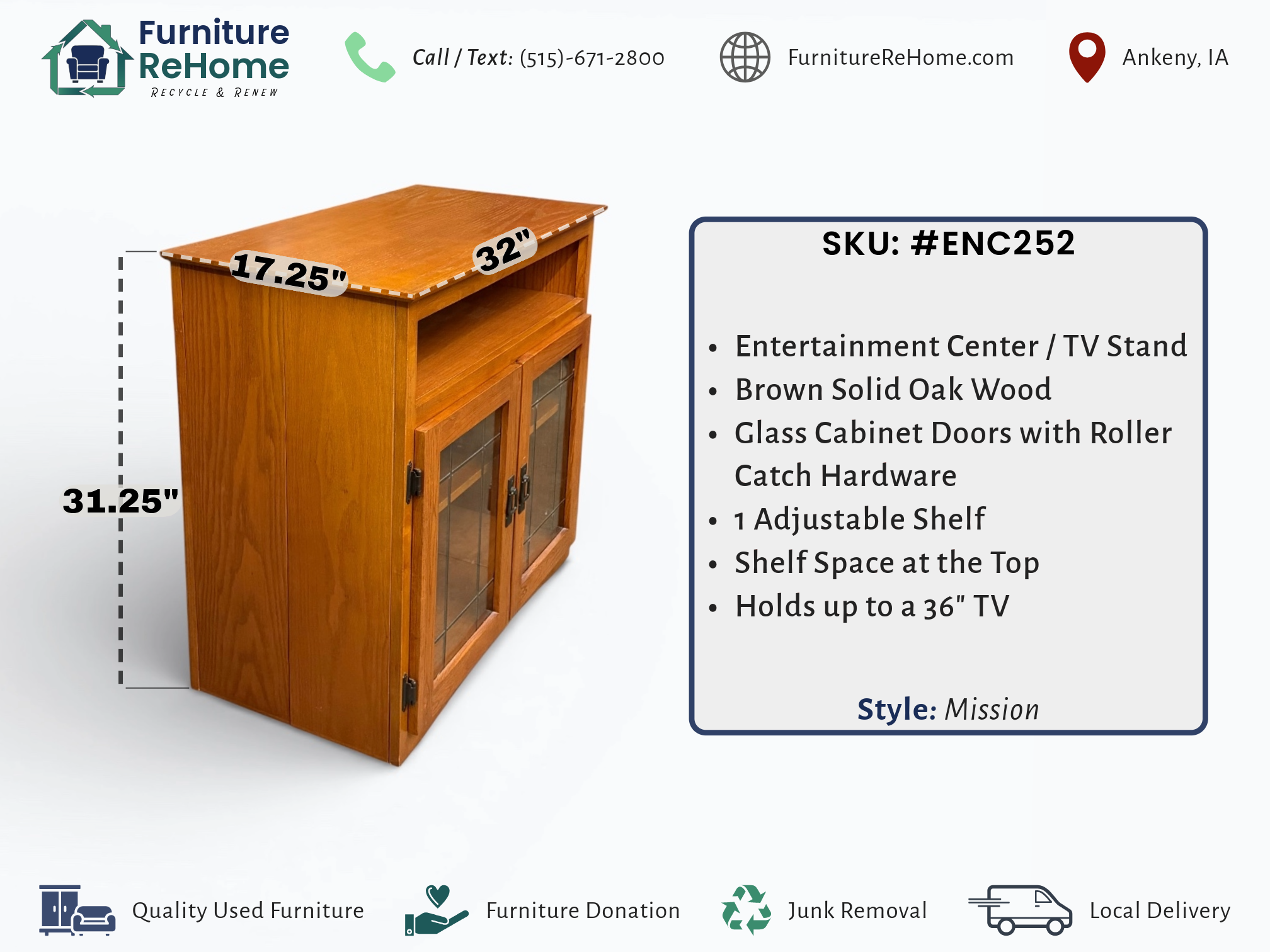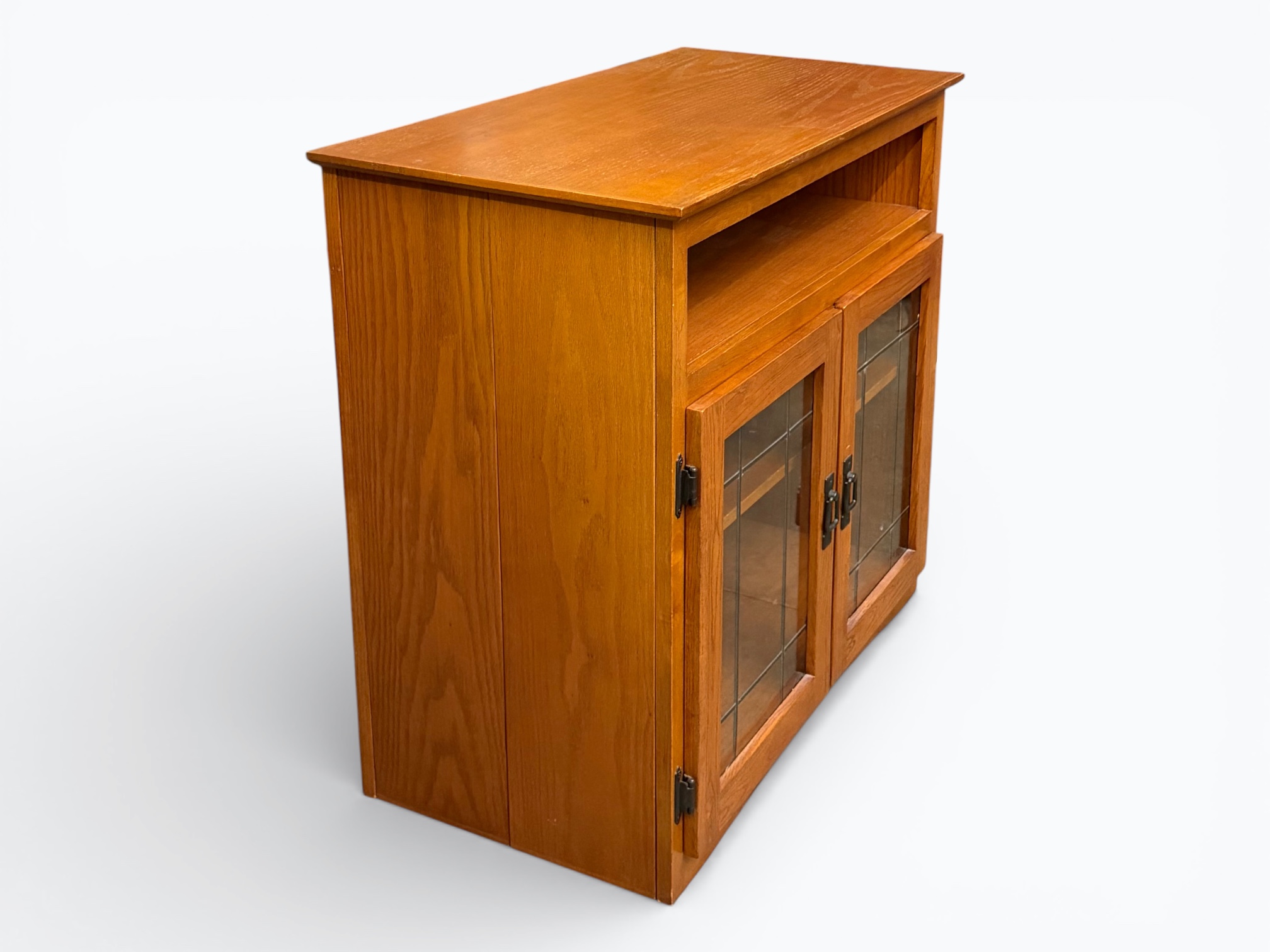 • [Features]: Cabinet doors with glass and roller catch hardware; 1 adjustable shelf; Shelf space at the top; Cord cutouts in the back; Holds up to a 36” TV