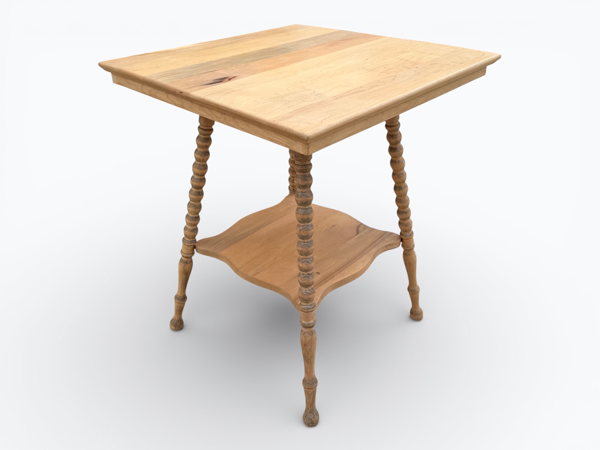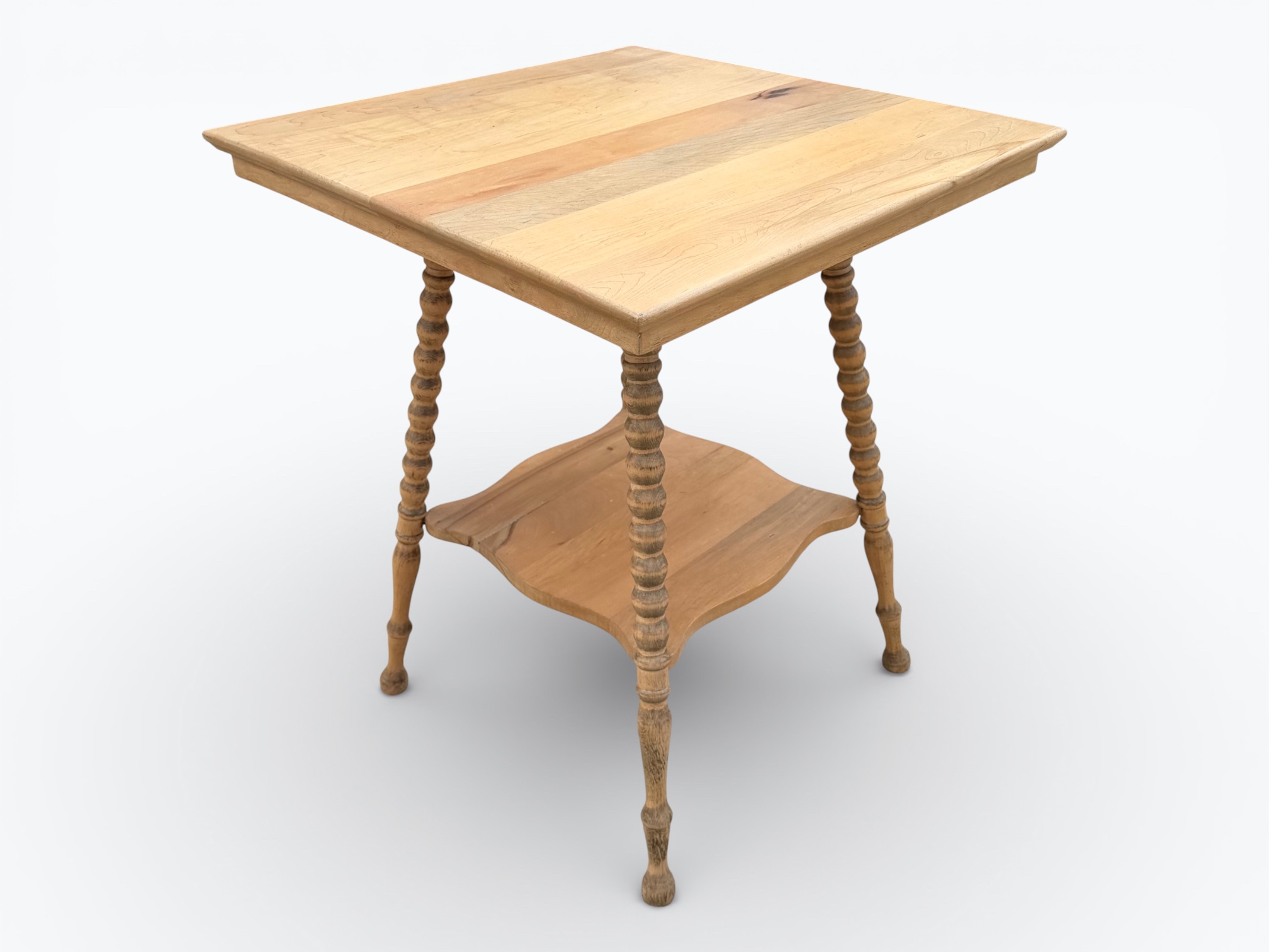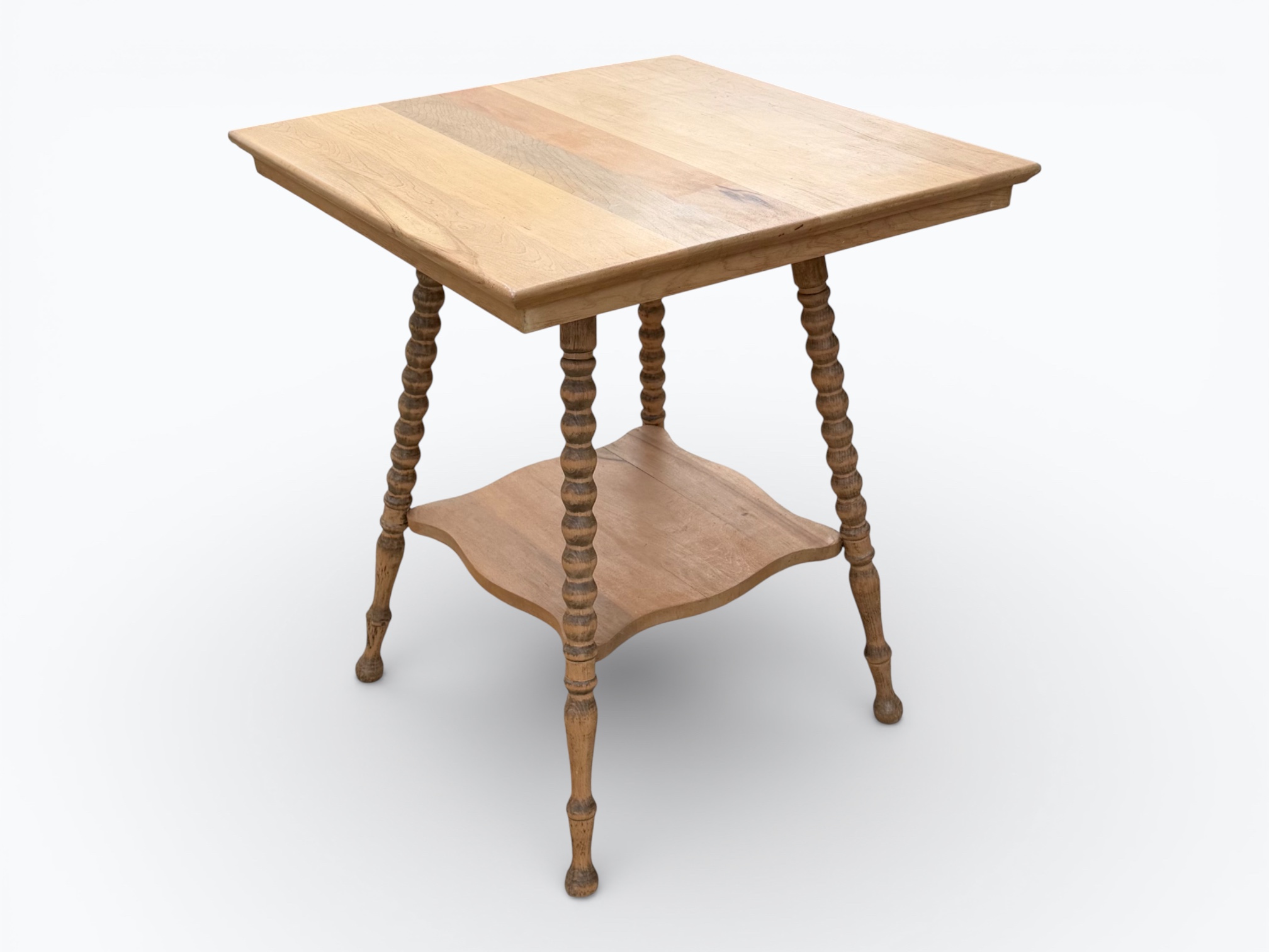 Victorian Light Brown 2-Tier Parlor Table w/ Bobbin Legs