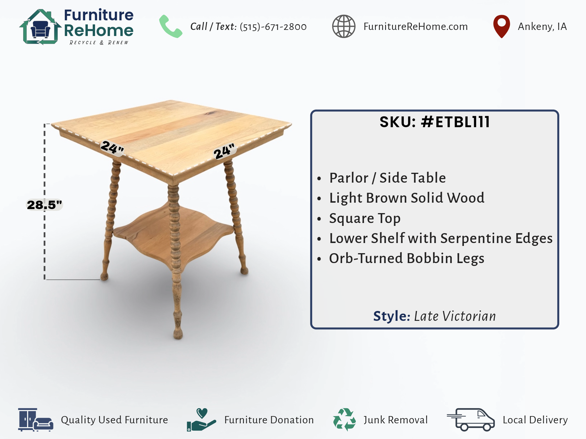• [Features]: Orb-turned bobbin legs; Lower shelf with serpentine edges; Square top