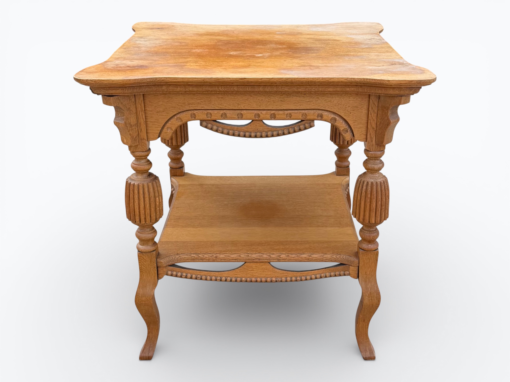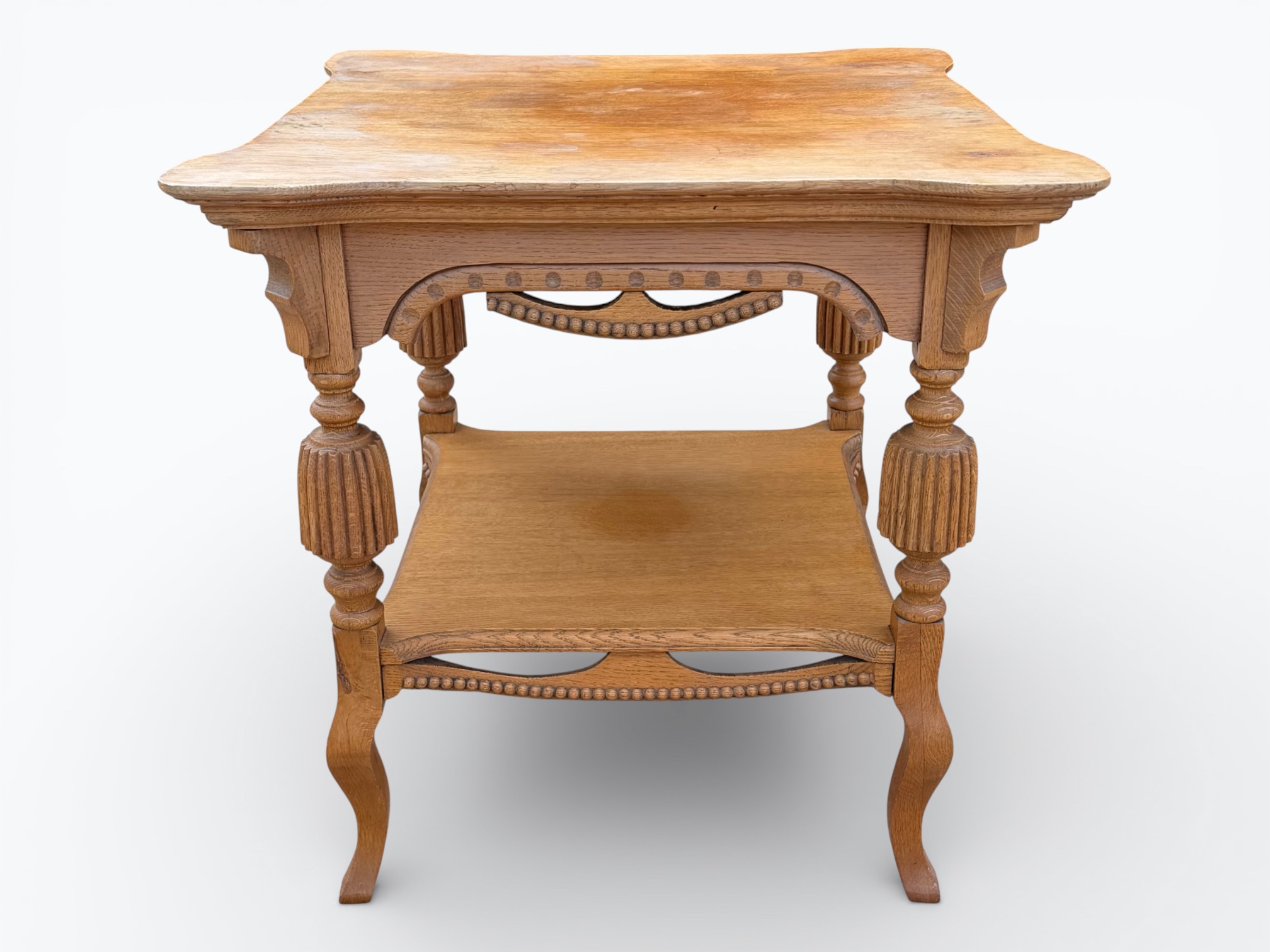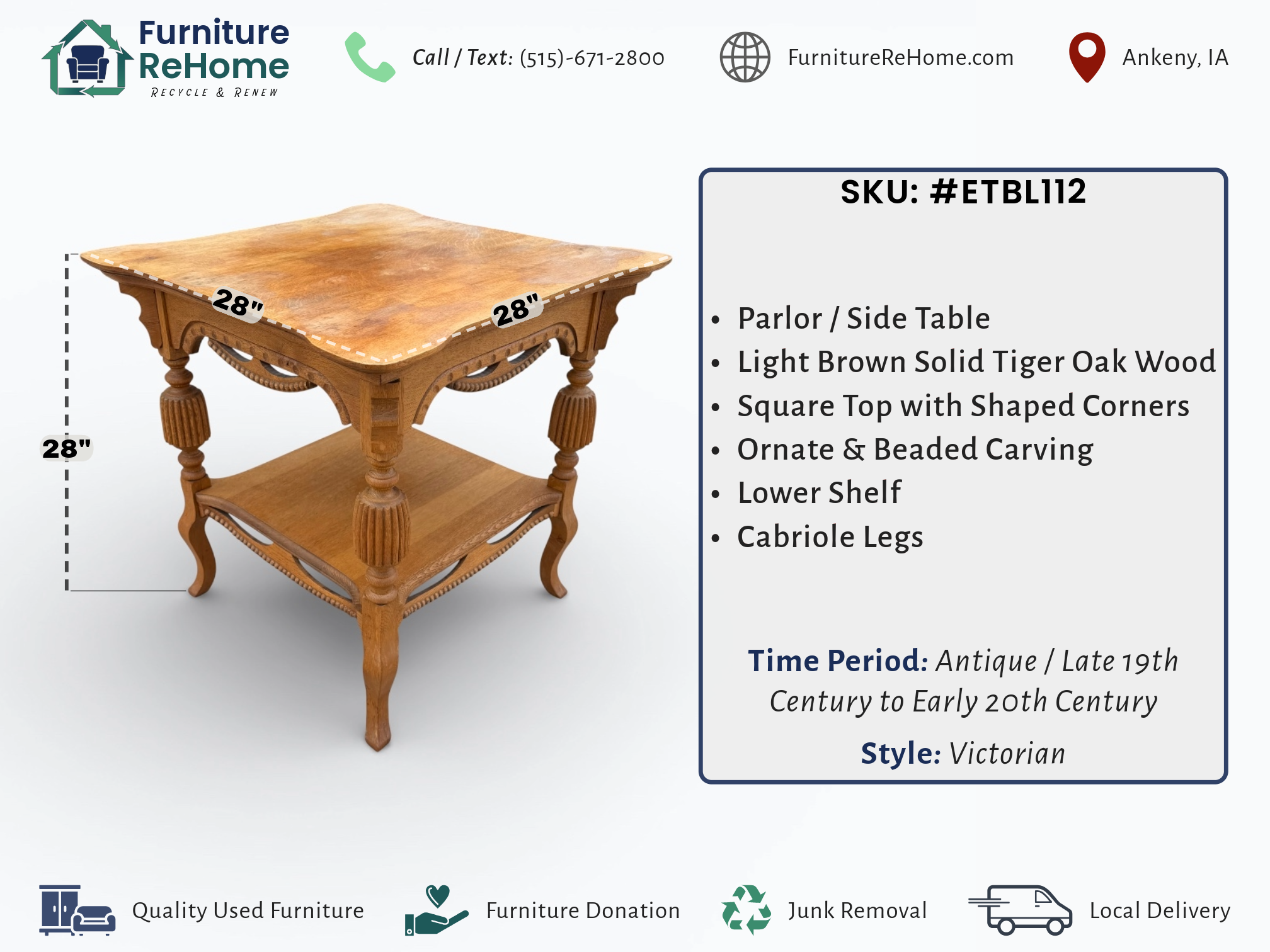 Antique Victorian Light Brown Tiger Oak Square Parlor / Side Table