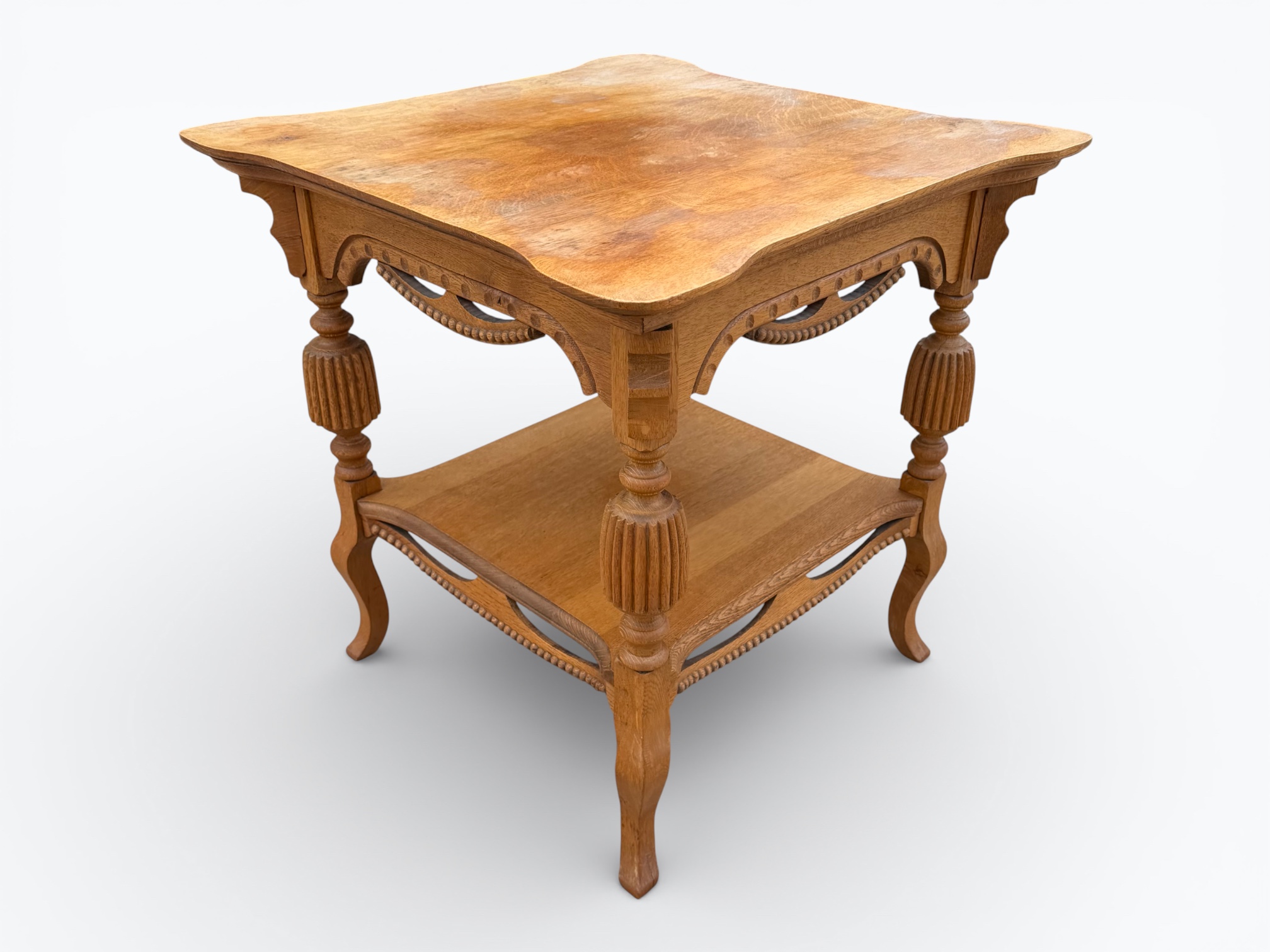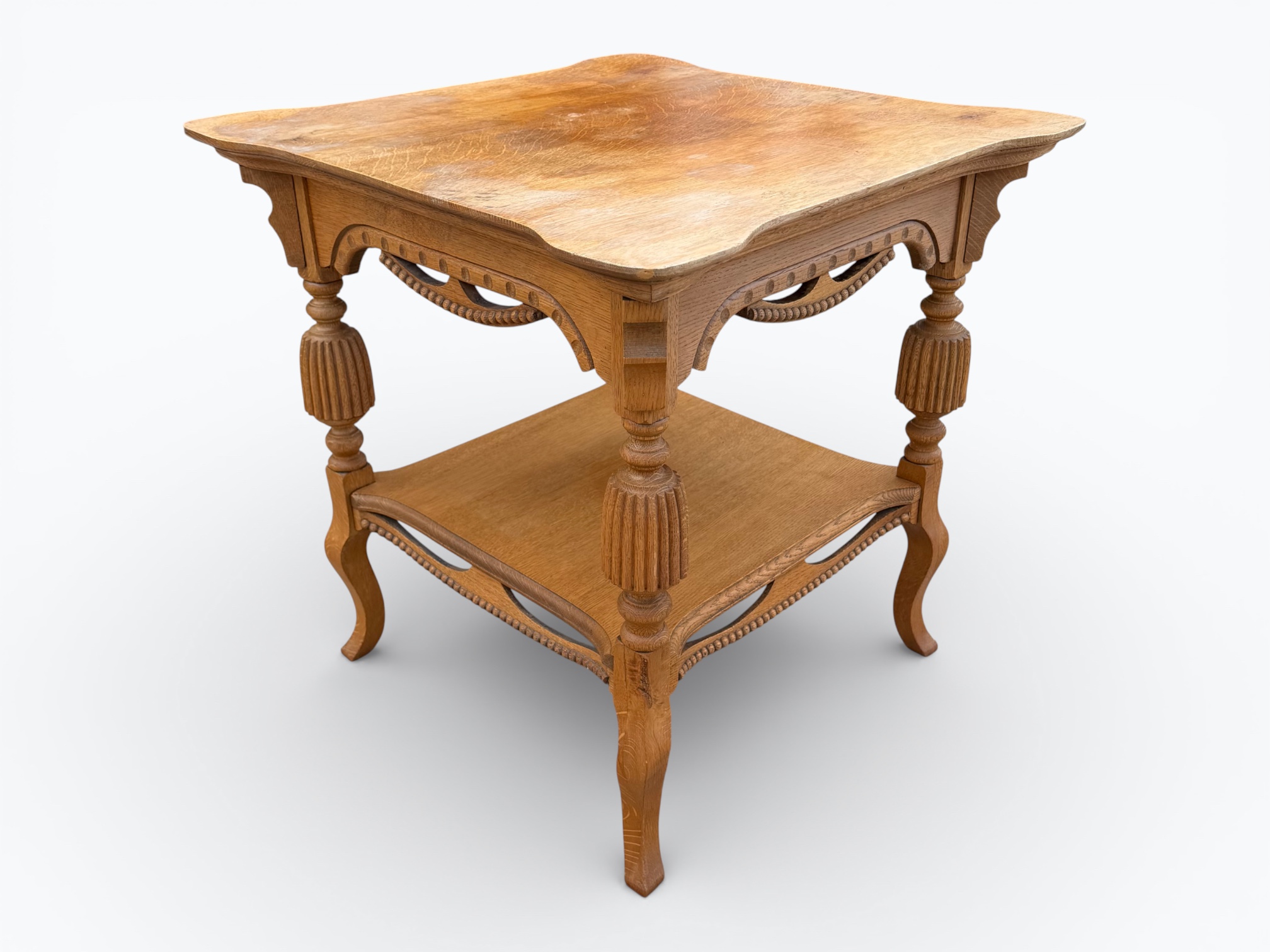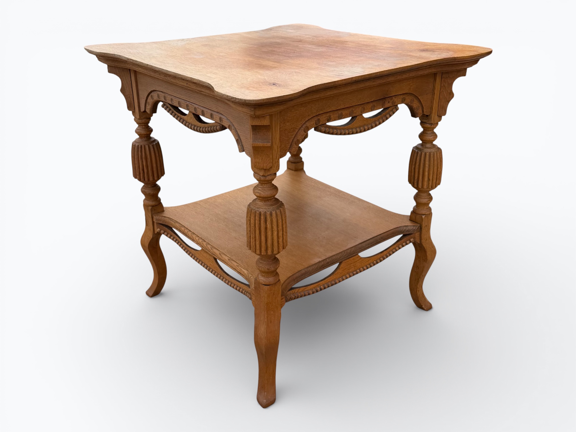 Antique Victorian Light Brown Tiger Oak Square Parlor / Side Table
