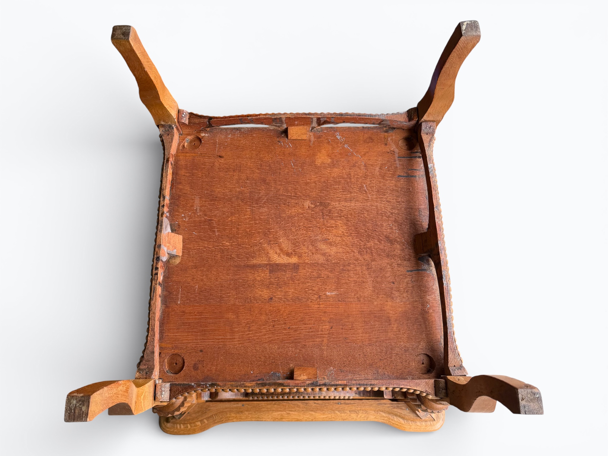 • [Features]: Cabriole legs; Ornate carvings; Beaded carvings; Square top with shaped corners; Lower shelf; Original hardware; Solid and heavy construction