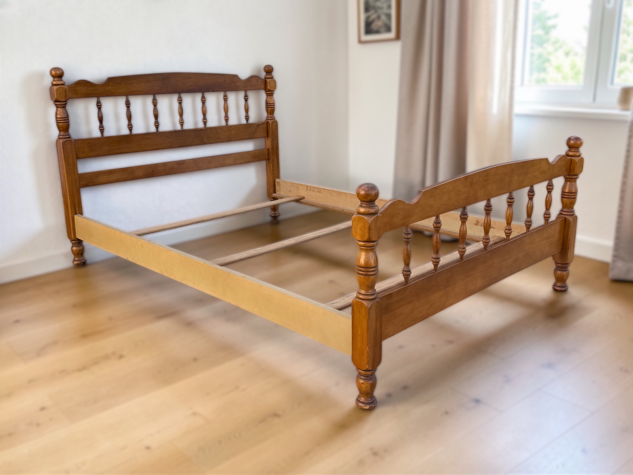 • [Features]: 3 bed slats; Sideboards hook into place; Turned spindle and orb details