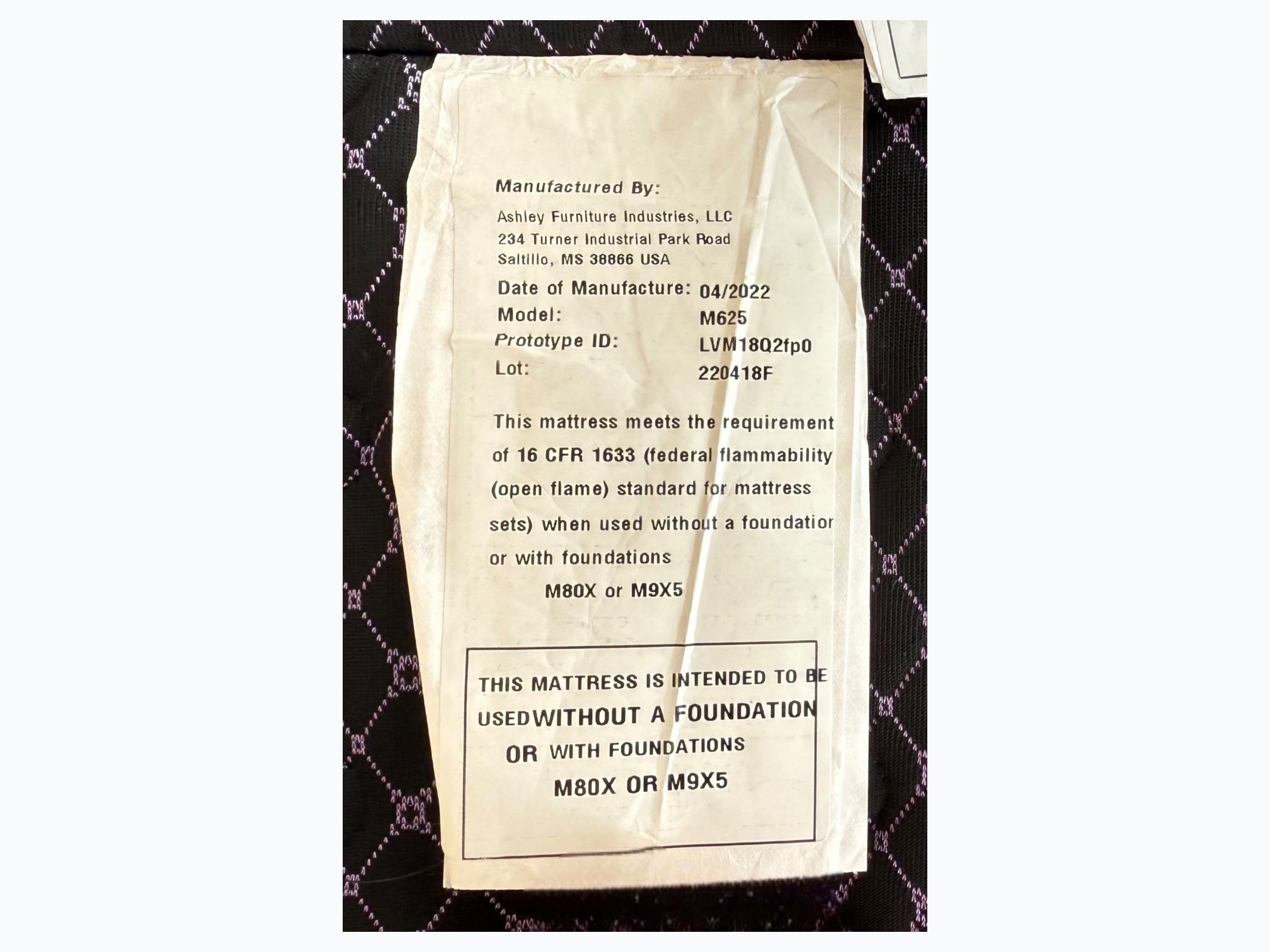 • [Type of Material]: Polyester Fabric; 2 layers of High-Density Quilt Foam; ultra firm support Foam; High-Density Gel support memory Foam; 528 individual power packed 15-gauge Wrapped Coils; Ashley Edge “steel encased”; 2 perimeter rows of 13-gauge Wrapped Coils for edge support; High-Density base Foam; 4-way stretch Knit Cover