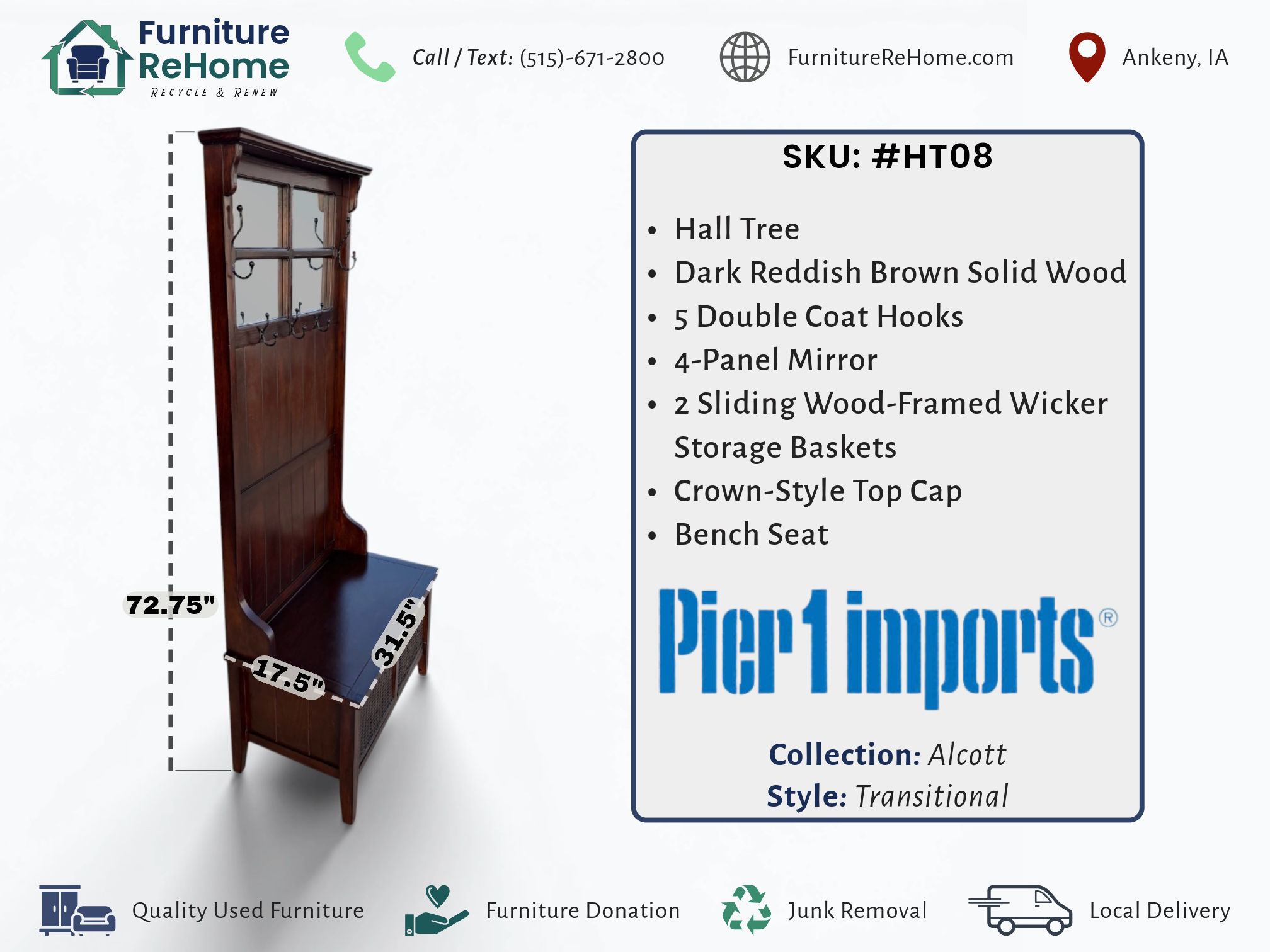 Pier 1 Alcott Dark Brown Wood & Wicker Hall Tree