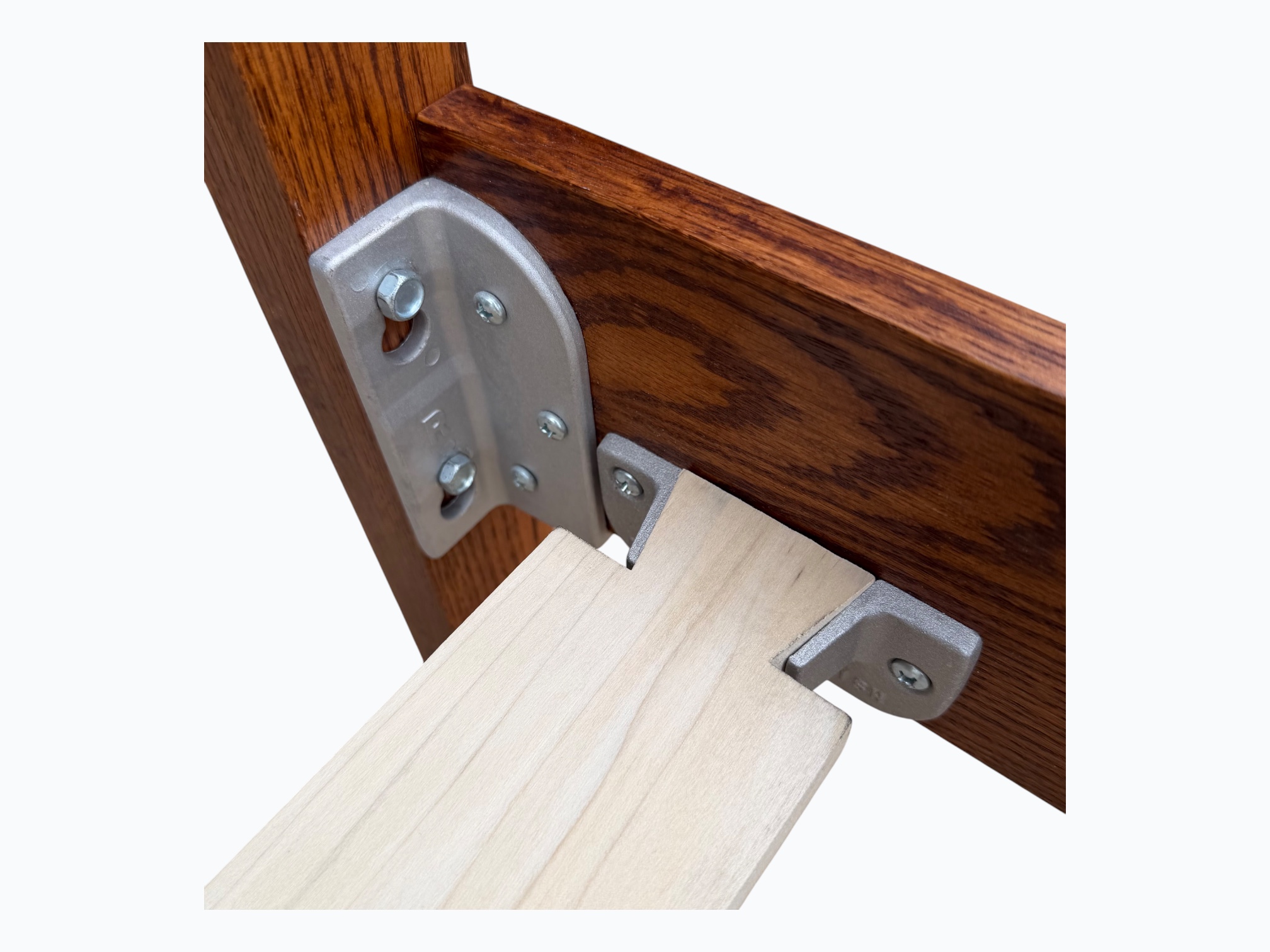 • [Features]: Heavy duty metal corner brackets; Large dovetailed bed slats with leg supports and heavy duty metal brackets; Straight, overhanging top rails on the headboard and footboard with eased edges