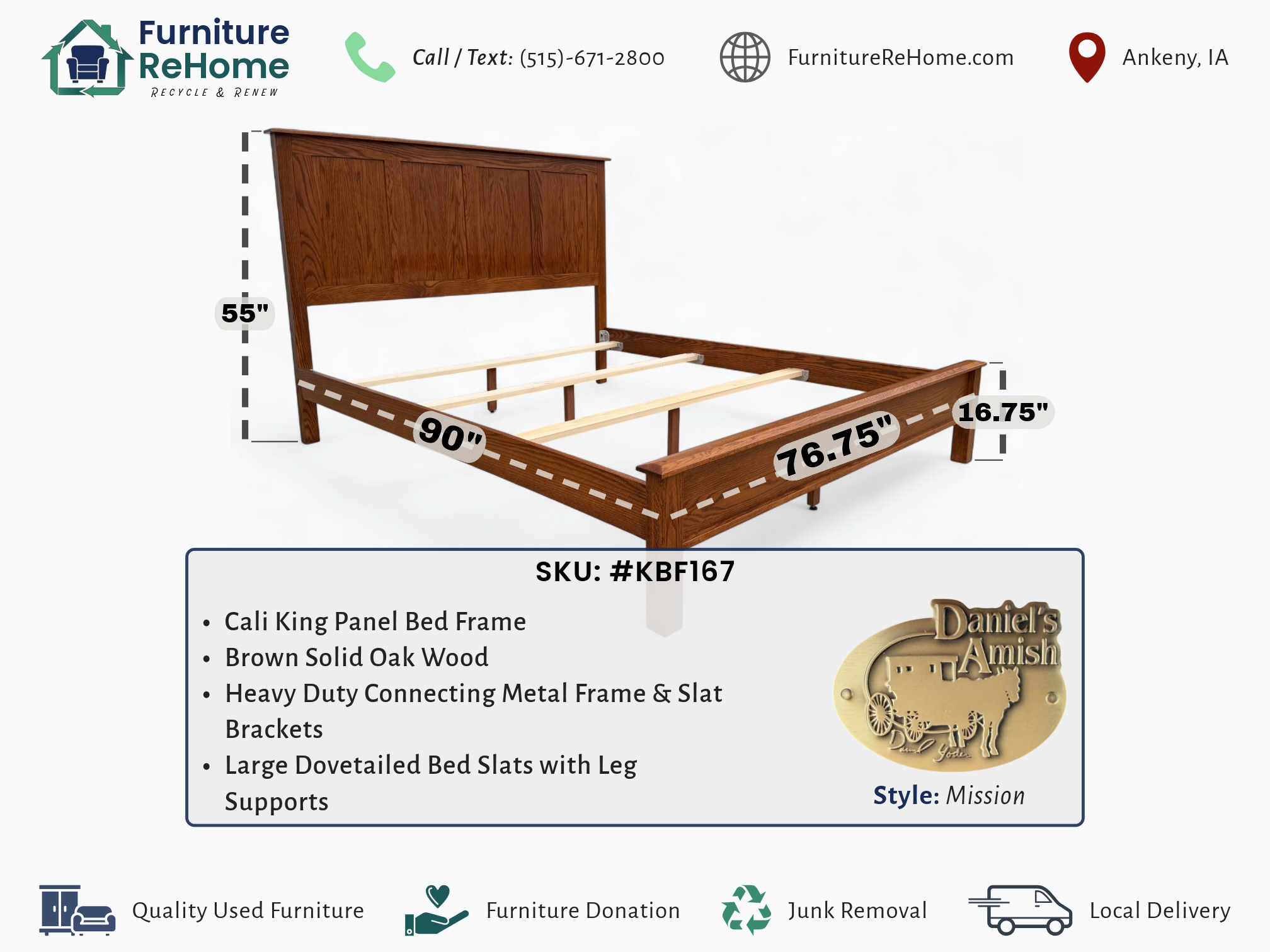 Daniel’s Amish Brown Oak King Panel Bed Frame