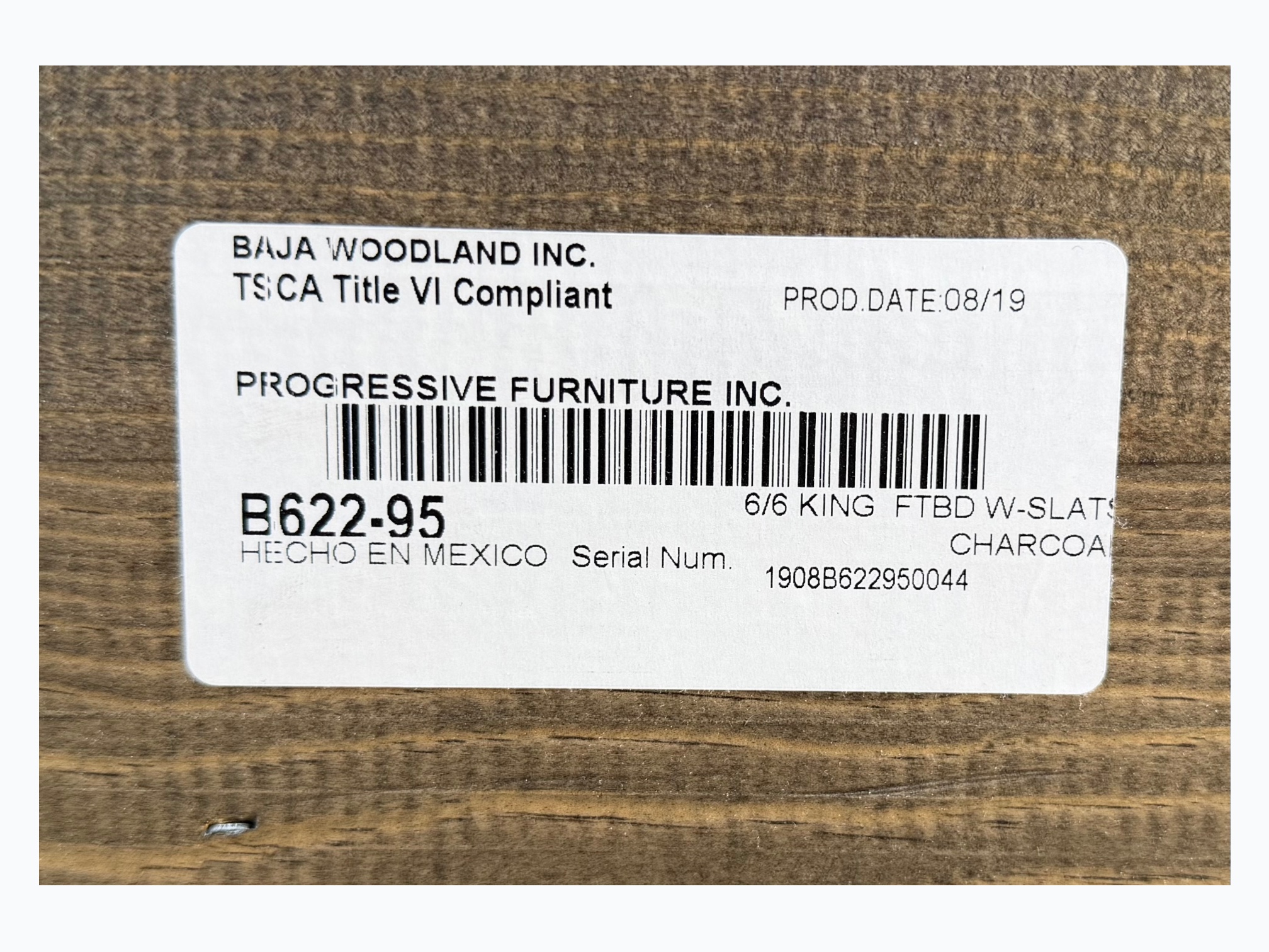 • [Manufacture Date]: 08/2019