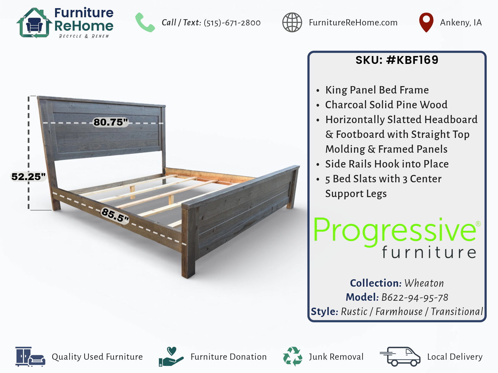 • [Dimensions]: 80.75” Length X 85.5” Depth X 52.25” Height (top of headboard) / 9” Height (top of slats)