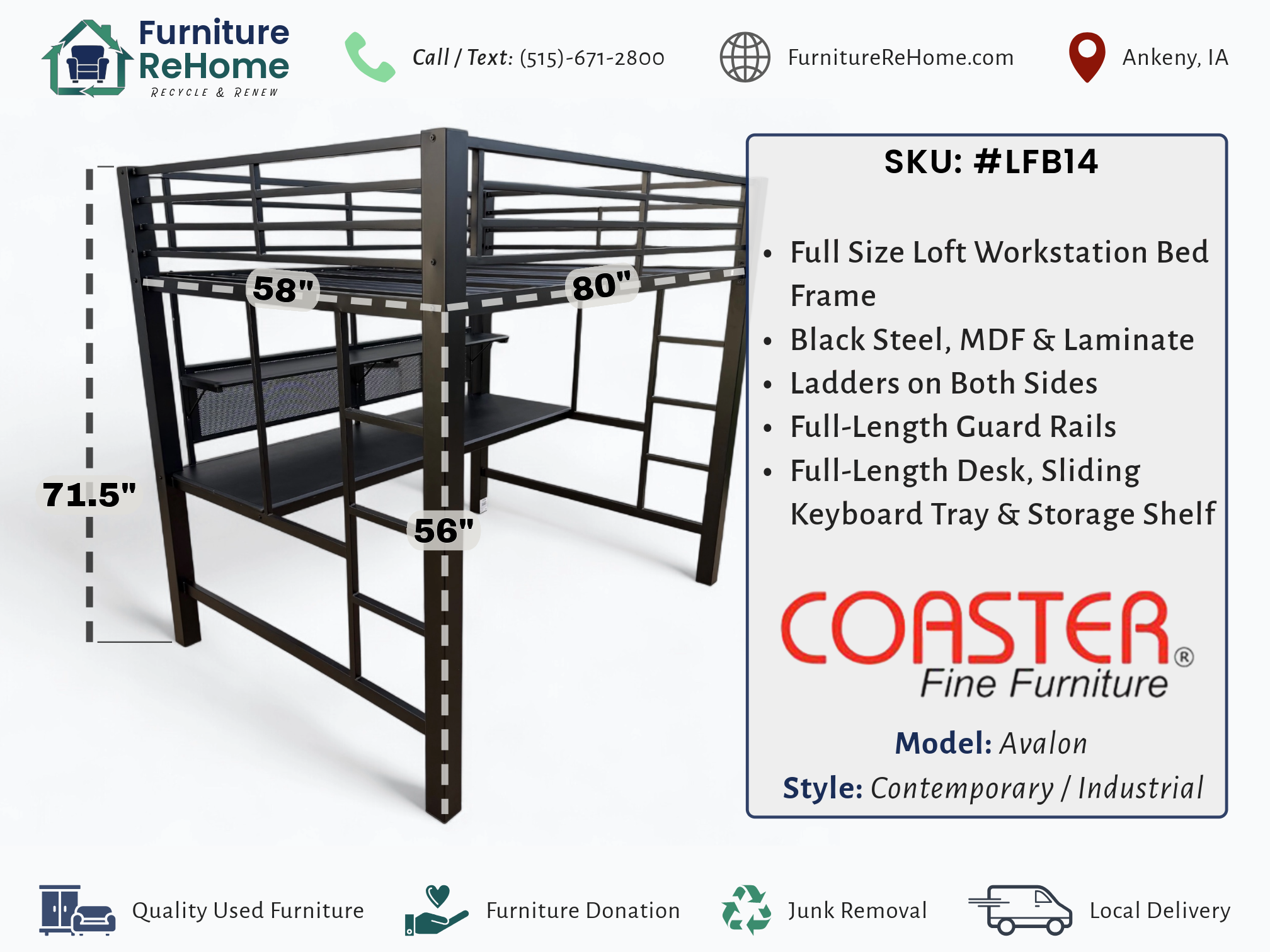 Coaster Fine Avalon Black Metal Full Size Loft Workstation Bed Frame