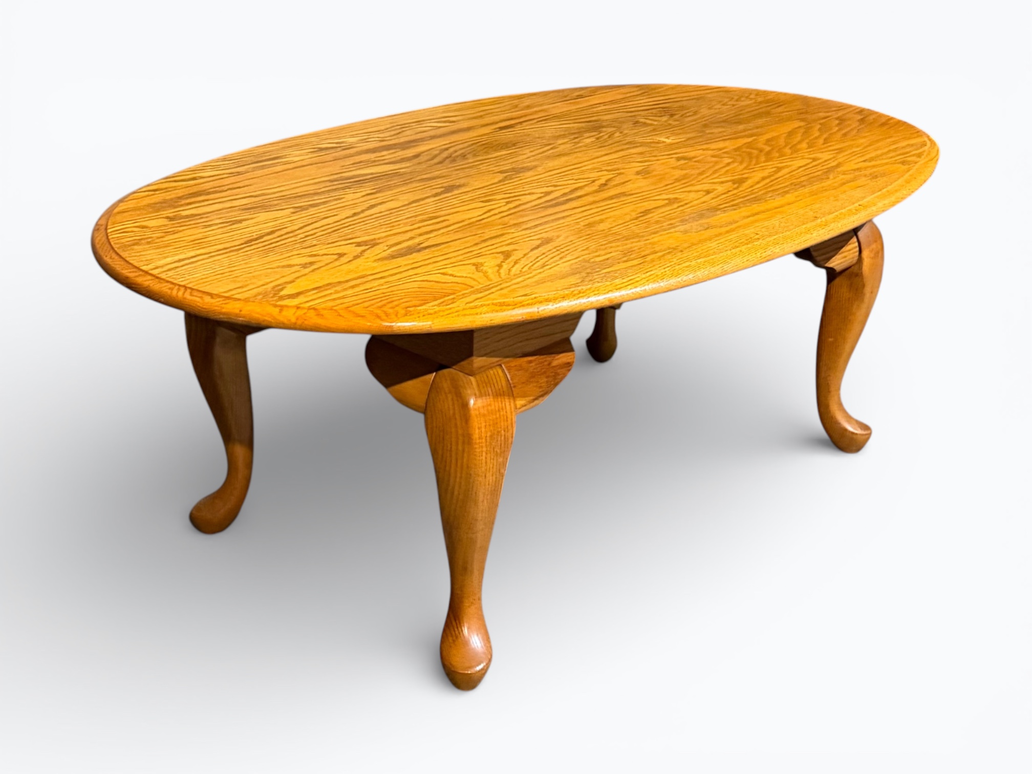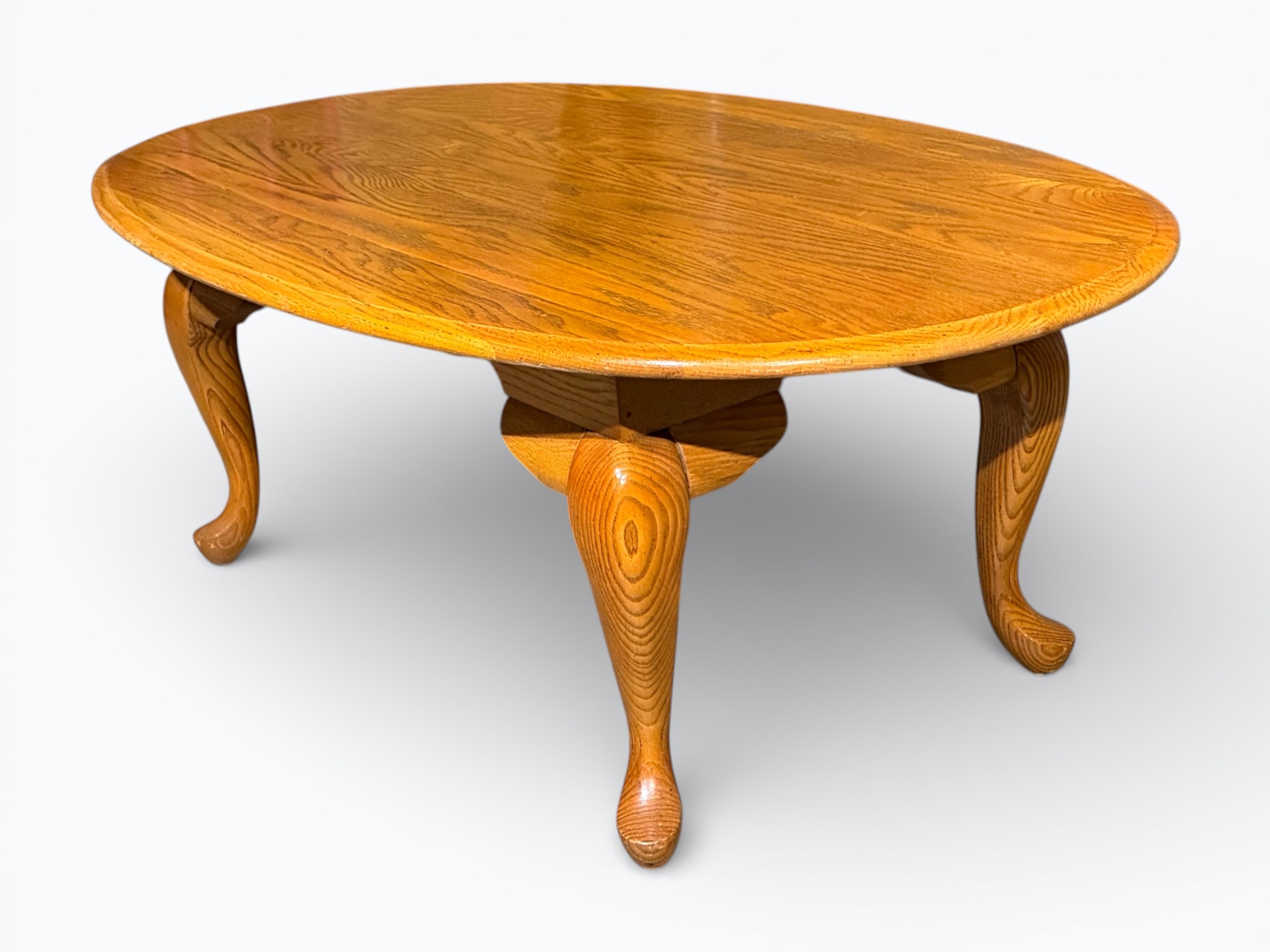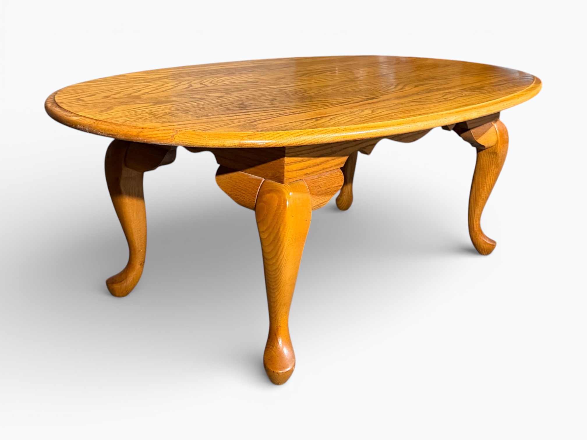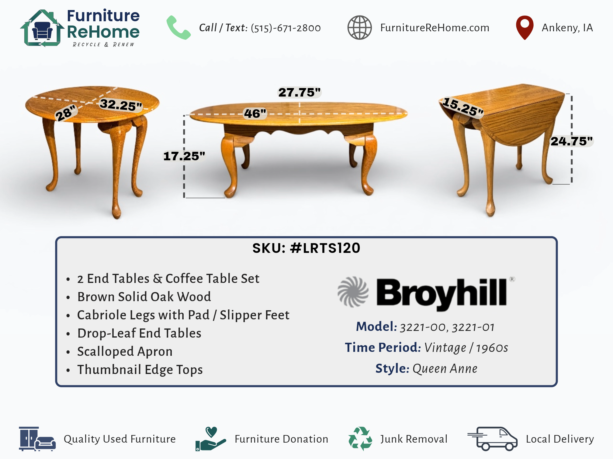 Broyhill Queen Anne Brown Oak Living Room Table Set