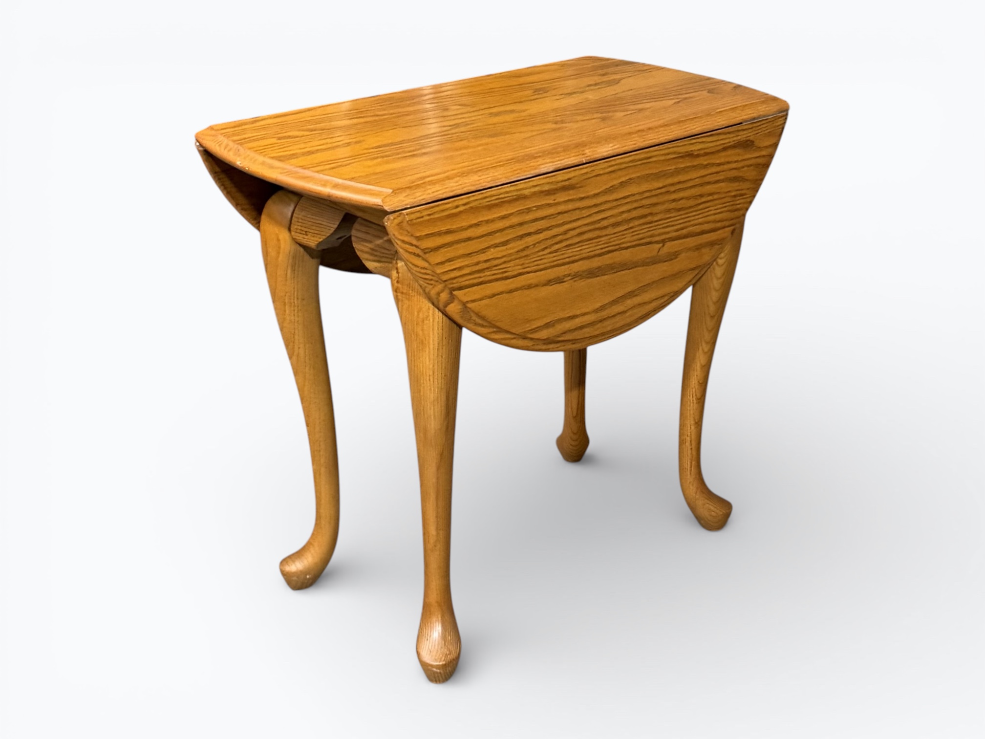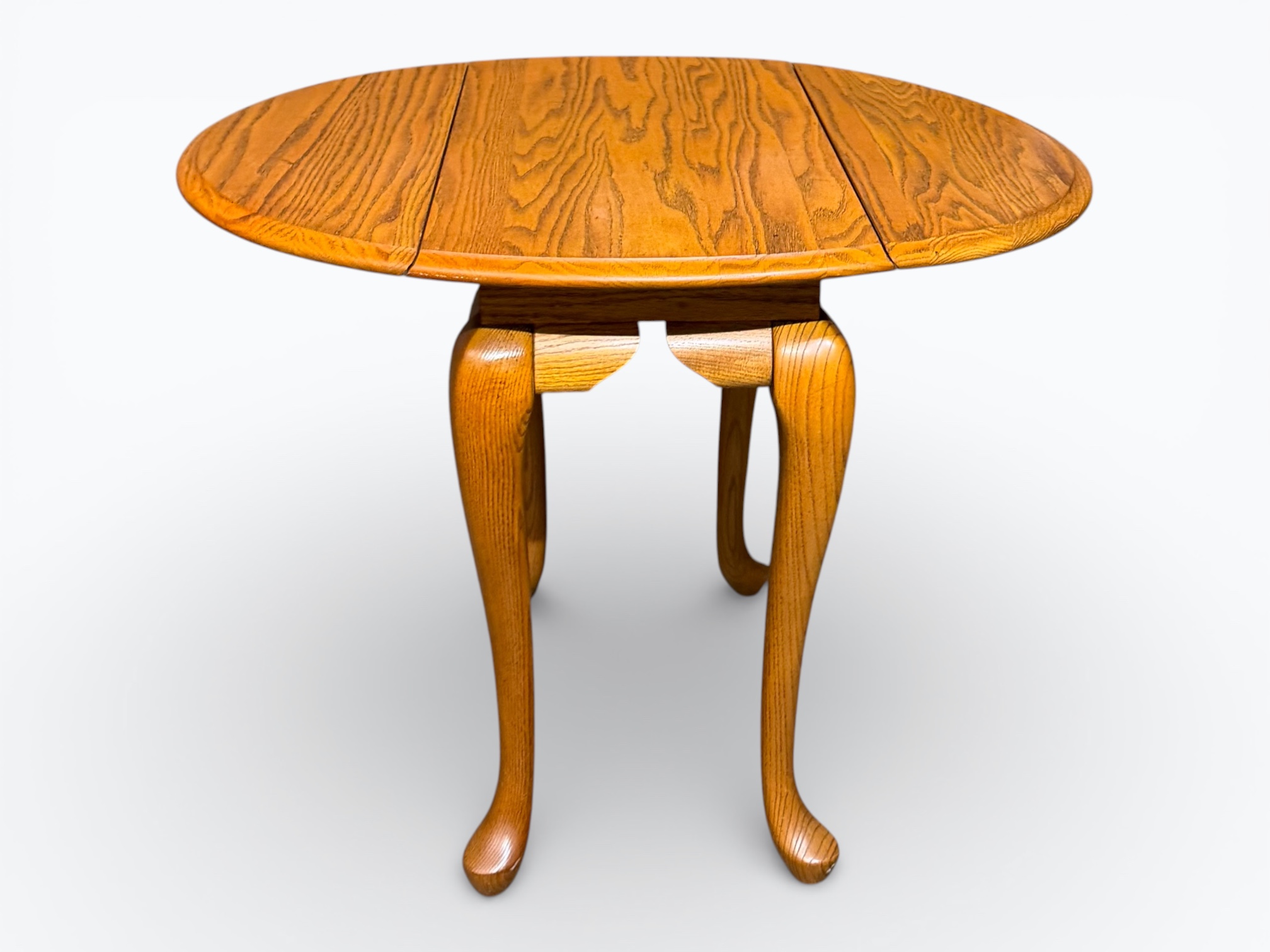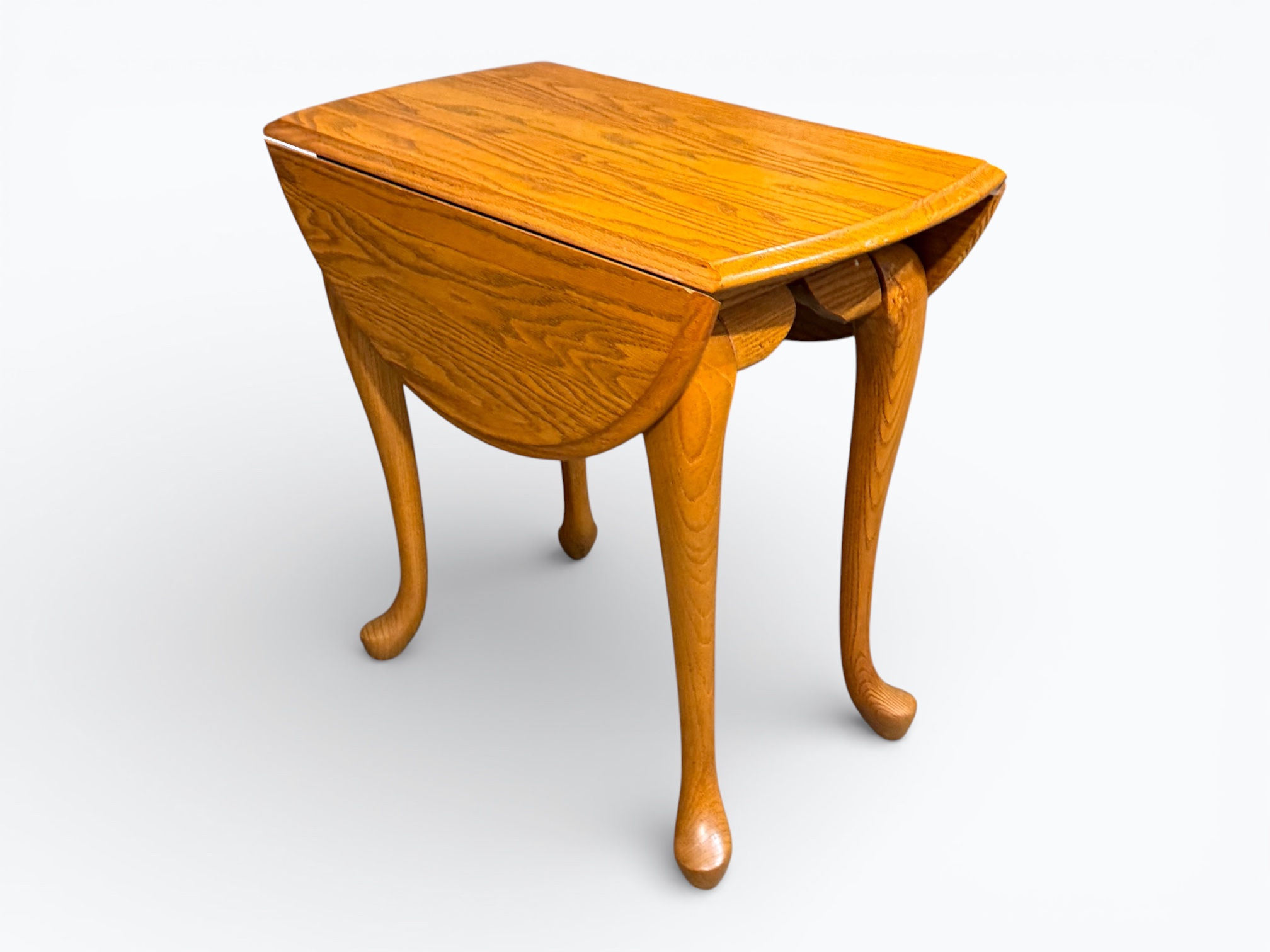 – End Tables: Drop-leaf sides with spring-loaded pull-out support; Table top has a thumbnail edge; Cabriole legs with pad / slipper feet that are removable