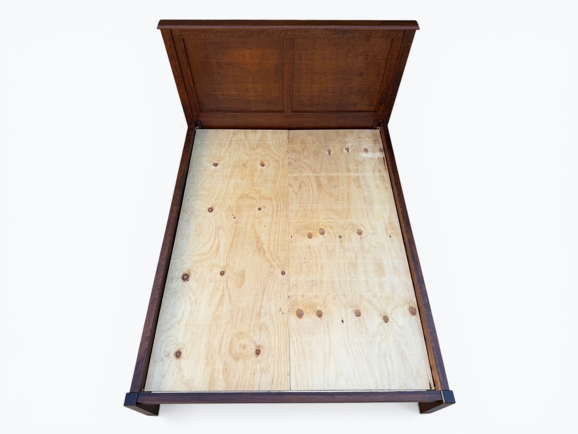 [Dimensions]: 66.5” Length X 86” Depth X 45” Height (top of headboard) / 15” Height (top of footboard) / 12.5” Height (top of bed slats and plywood)