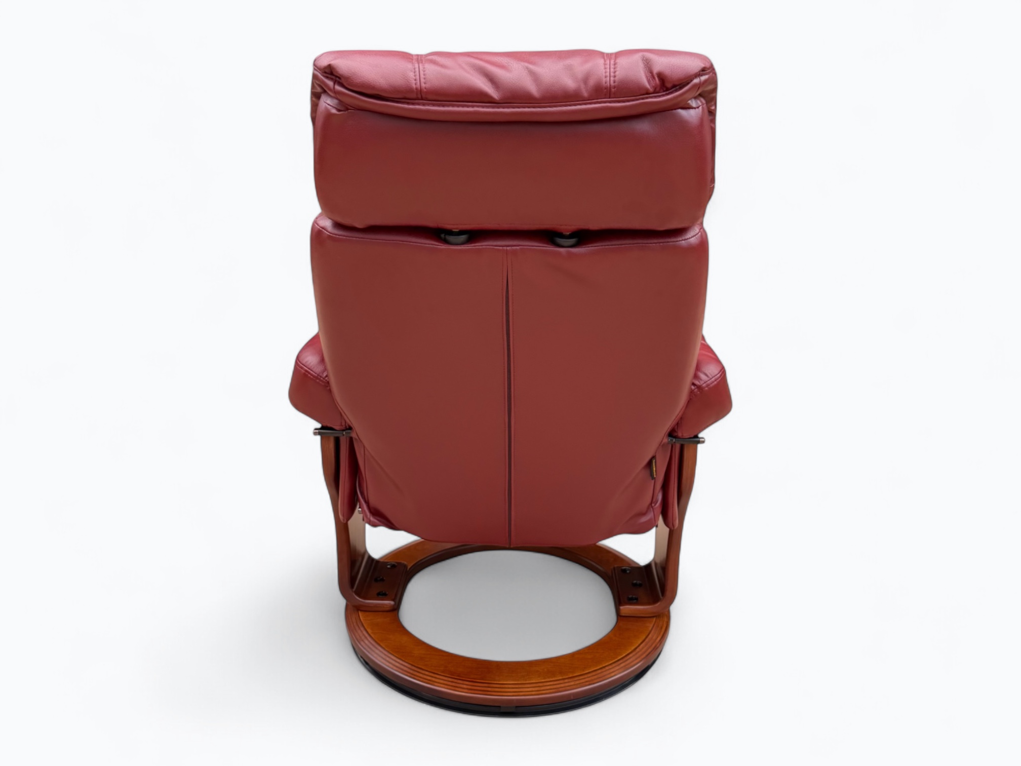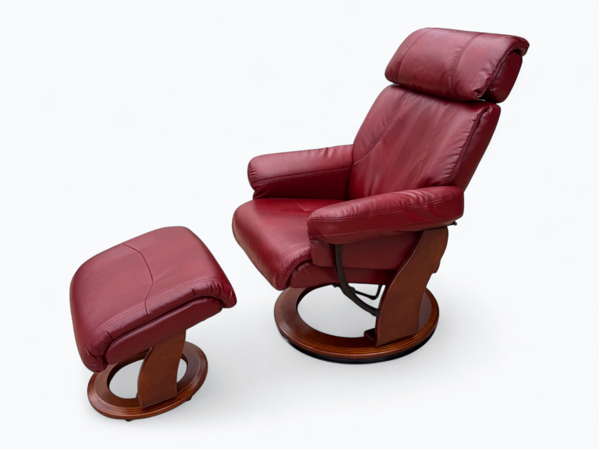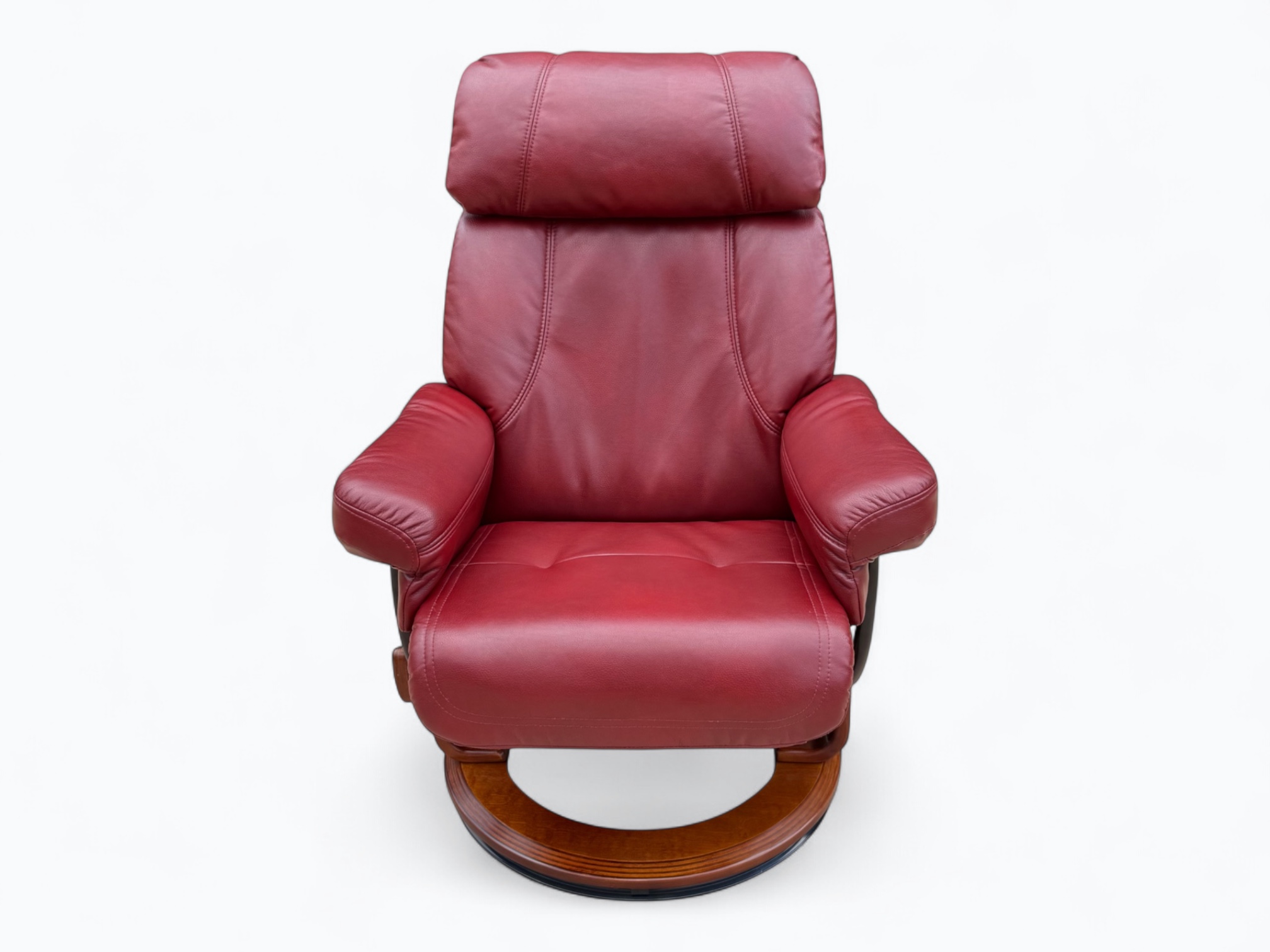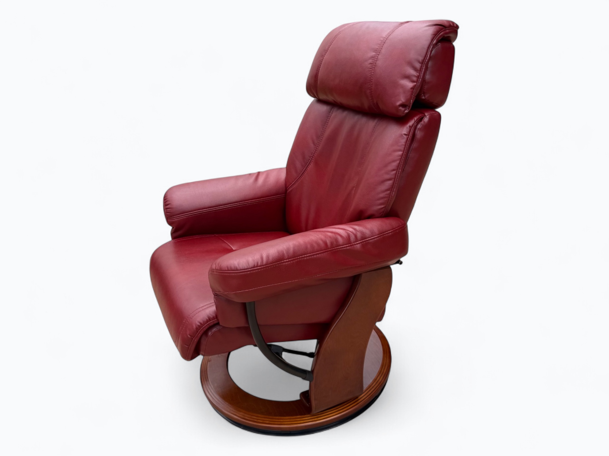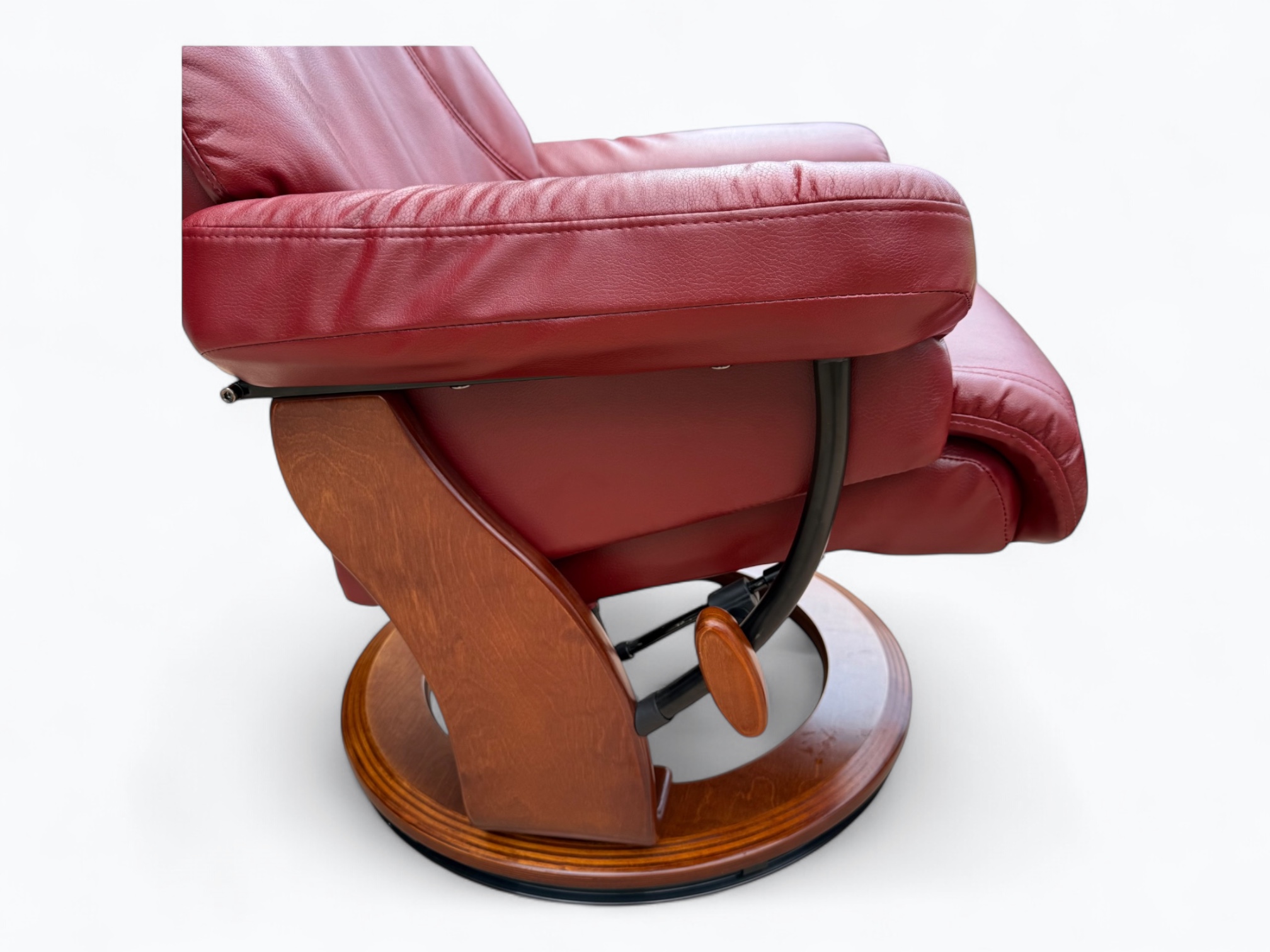 BenchMaster Bella Red Leather Reclining Swivel Armchair & Ottoman