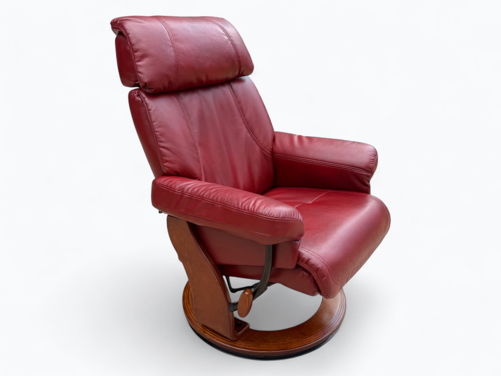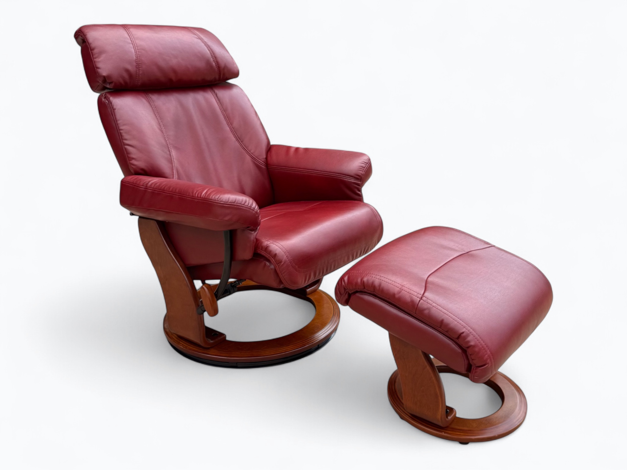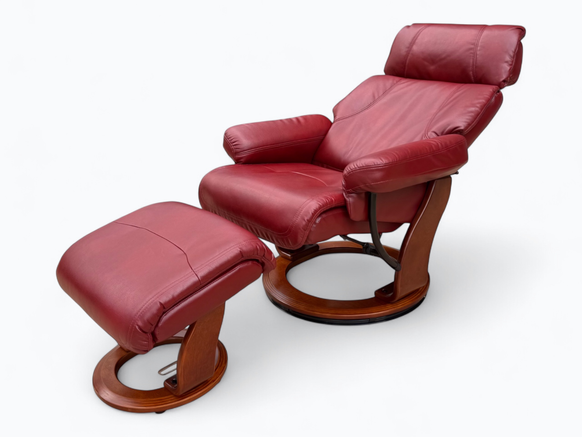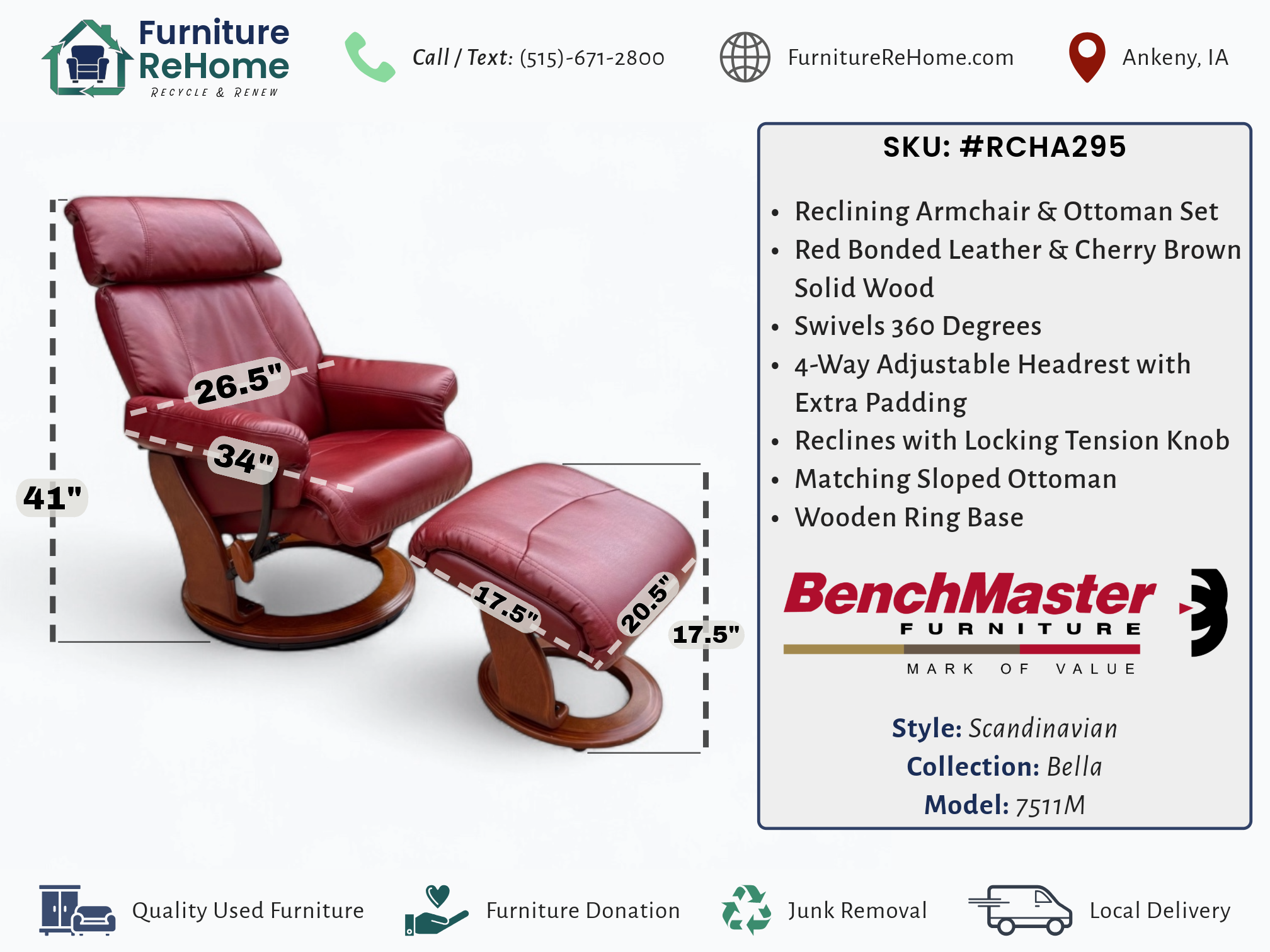 BenchMaster Bella Red Leather Reclining Swivel Armchair & Ottoman