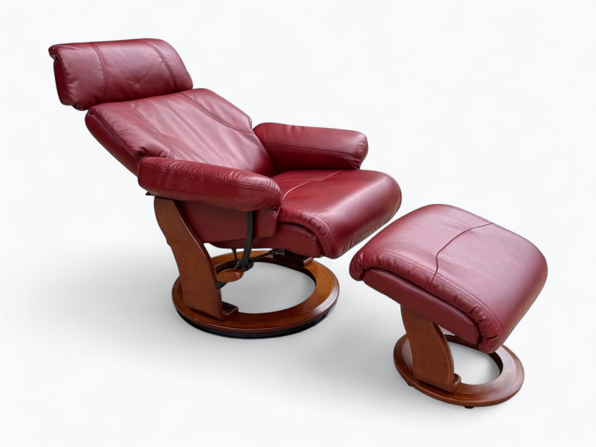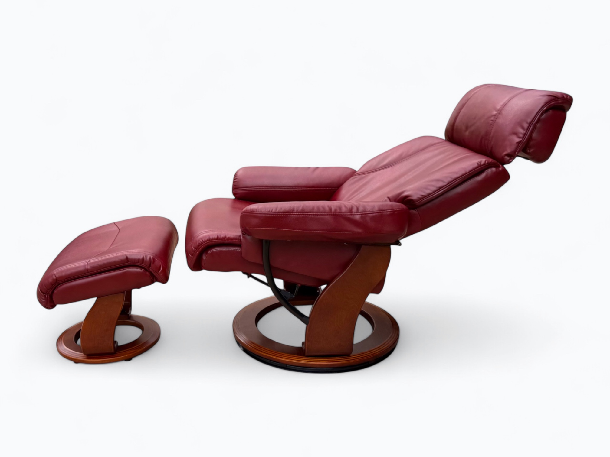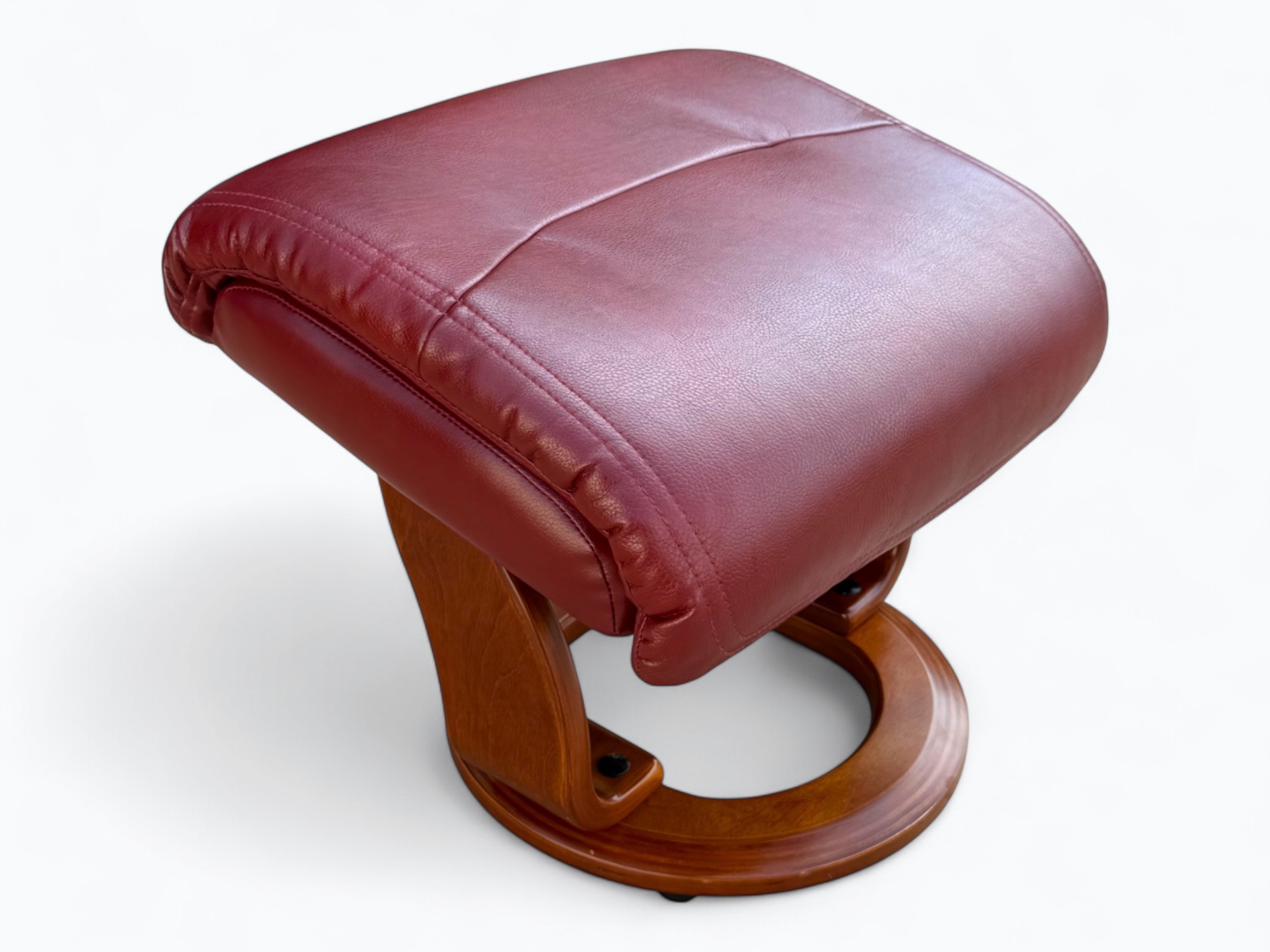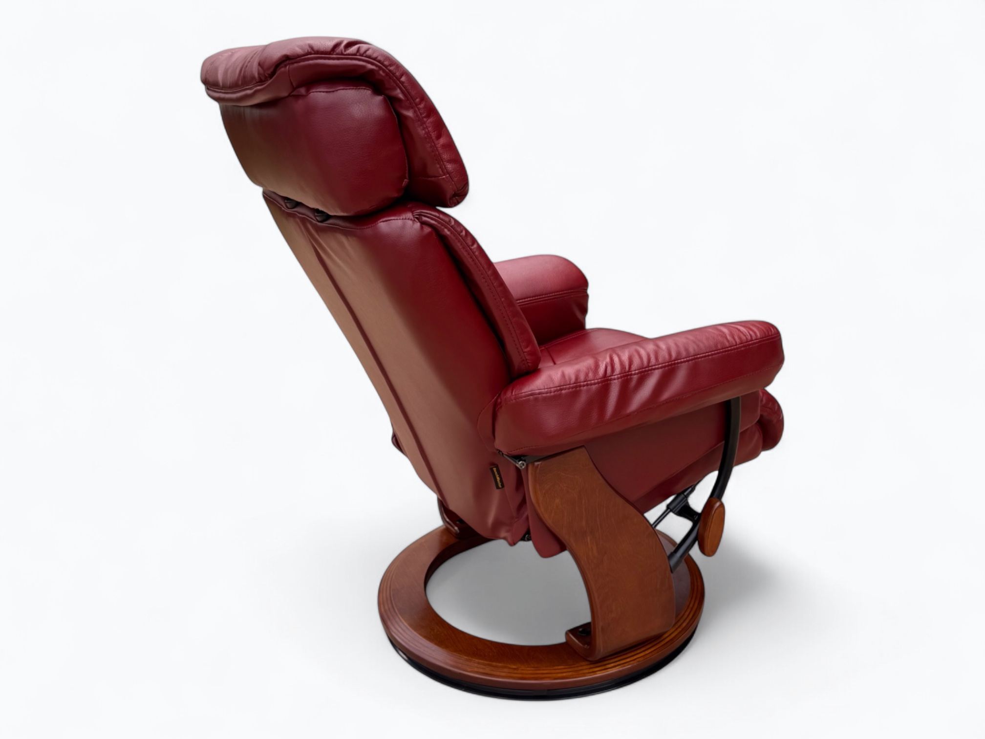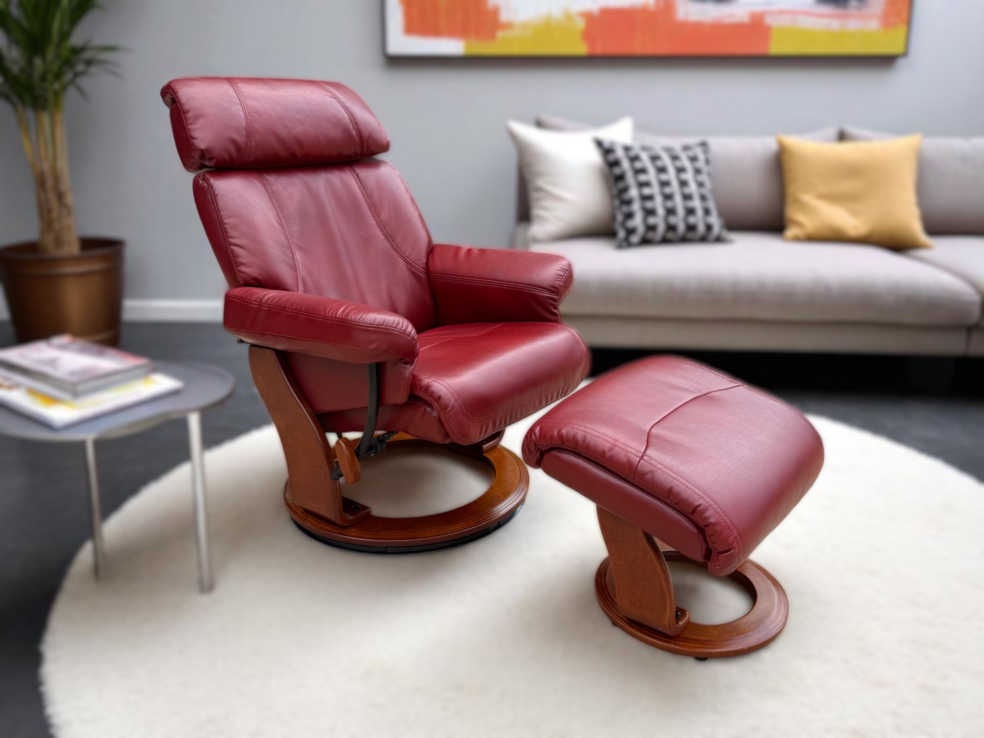 BenchMaster Bella Red Leather Reclining Swivel Armchair & Ottoman