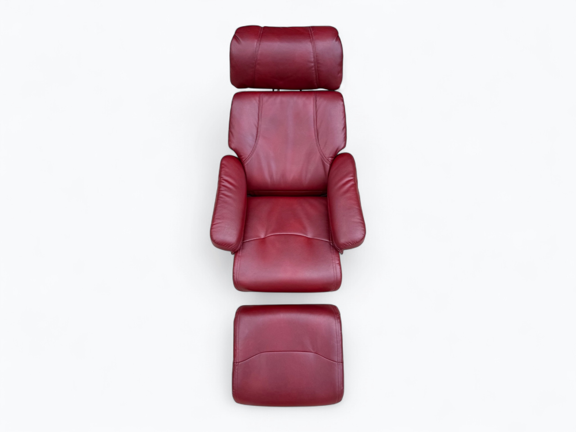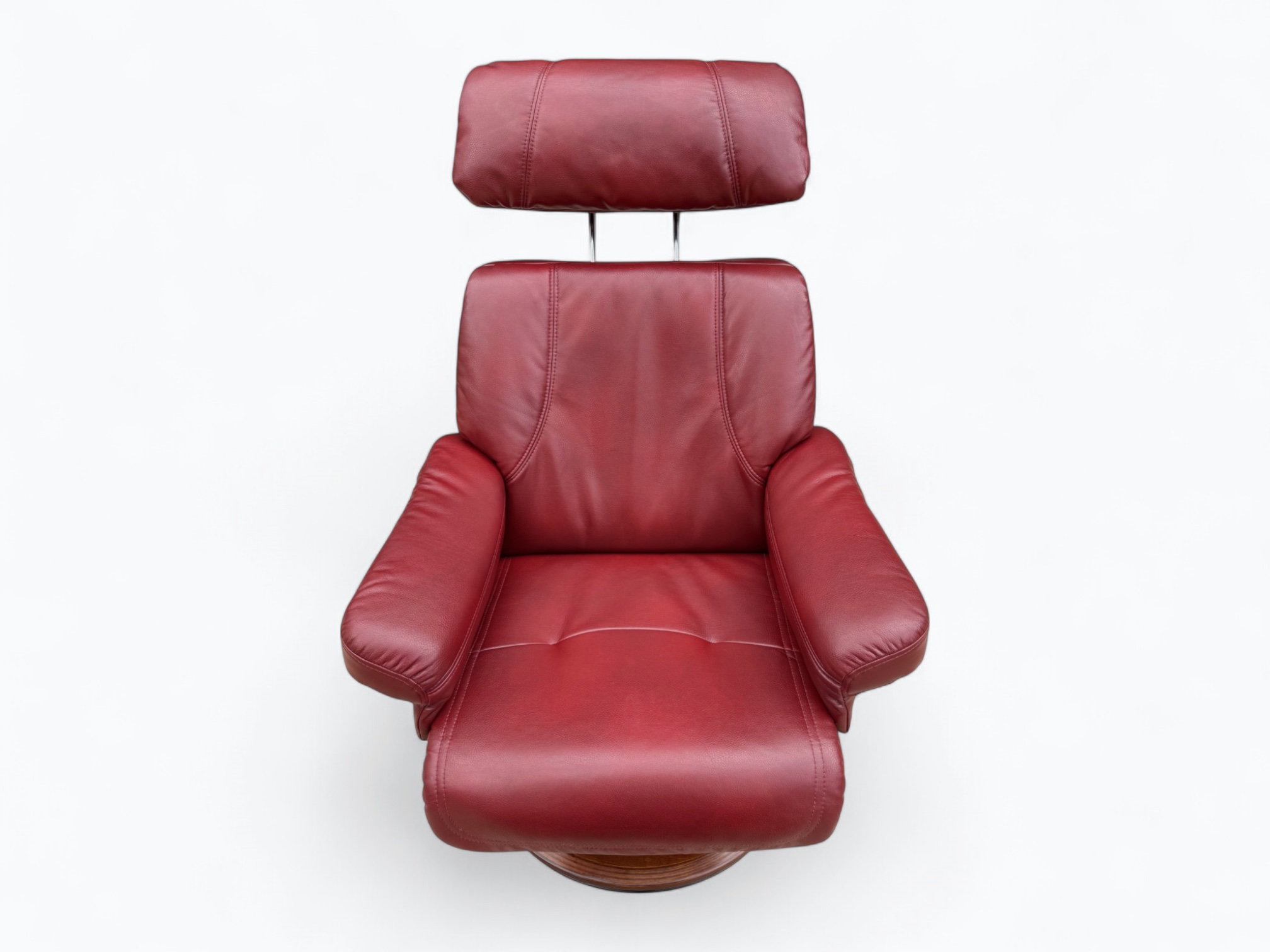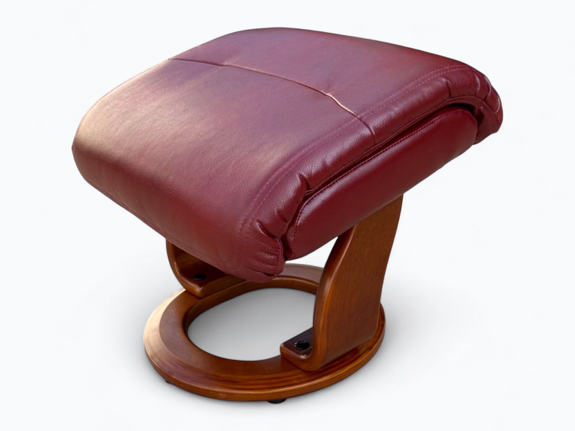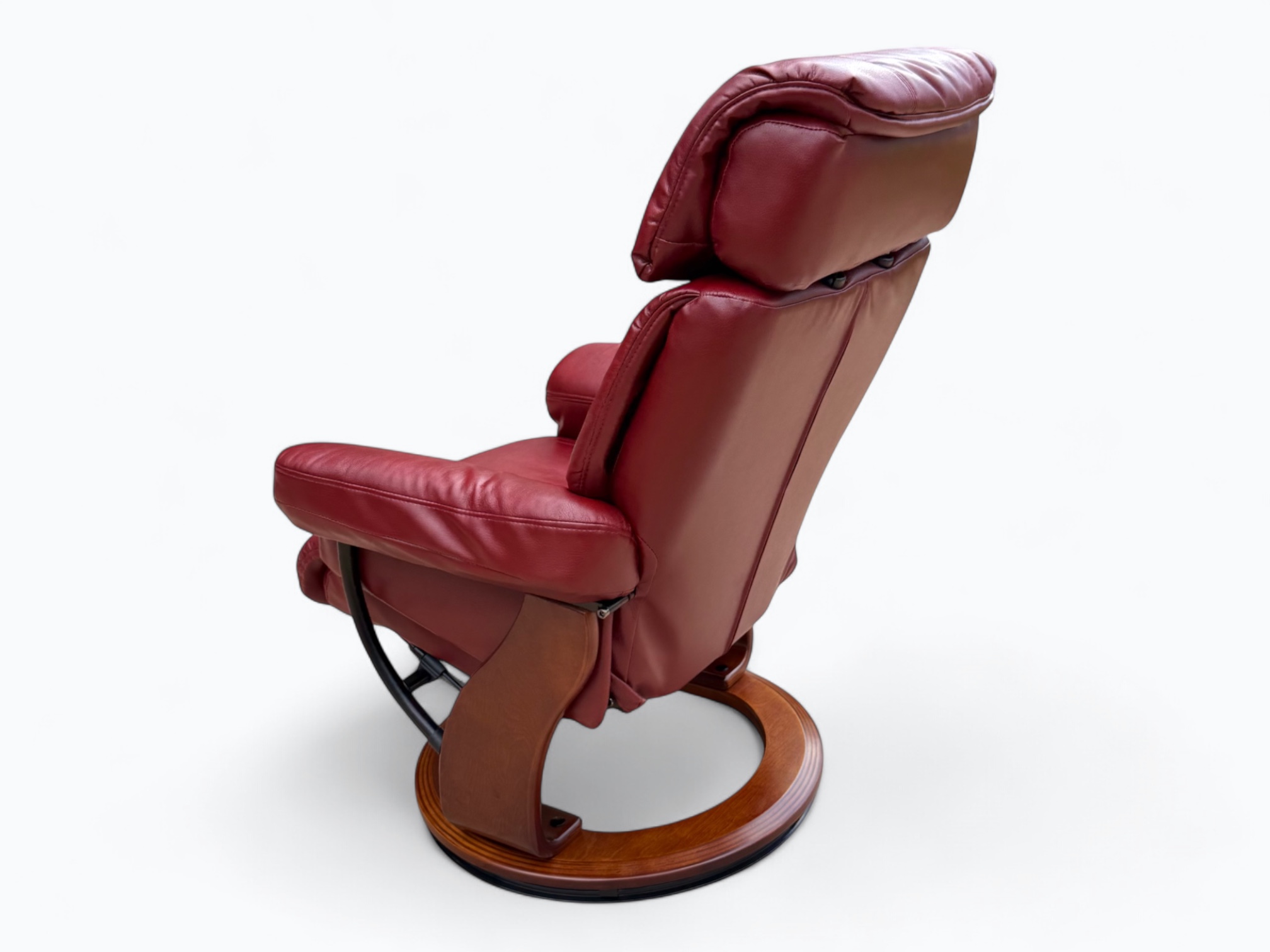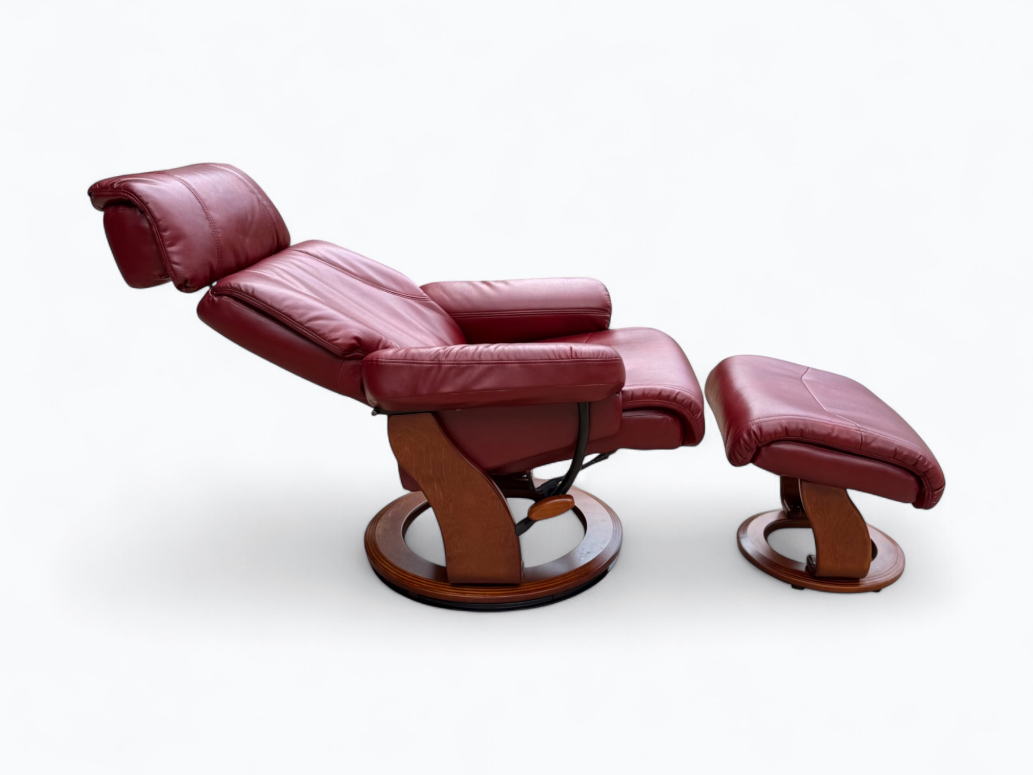 BenchMaster Bella Red Leather Reclining Swivel Armchair & Ottoman