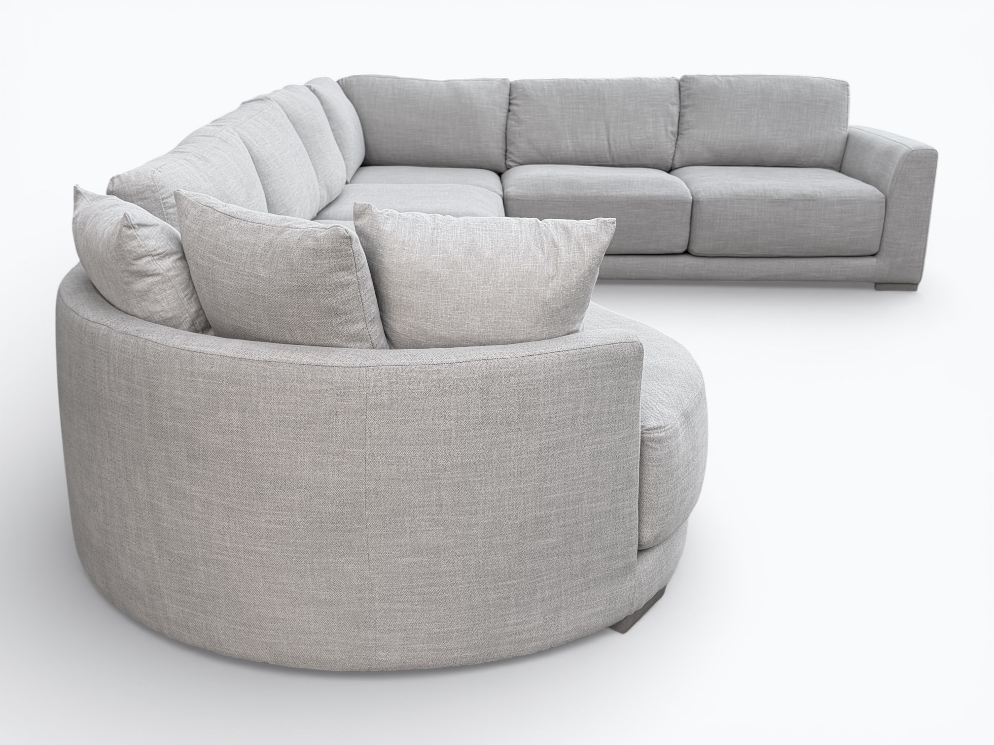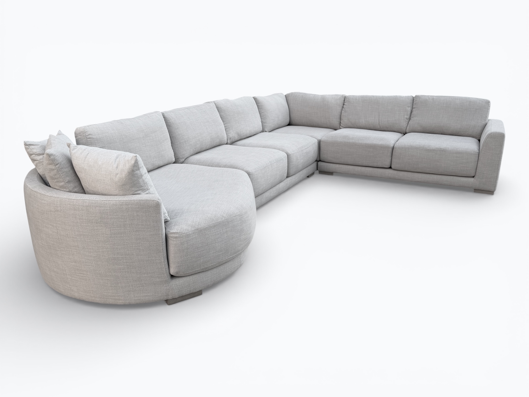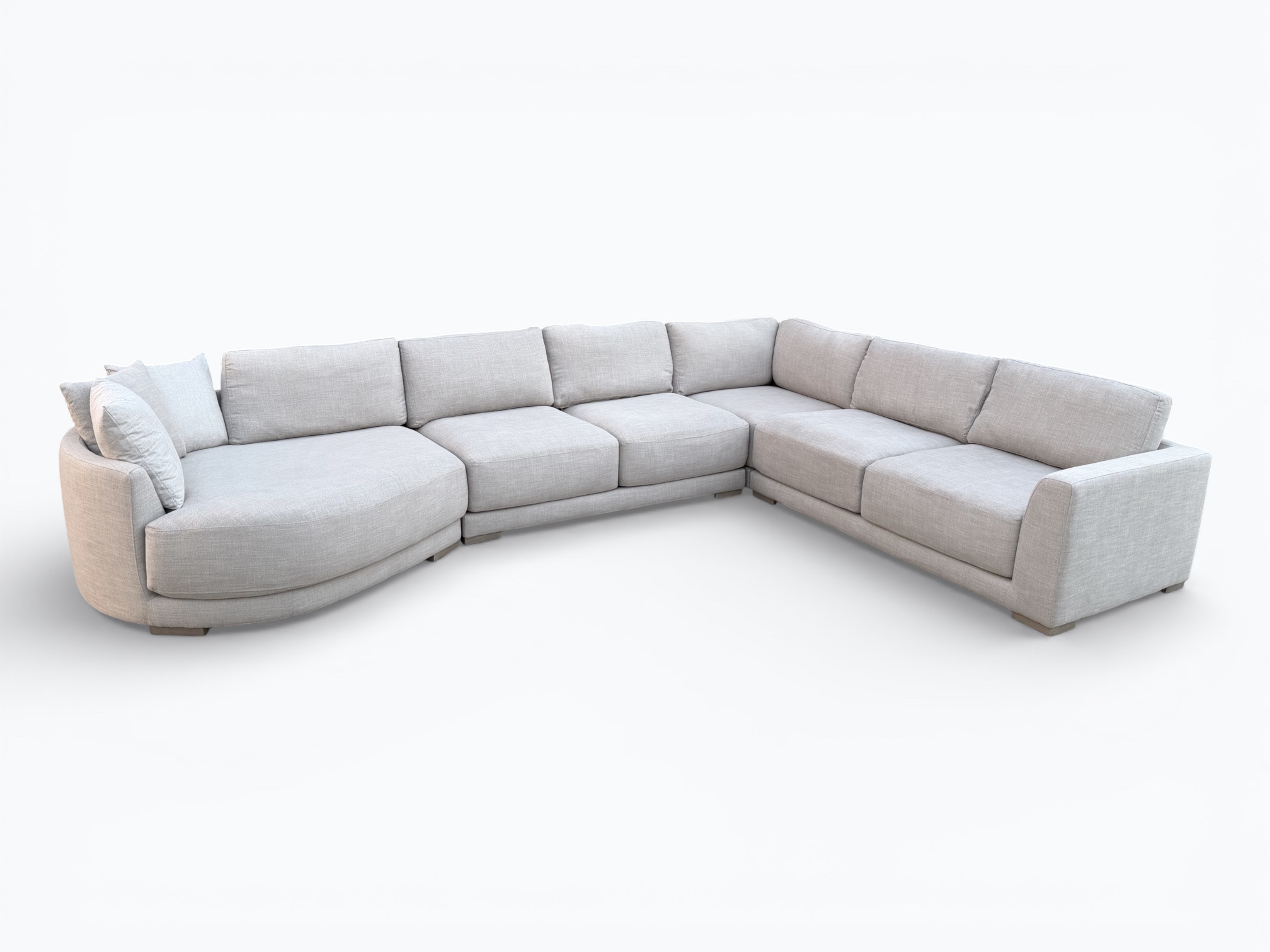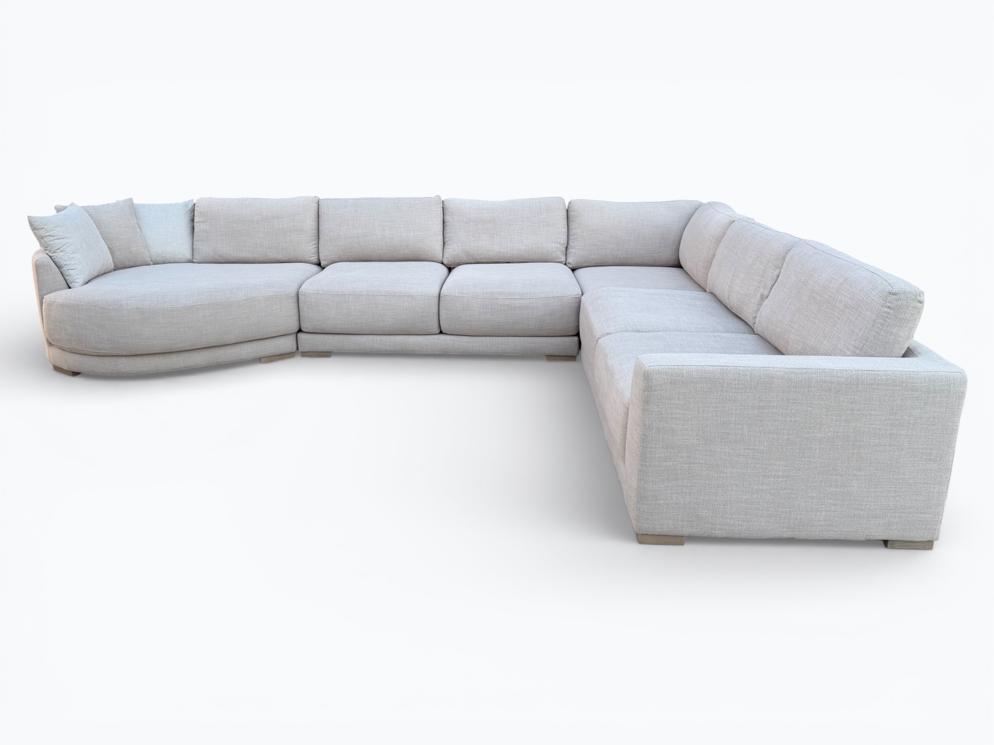 • [Features]: Extra thick foam seat cushions that are removable, unzip for easy wash, have a top layer of down feather / fiber blend and have individually-wrapped coil units; Backrest cushions are removable, reversible for double fabric life, unzip for easy wash and are a blend of down feather and fiber; Large cuddler chaise; Low profile frame; Track armrests; 3 throw pillows; Modular sectional pieces that lock into place; Block feet
